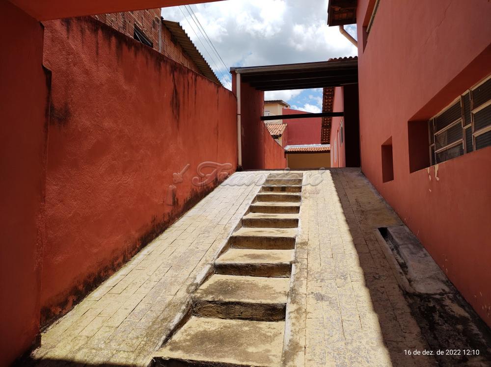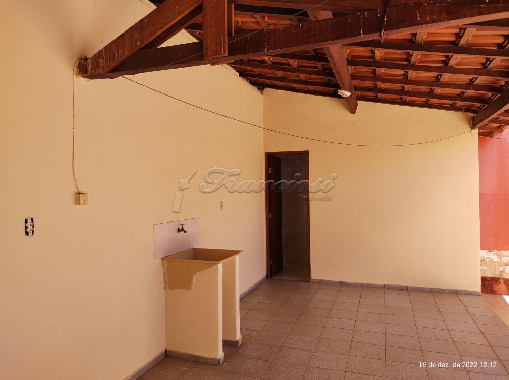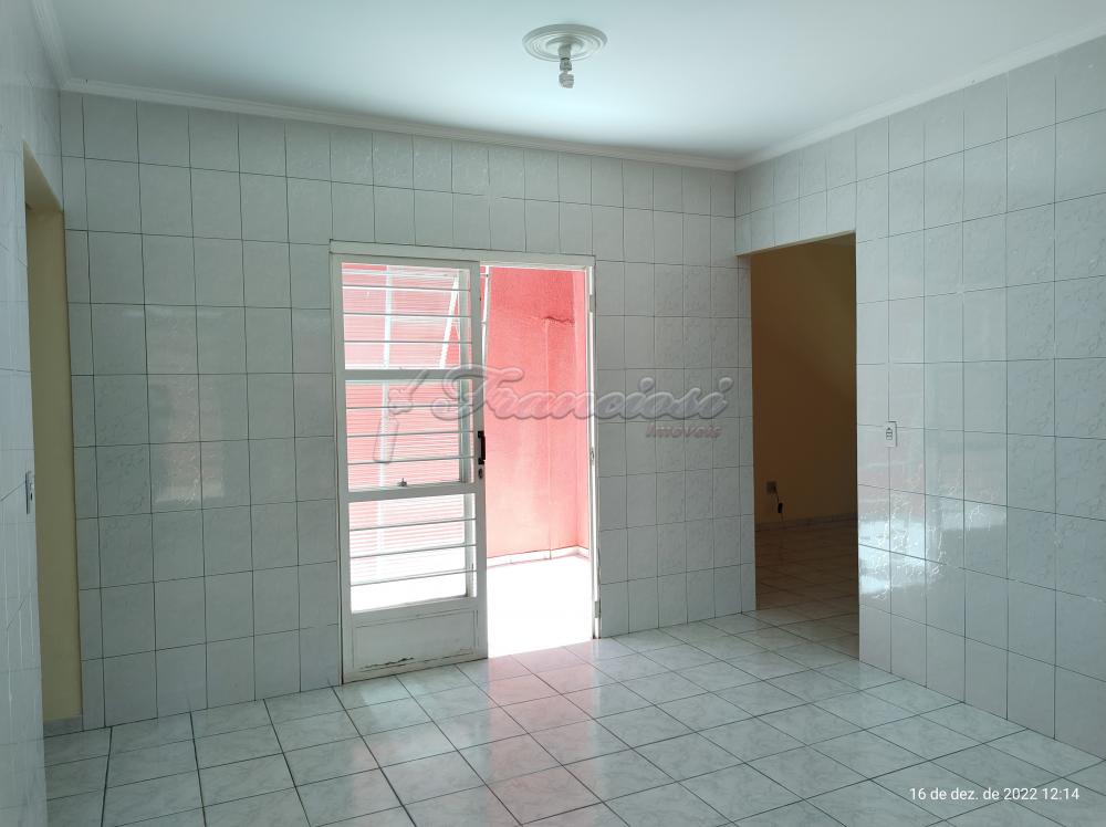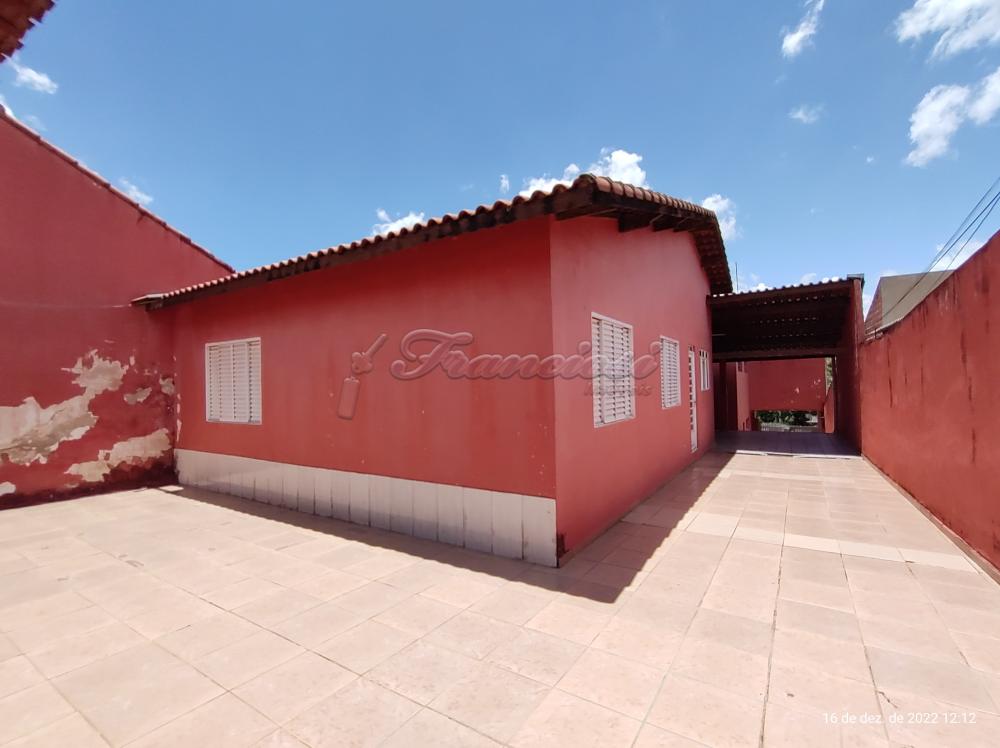 Casa com 3 dormitórios, 1 banheiro, sala de estar, cozinha, área de serviço, quintal e garagem para 1 carro e entrada para vários carros.