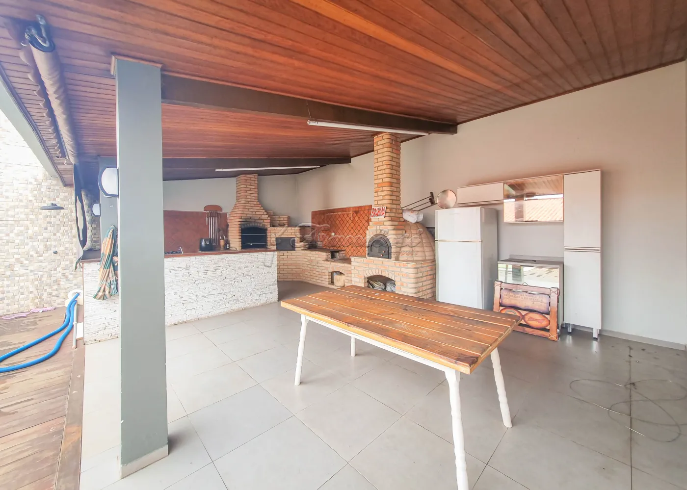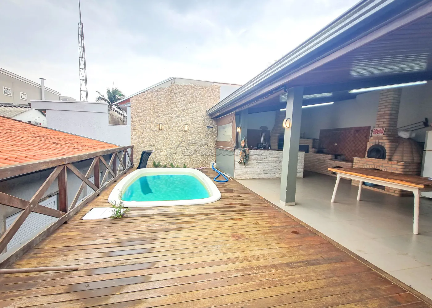Casa com 3 dormitórios sendo 1 suíte com closet, sala de estar, sala de jantar, 1 banheiro social, cozinha com armário, área gourmet com fogão a lenha/forno/churrasqueira, piscina, lavanderia, área de luz e garagem para 3 carros com portão eletrônico.