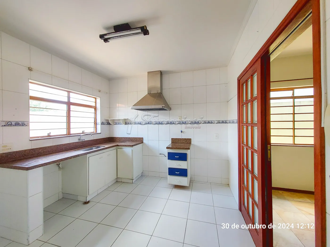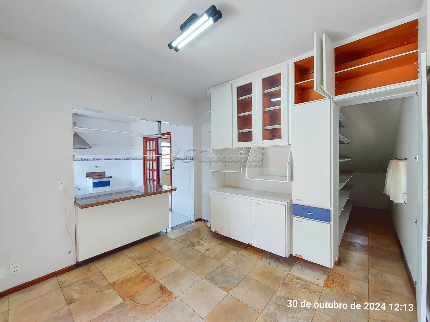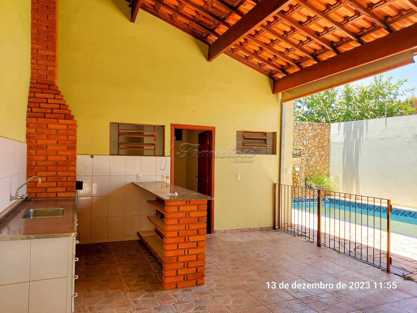 Parte inferior com sala de estar, sala de jantar, sala de tv, lavabo, cozinha, copa, despensa, área de lazer com churrasqueira, lavanderia, piscina, edícula com 1 cômodo e banheiro, quintal e garagem coberta para 2 carros.