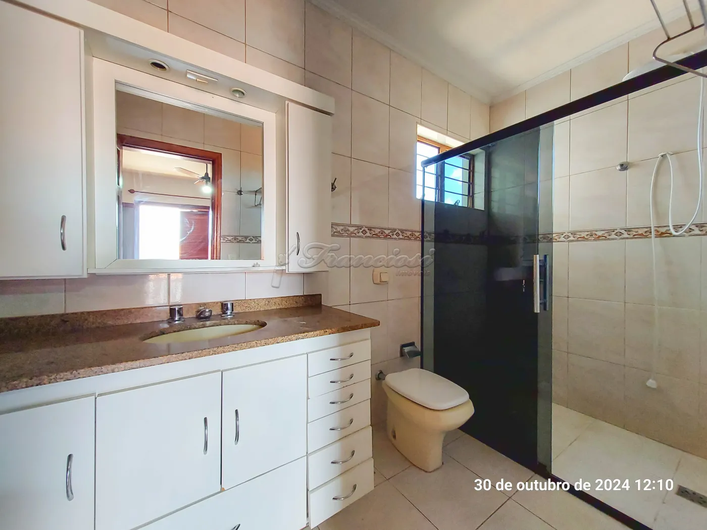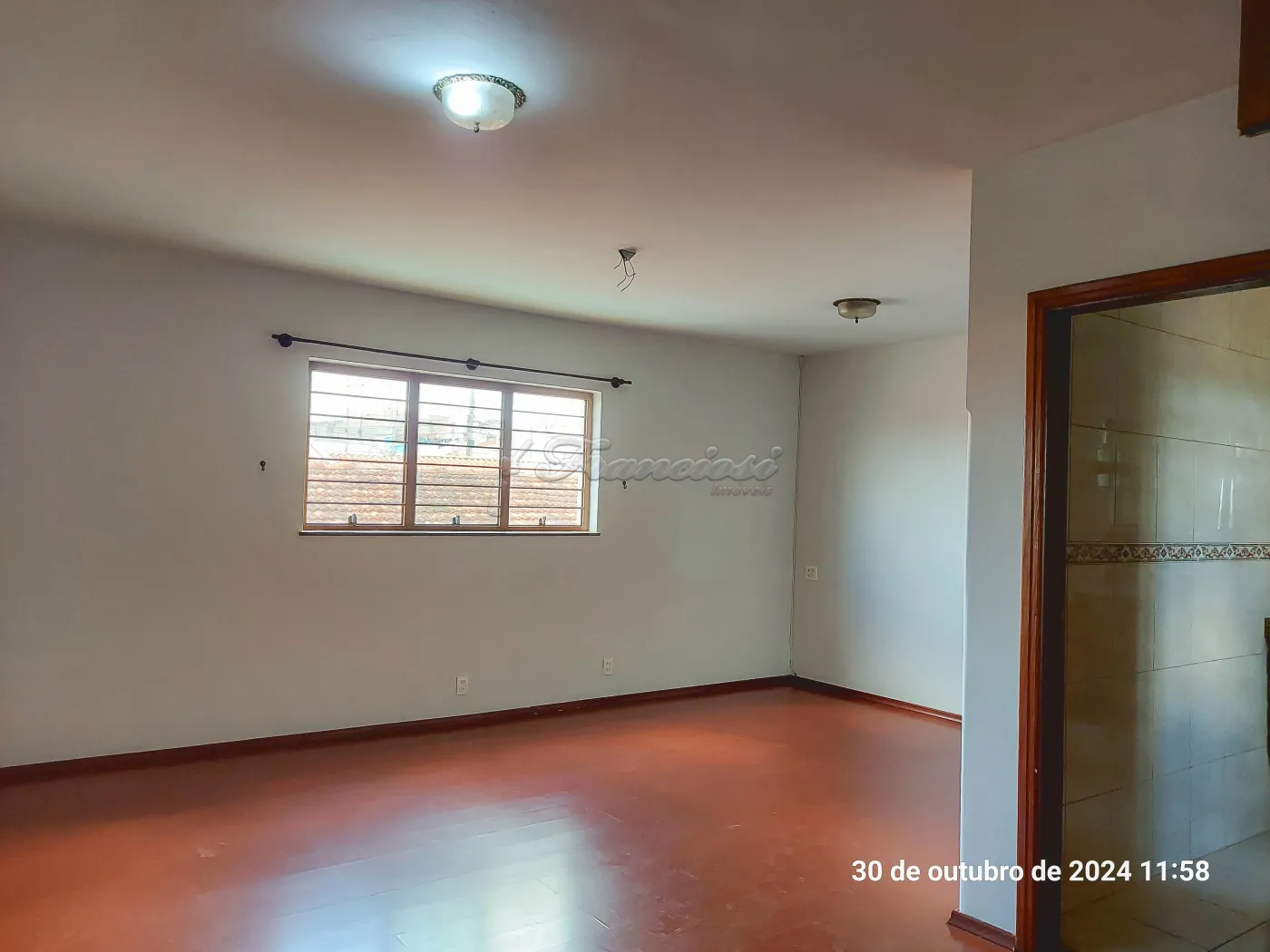 Parte superior com 4 dormitórios sendo 2 suítes com armários, sala grande e 1 banheiro.