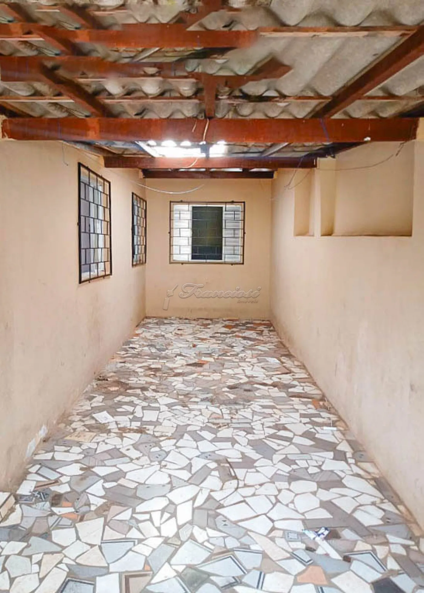 Casa com 2 dormitórios, sala, cozinha, 1 banheiro social, área de serviço e garagem.
