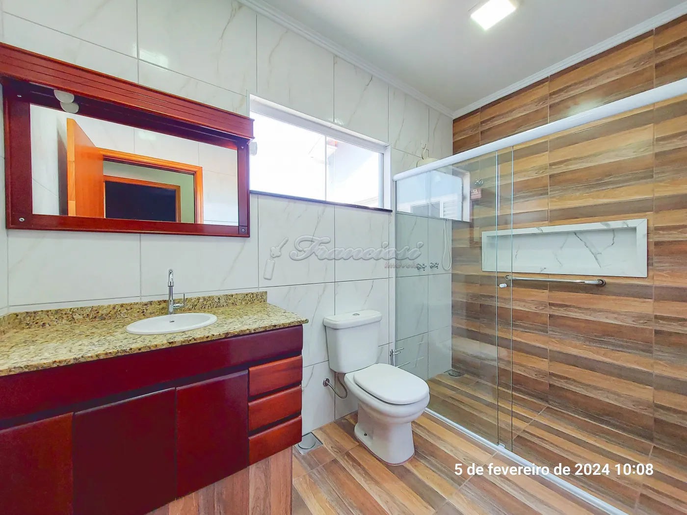Casa com 3 dormitórios com armários embutidos, 1 banheiro social, sala de estar, sala de jantar conceito aberto cozinha com armário embutido, área de serviço com 1 banheiro, quintal, churrasqueira e garagem coberta para 4 carros.