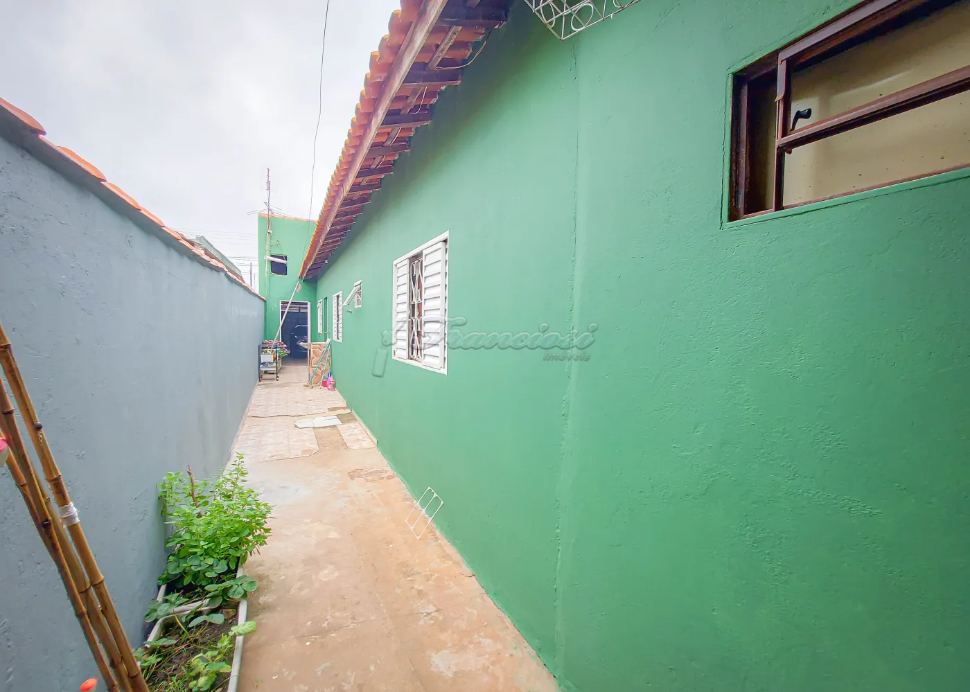 Imóvel de três quartos, incluindo uma suíte, com espaços amplos como sala de estar, cozinha, banheiro social, lavanderia coberta e um quintal espaçoso. A propriedade também oferece uma garagem coberta para dois carros, equipada com portão eletrônico.