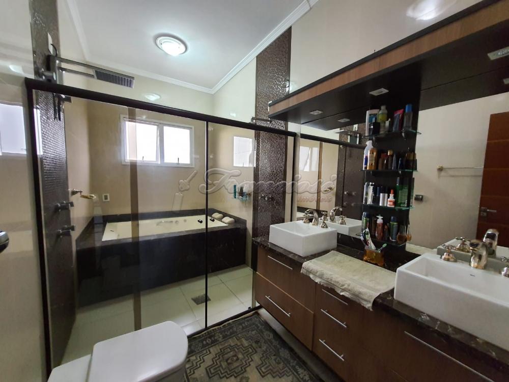 Casa com 3 suítes com closet e banheira, 2 salas de TV, sala de jantar, 1 banheiro social, cozinha com armários, despensa, lavanderia, edícula com churrasqueira, banheiro e 1 dormitório. Ar condicionado nos dormitórios.