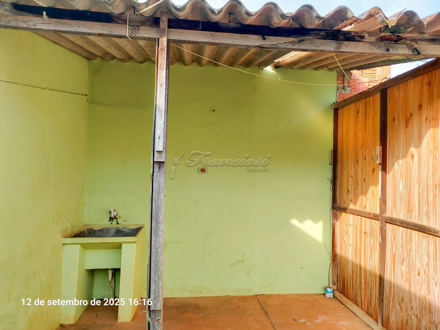 Casa com 2 dormitórios, sala, cozinha, 1 banheiro social, área de serviço coberta, quintal grande cimentado e garagem coberta para 1 carro.