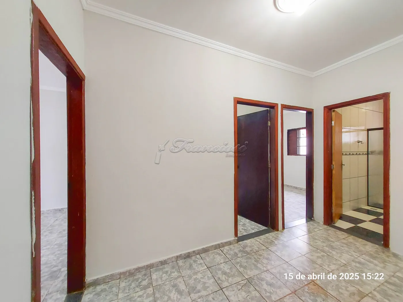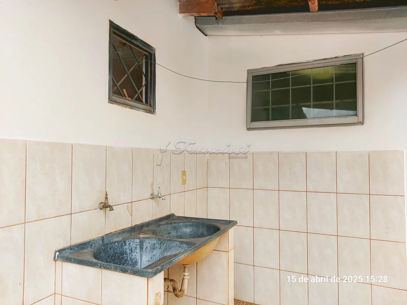 Casa com 3 dormitórios, sala de estar, sala de jantar, 1 banheiro social, área de serviço, edícula, quintal cimentado e garagem coberta para 1 carro.