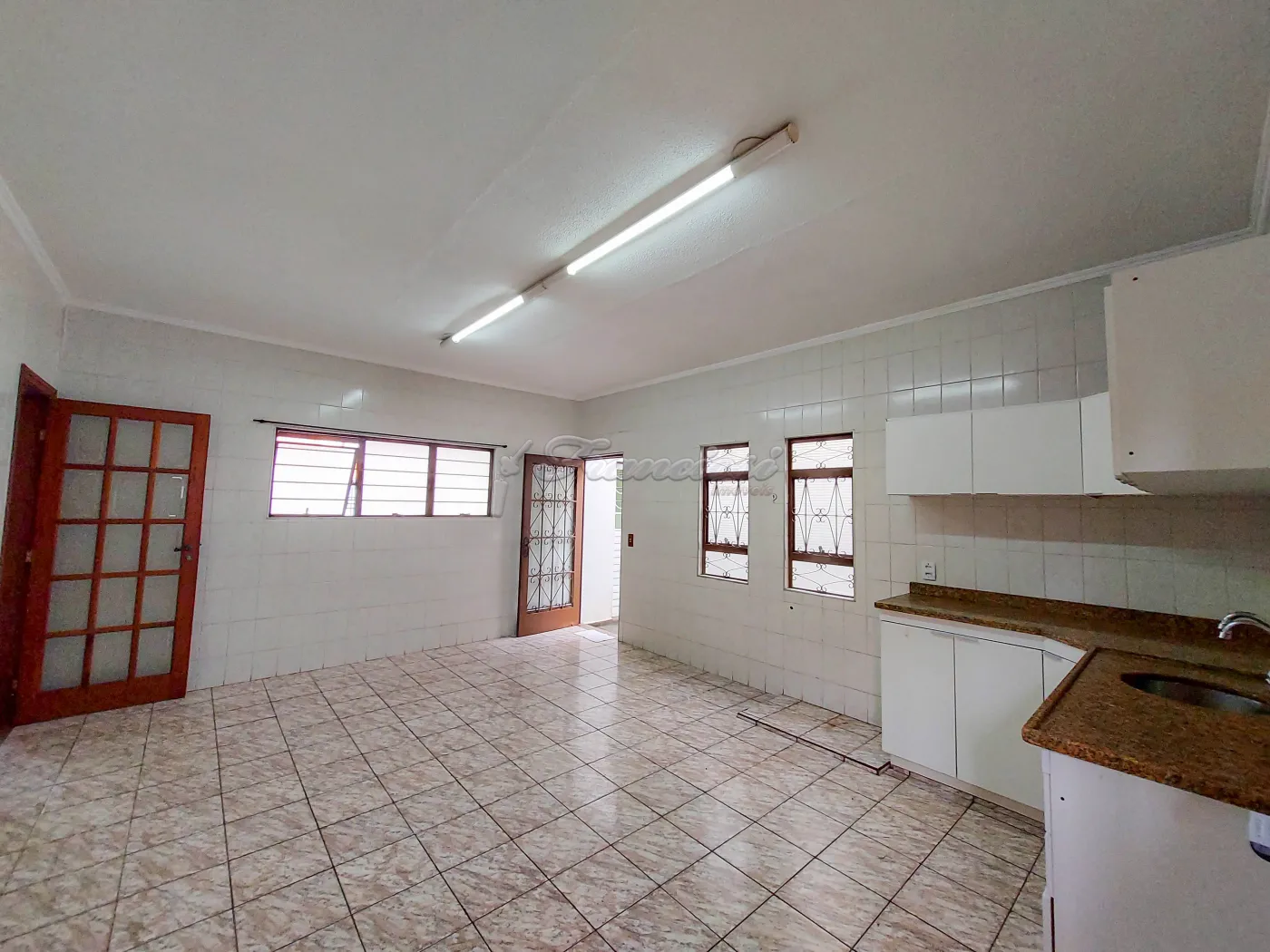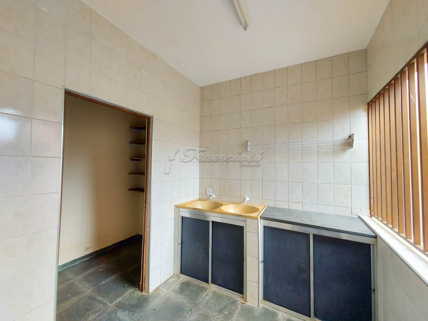 Acabamento: laje, piso frio, cozinha e banheiro azulejados até o teto.