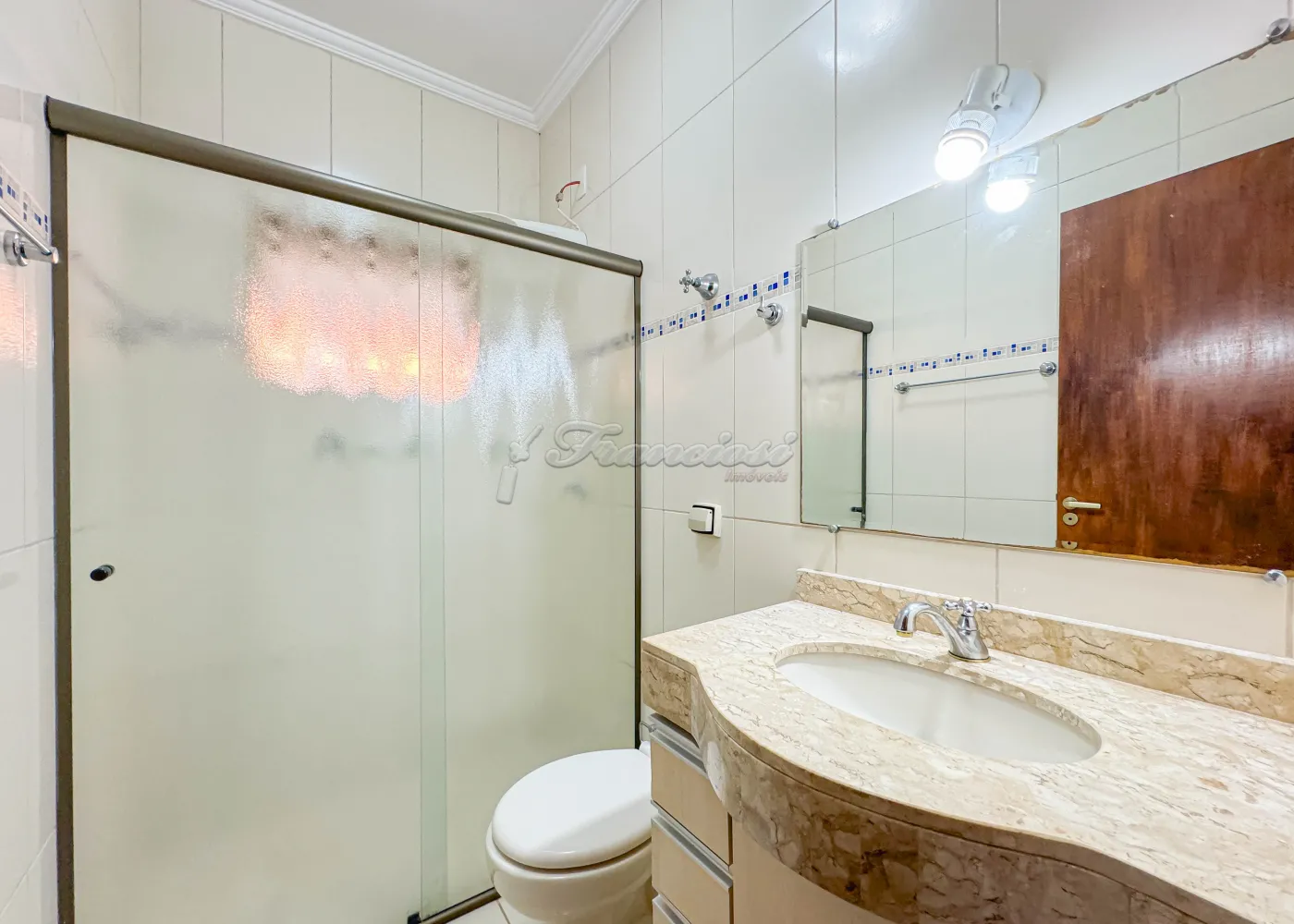 Acabamento: gesso, piso porcelanato e azulejo.