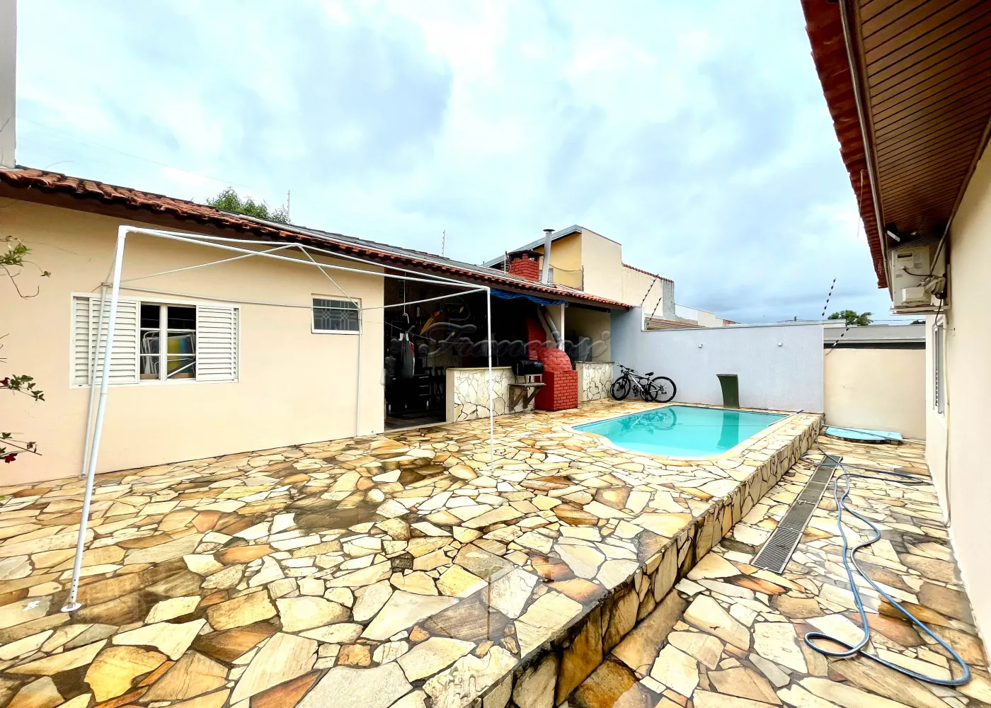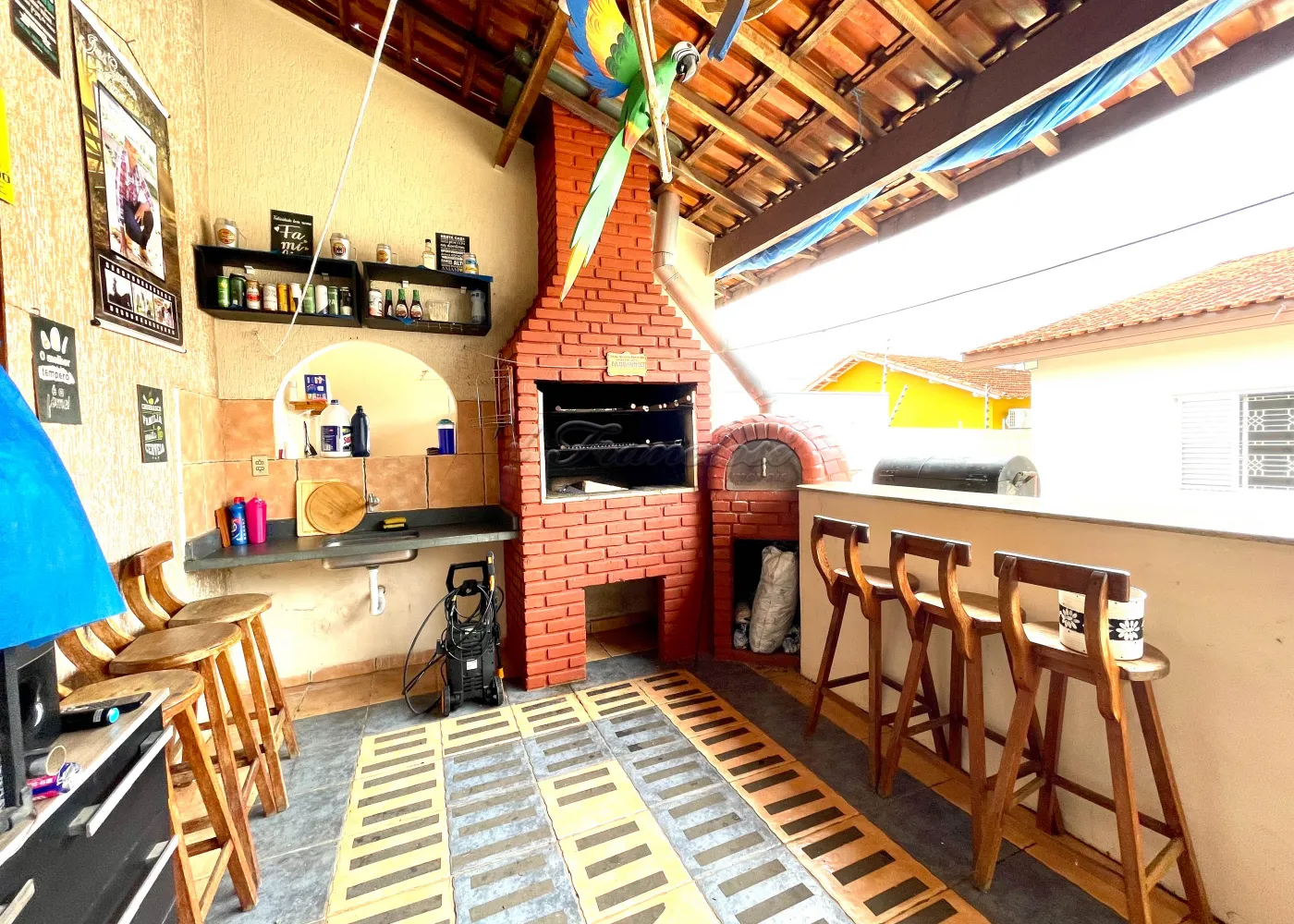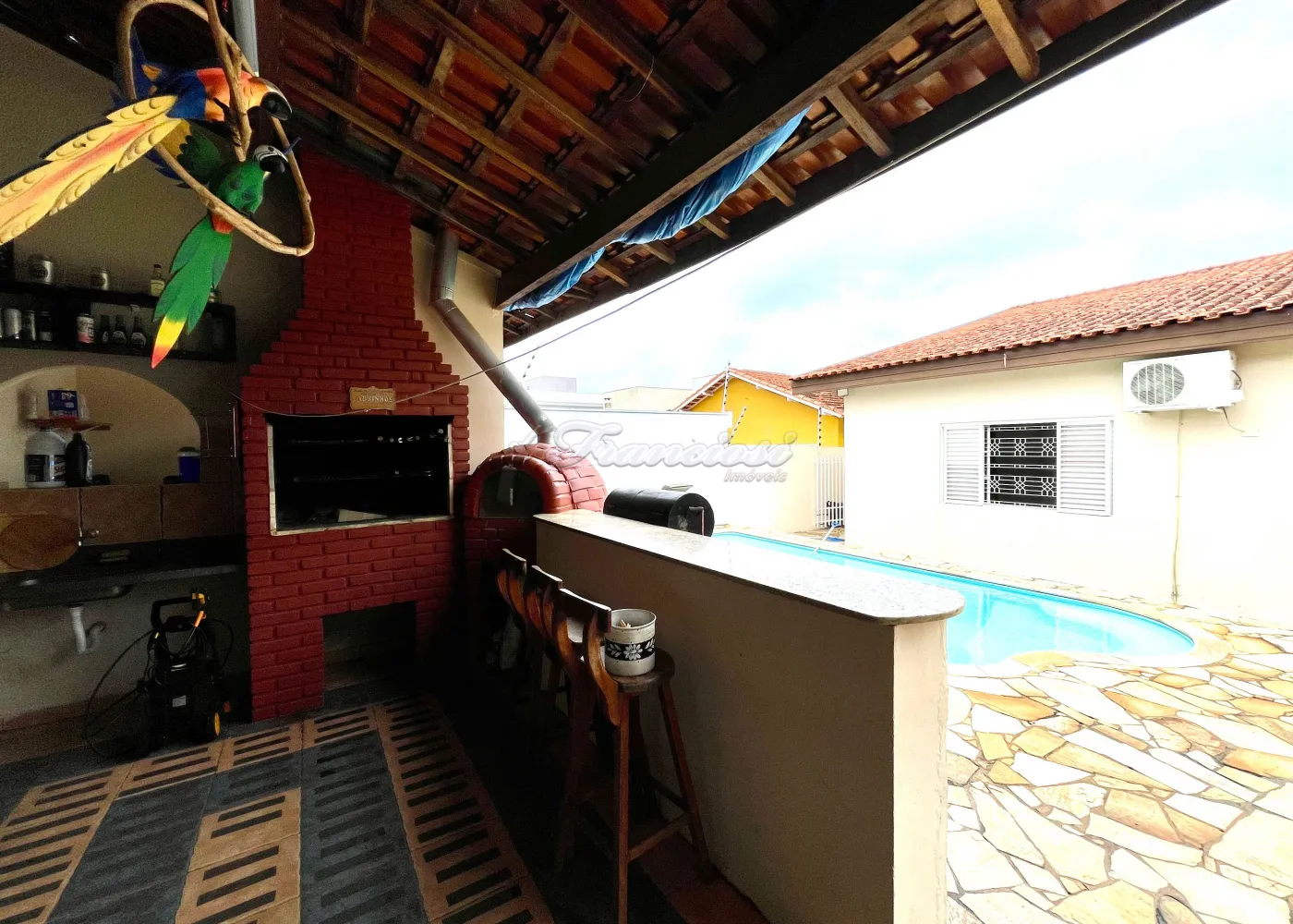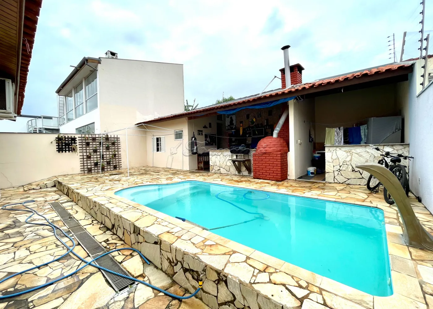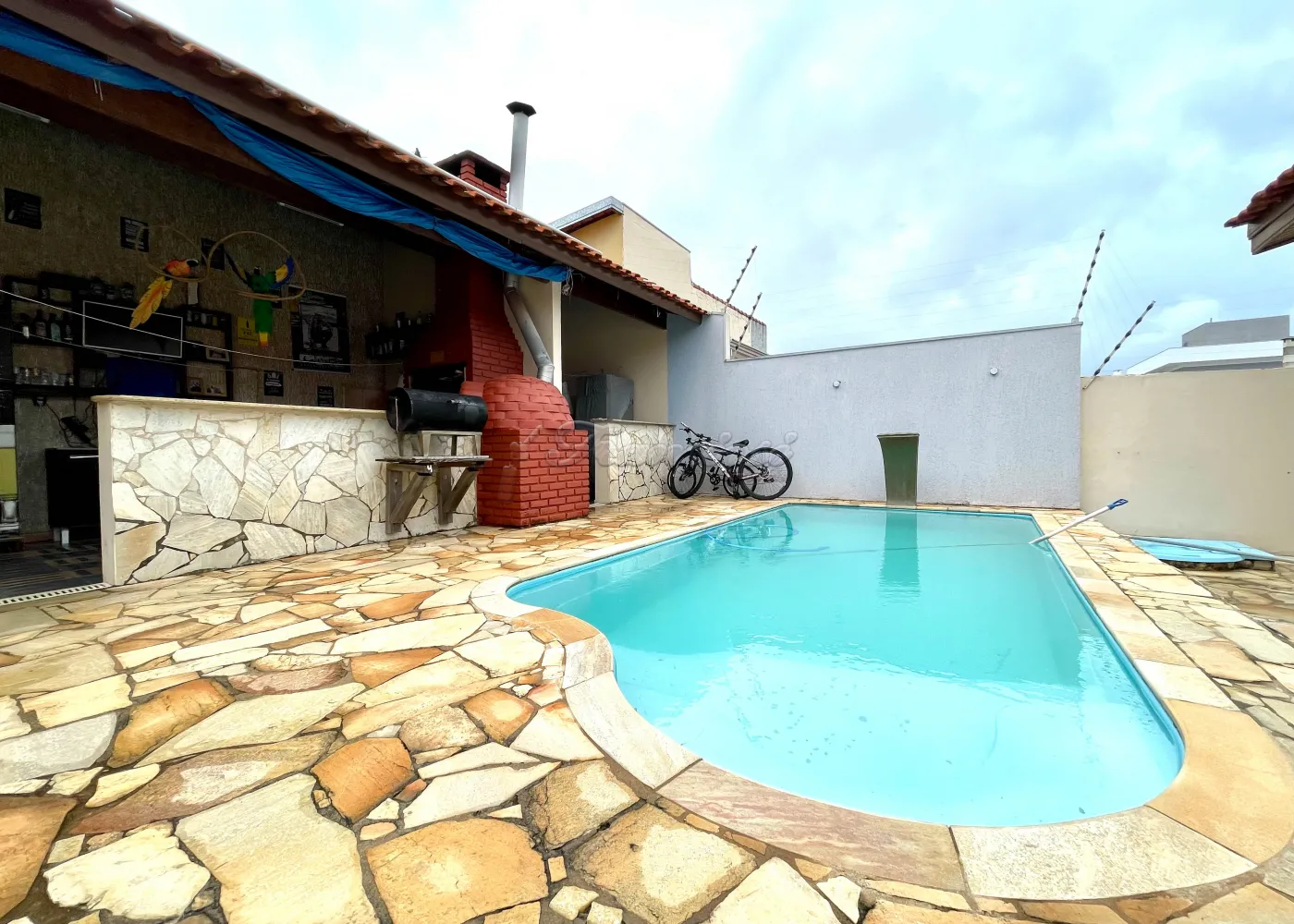 Dispõe de 03 dormitórios, sendo 01 suíte, sala de estar, cozinha, banheiro social, quintal com edícula composta por quarto e banheiro, área gourmet e piscina. Conta com garagem para 02 veículos.