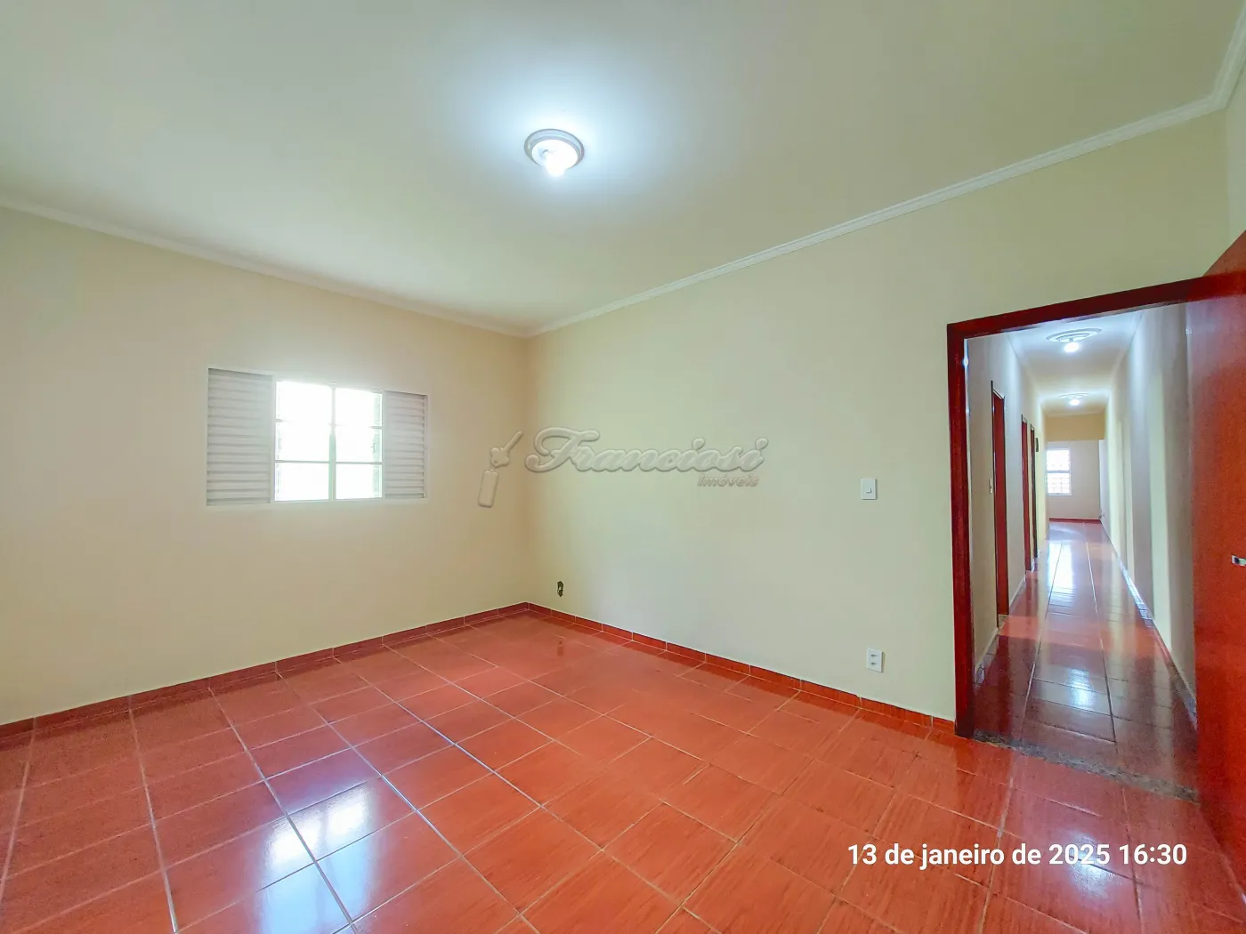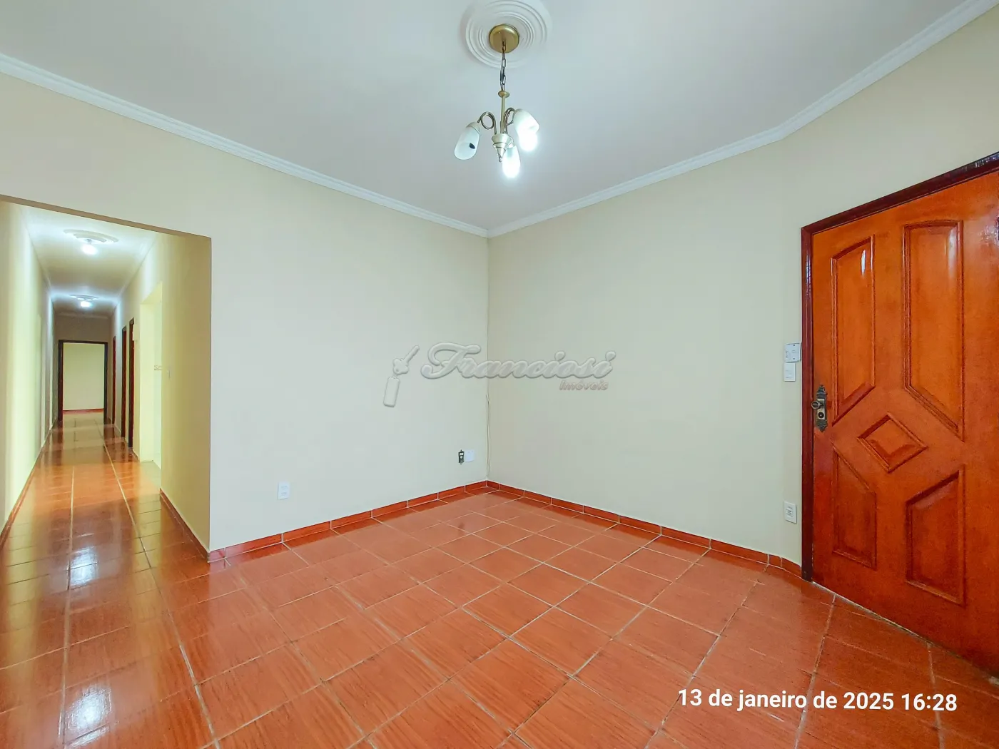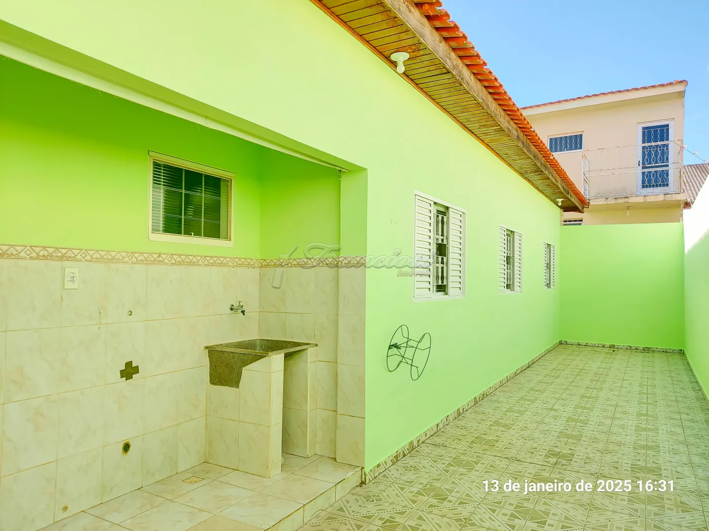 Casa com 3 dormitórios, sala de estar, cozinha com armário embutido, 1 banheiro social com box blindex, área de serviço, quintal grande com piso e garagem coberta para 1 carro com portão eletrônico.