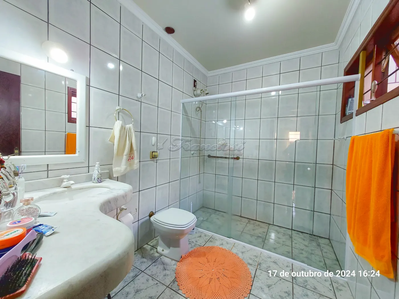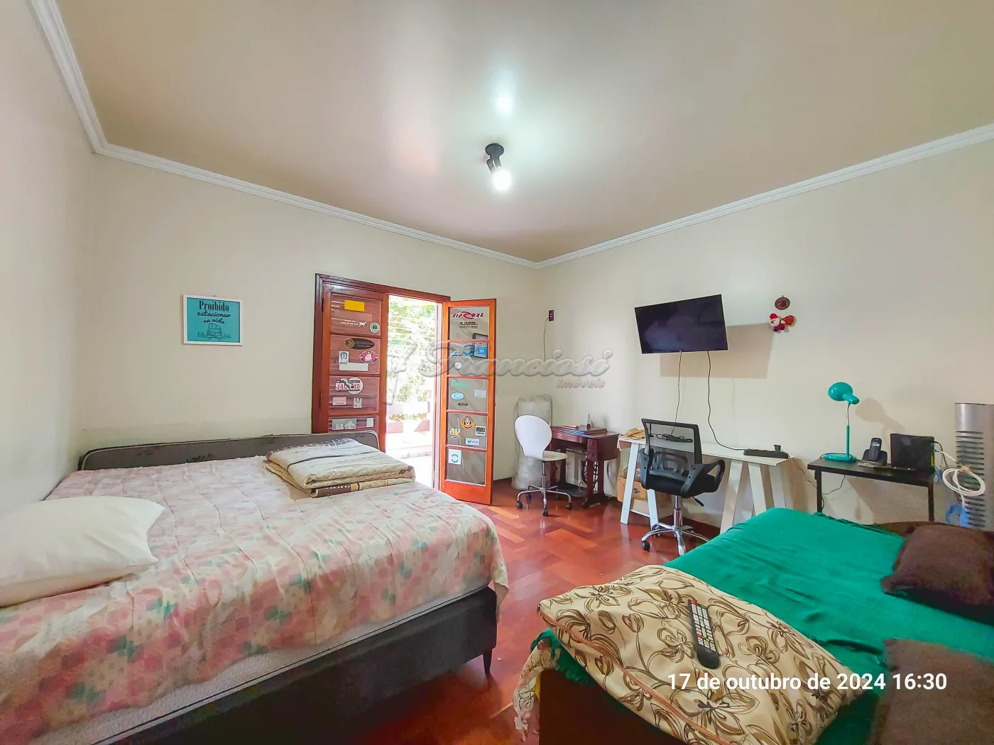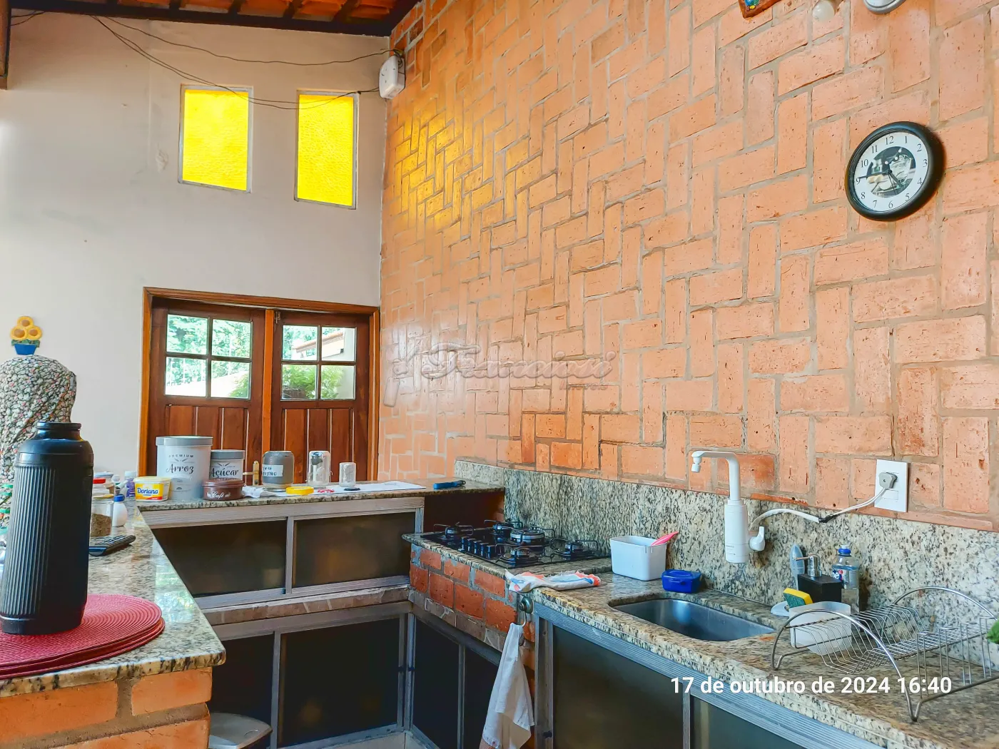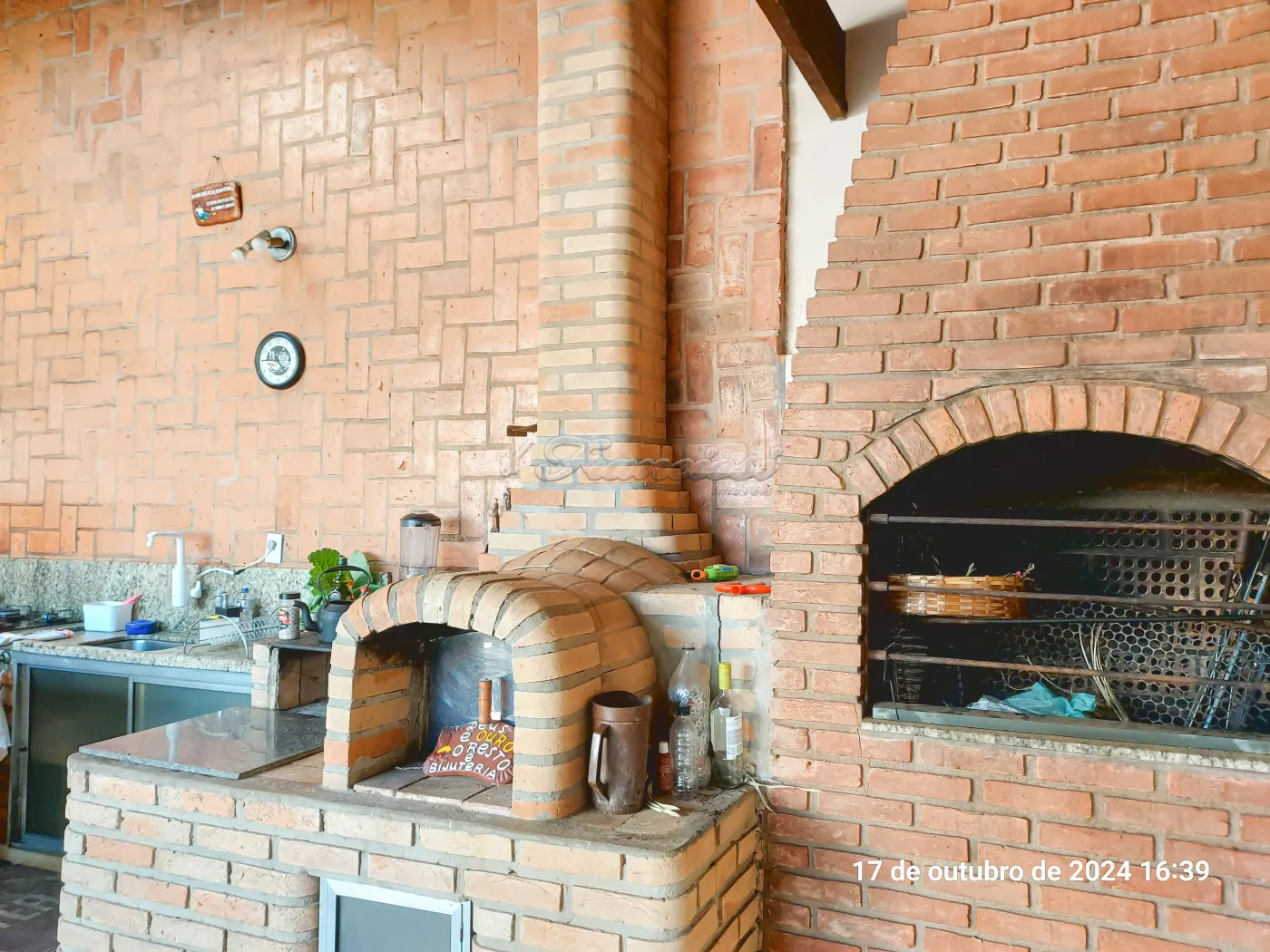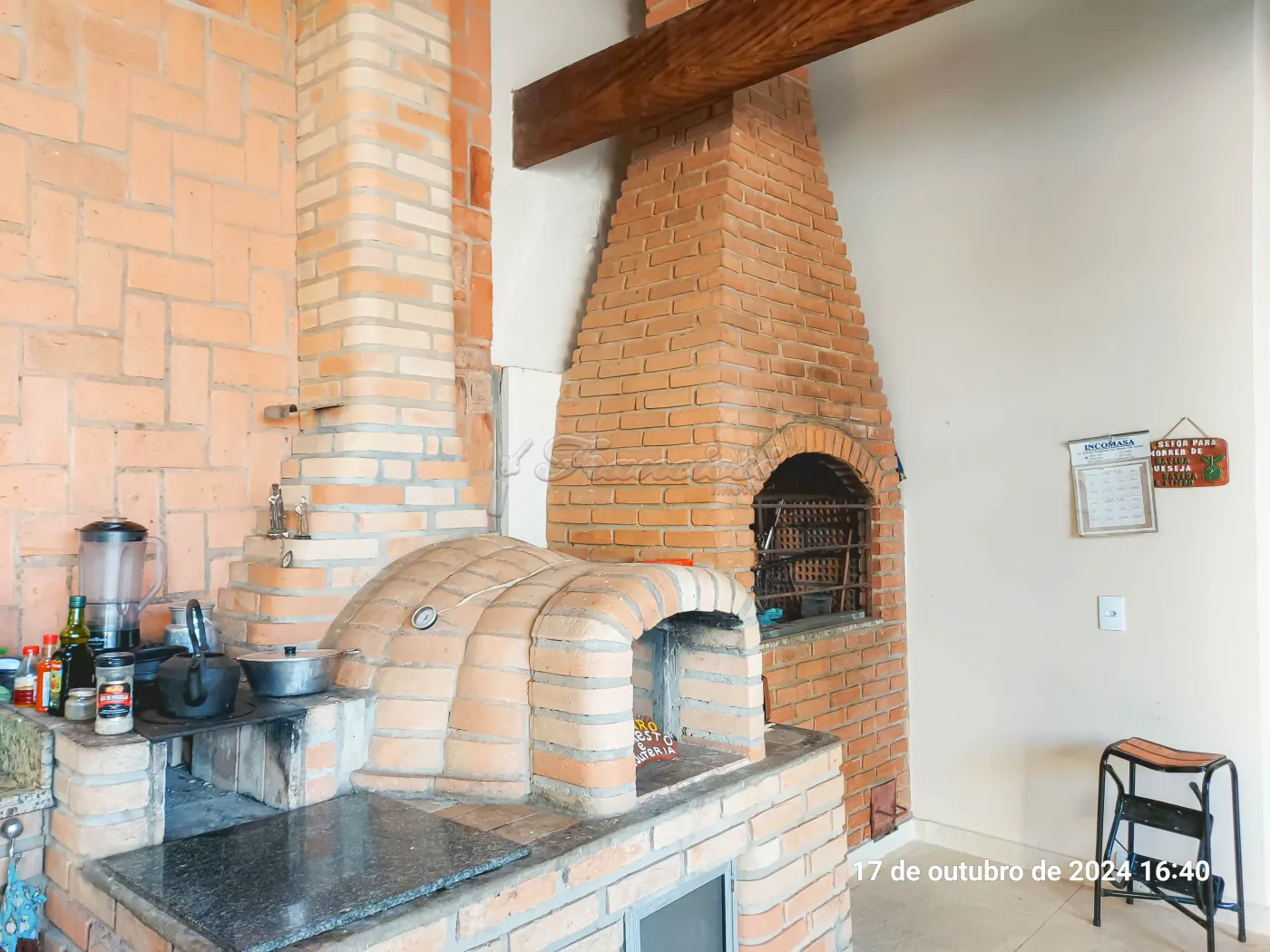Piso inferior: 1 dormitório, 1 banheiro, sala, copa, cozinha, área de lazer com churrasqueira e fornalha, área de serviço, edicula com banheiro e garagem coberta para 1 carro.