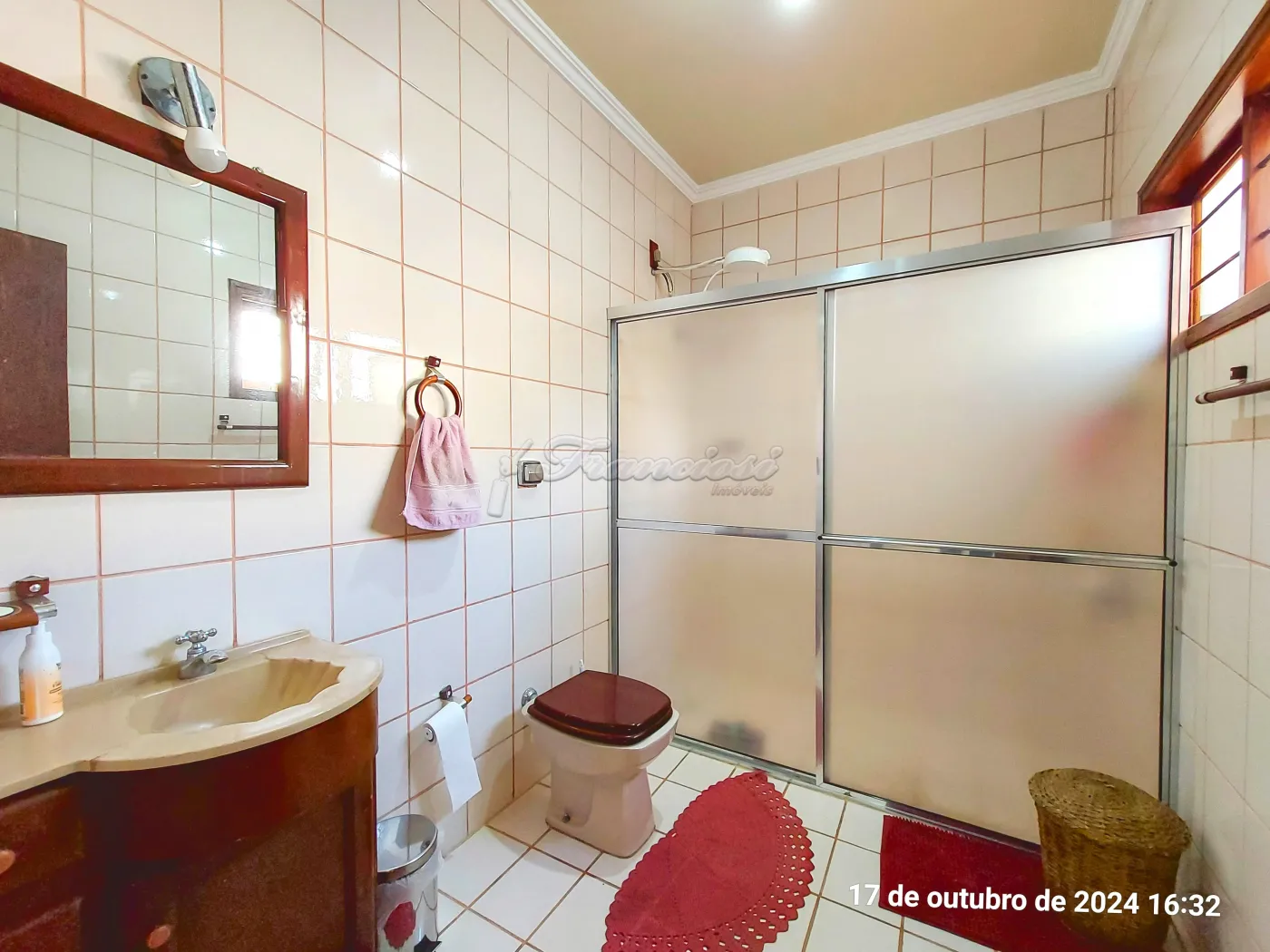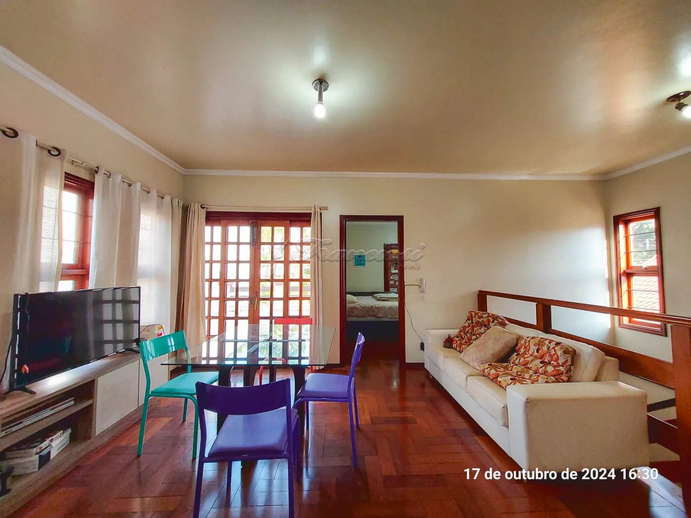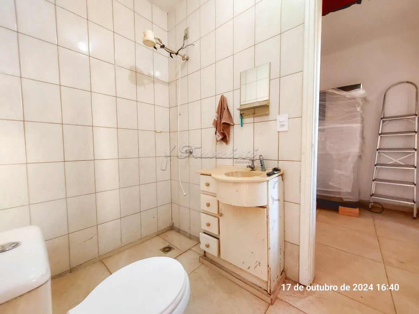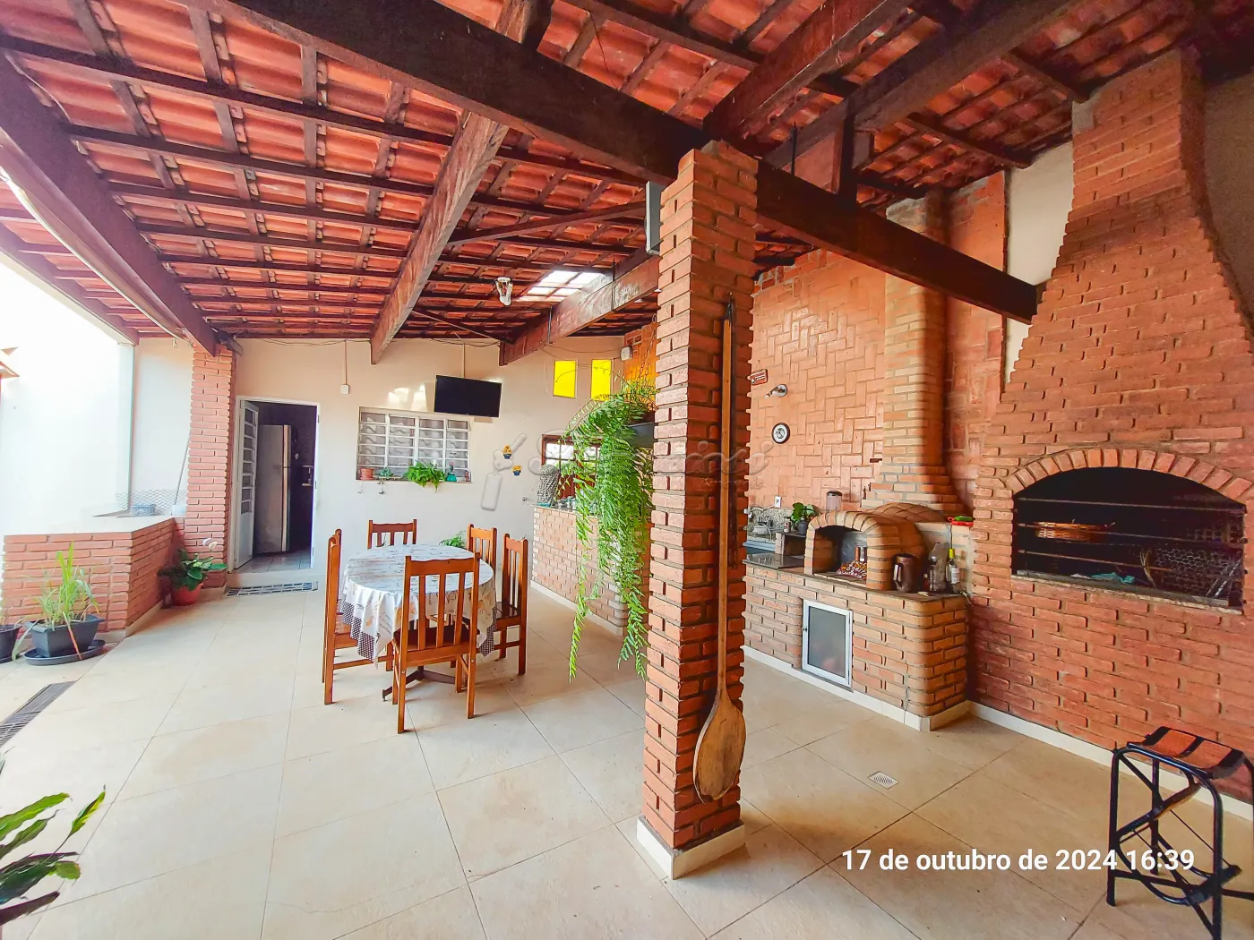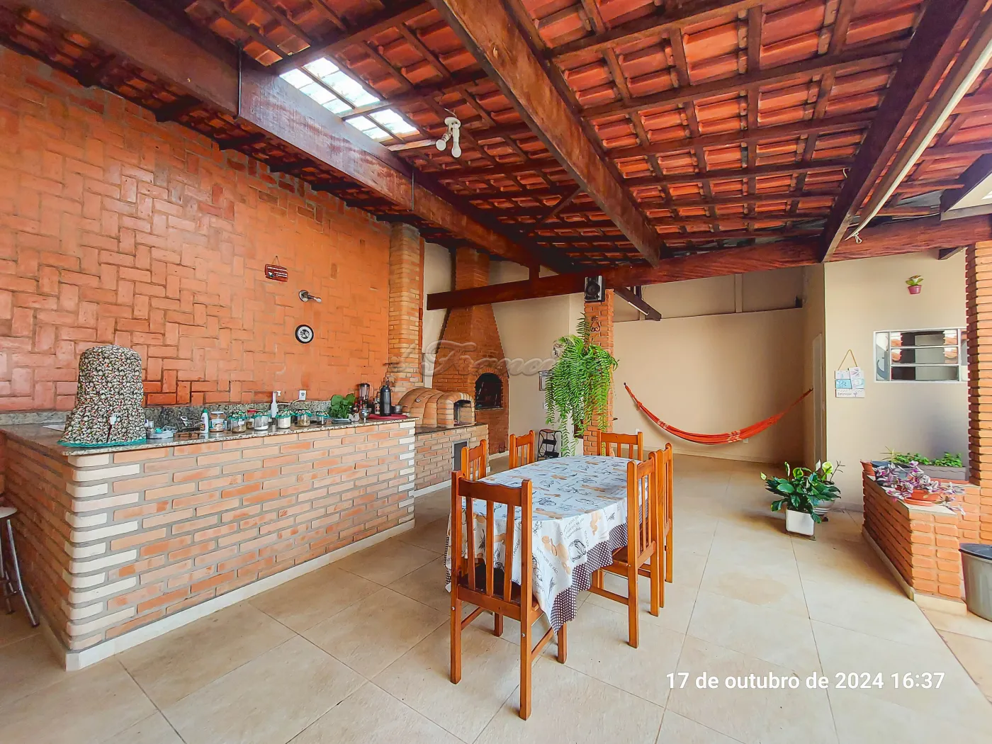 Piso inferior: 1 dormitório, 1 banheiro, sala, copa, cozinha, área de lazer com churrasqueira e fornalha, área de serviço, edicula com banheiro e garagem coberta para 1 carro.