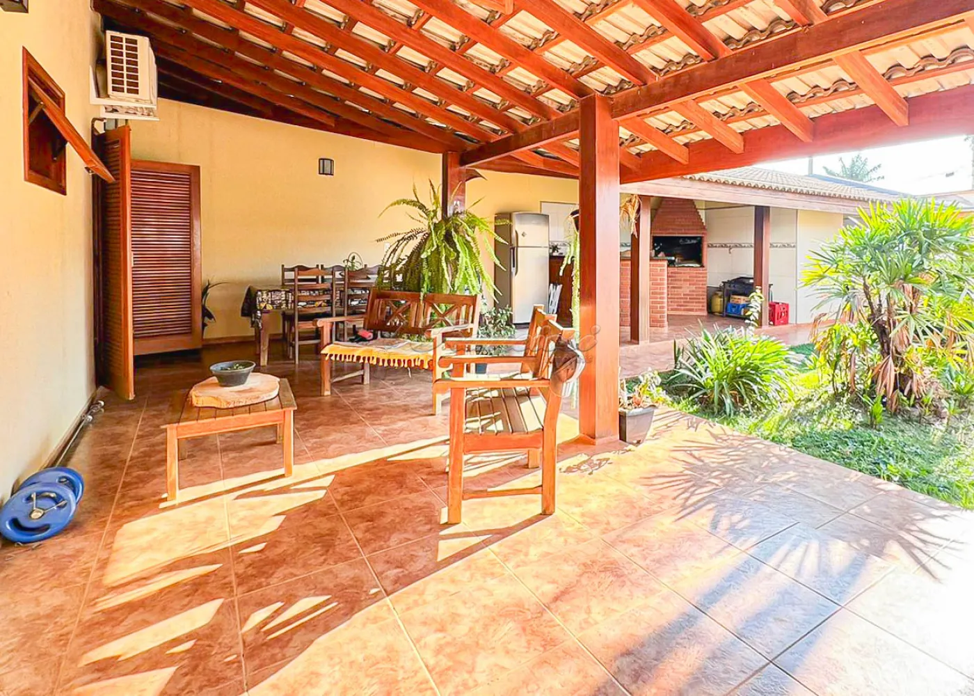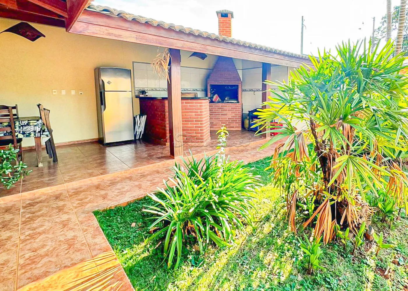 Casa com 3 dormitórios sendo 1 suíte, sala de estar, cozinha, 1 banheiro social, lavanderia, escritório, área gourmet com churrasqueira e 1 banheiro, piscina, garagem para 02 veículos.