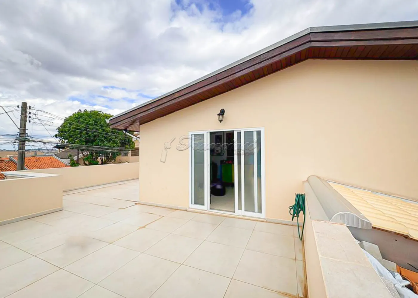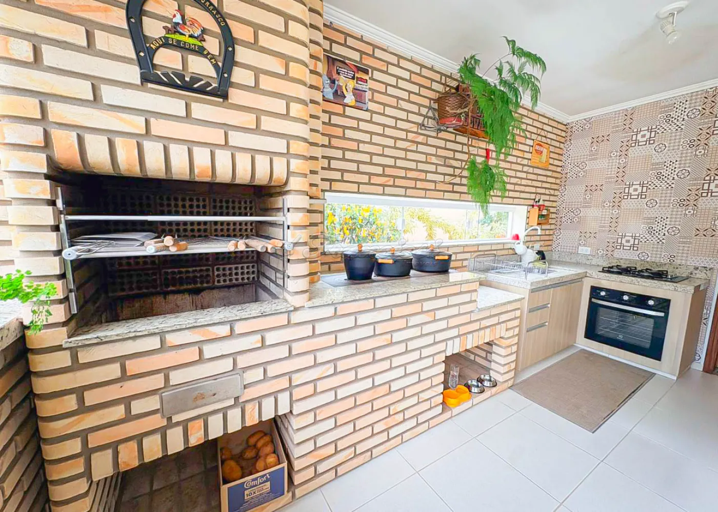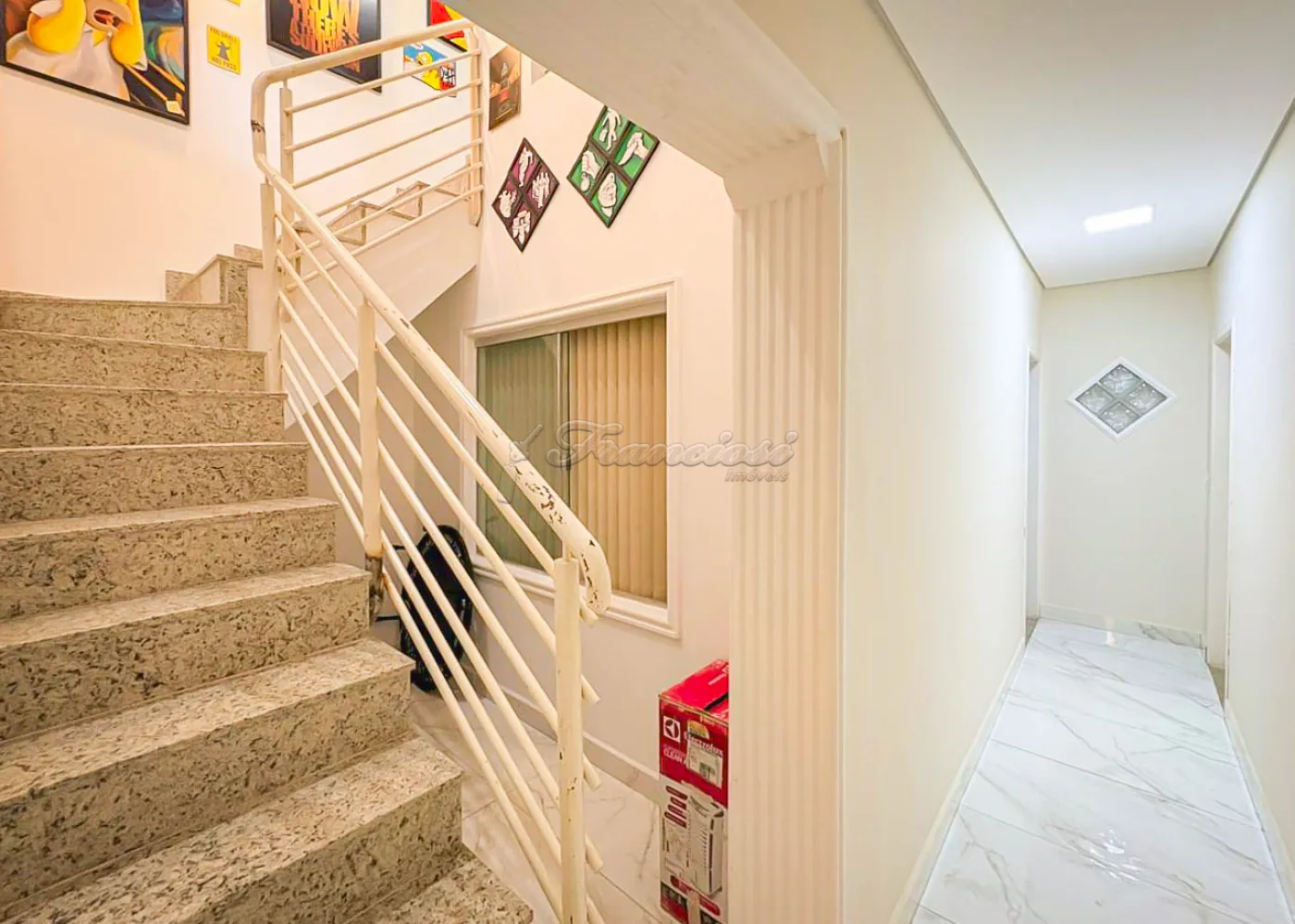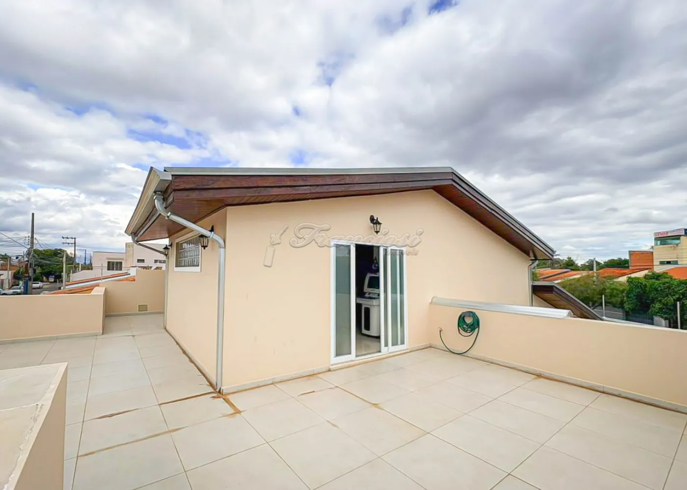 No piso superior, o imóvel dispõe de cômodo amplo, ideal para sala de jogos, home cinema ou outros usos, além de terraço grande.