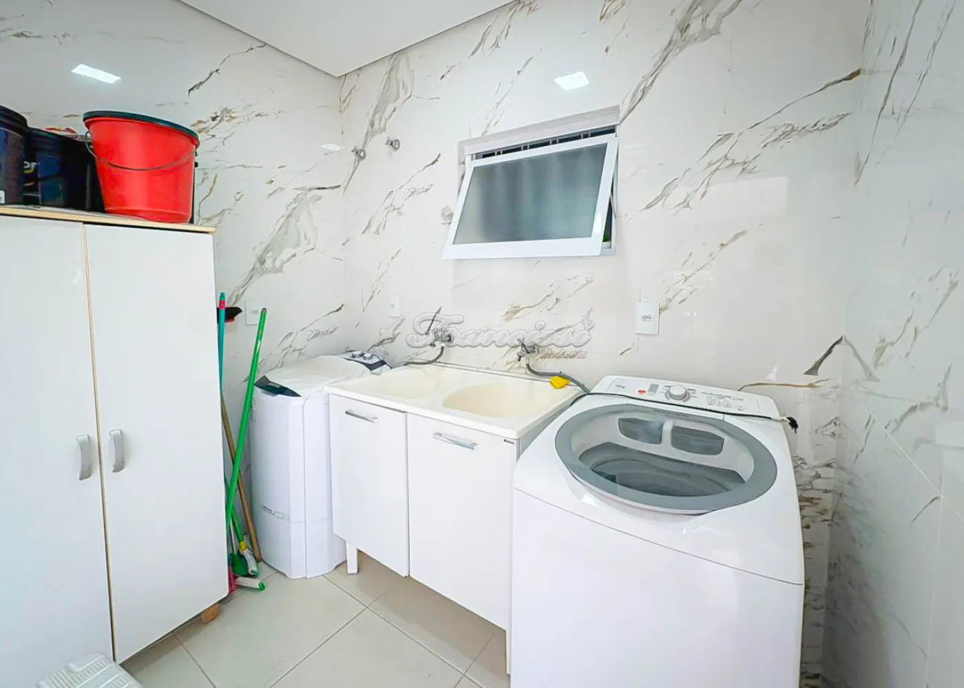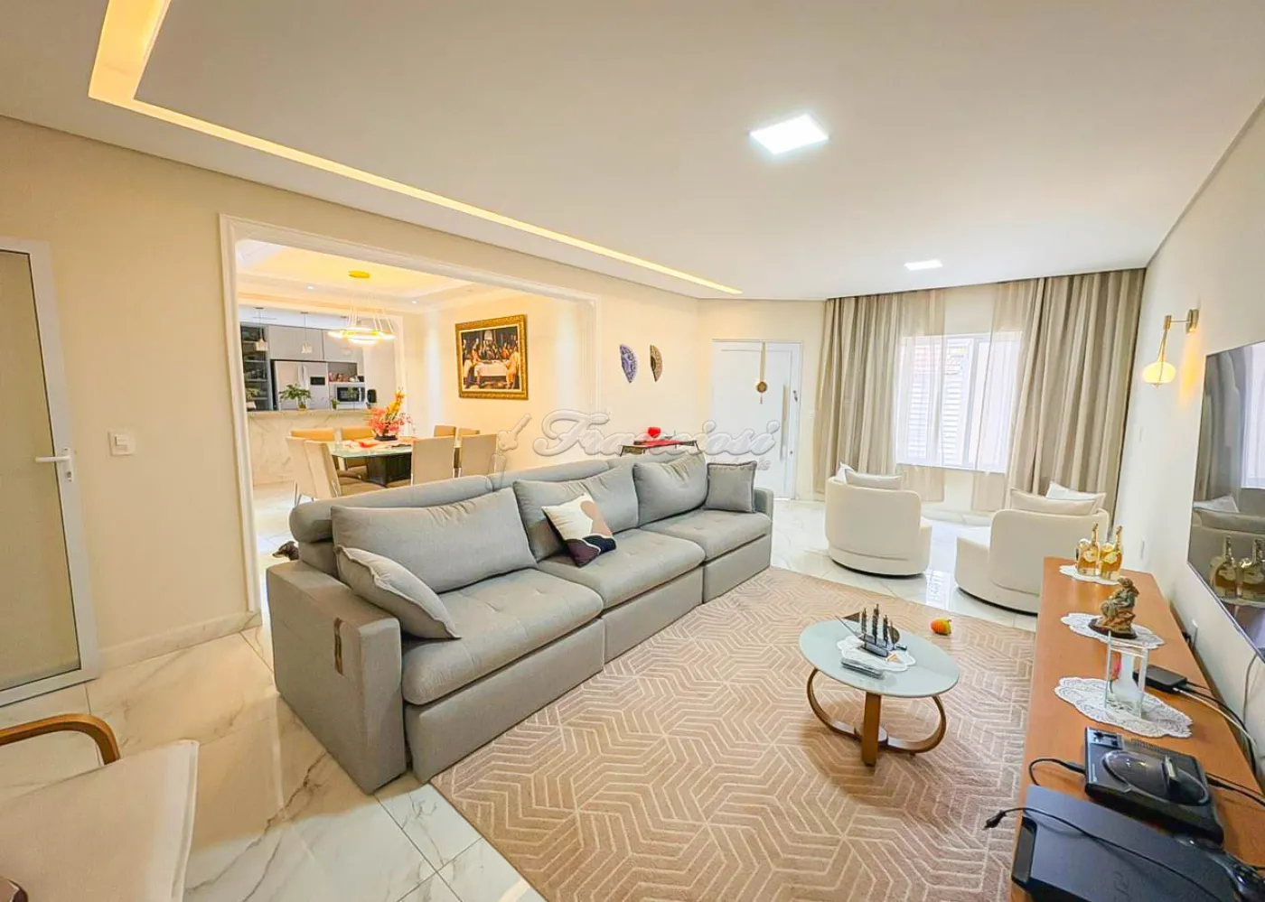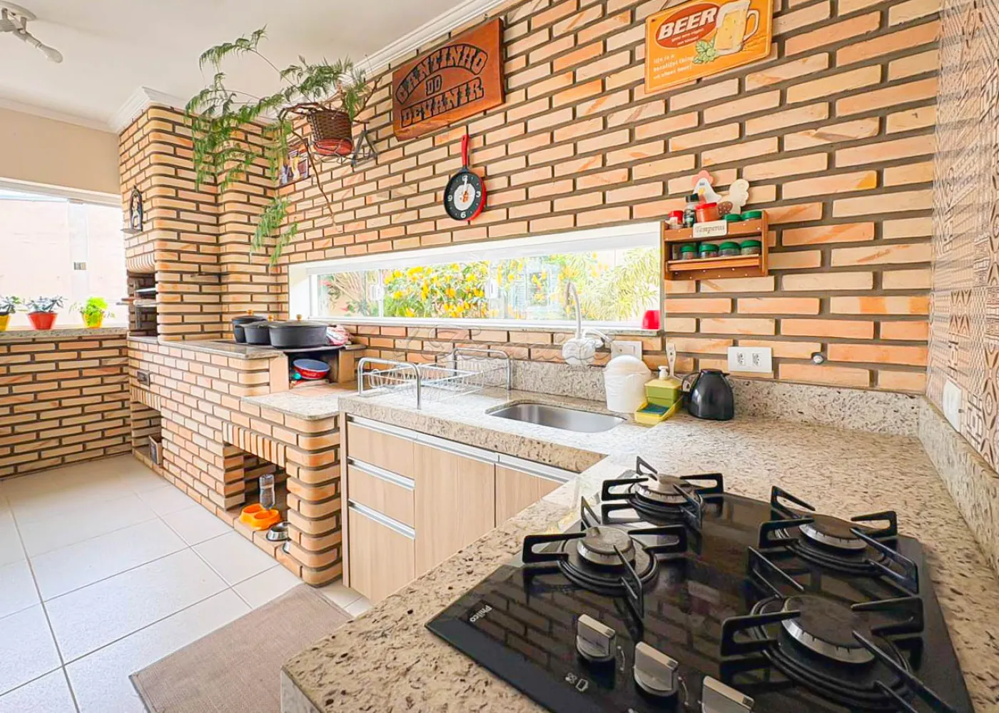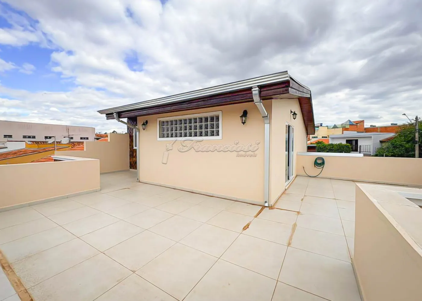 No piso superior, o imóvel dispõe de cômodo amplo, ideal para sala de jogos, home cinema ou outros usos, além de terraço grande.