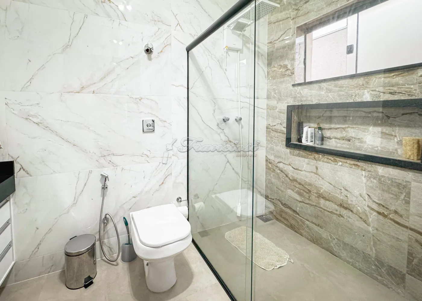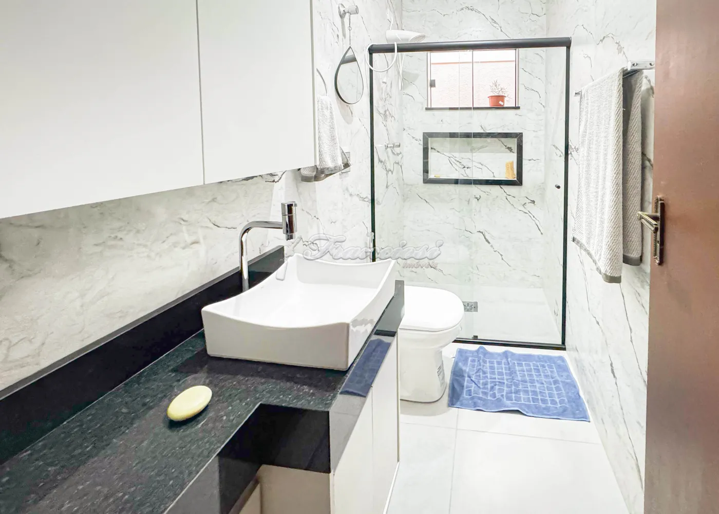 Acabamento: cozinha planejada, banheiros com gabinetes e blindex.