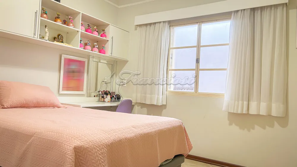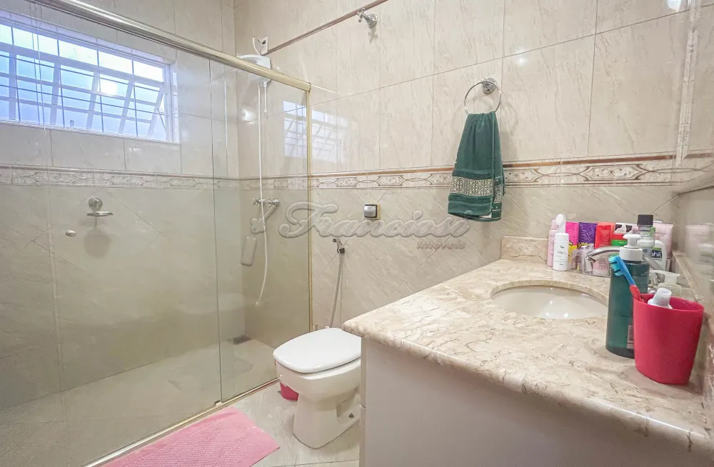 Casa com 3 dormitórios sendo 1 suíte com closet e duas cubas, sala de estar com cortina by window e persianas, sala de jantar, lavabo , despensa , cozinha com armários modulados, 1 banheiro social, área de iluminação , quintal com churrasqueira e forno de pizza, 1 banheiro externo, lavanderia, garagem para 2 carros. Dormitórios com ar condicionado sendo 2 com armários planejados.