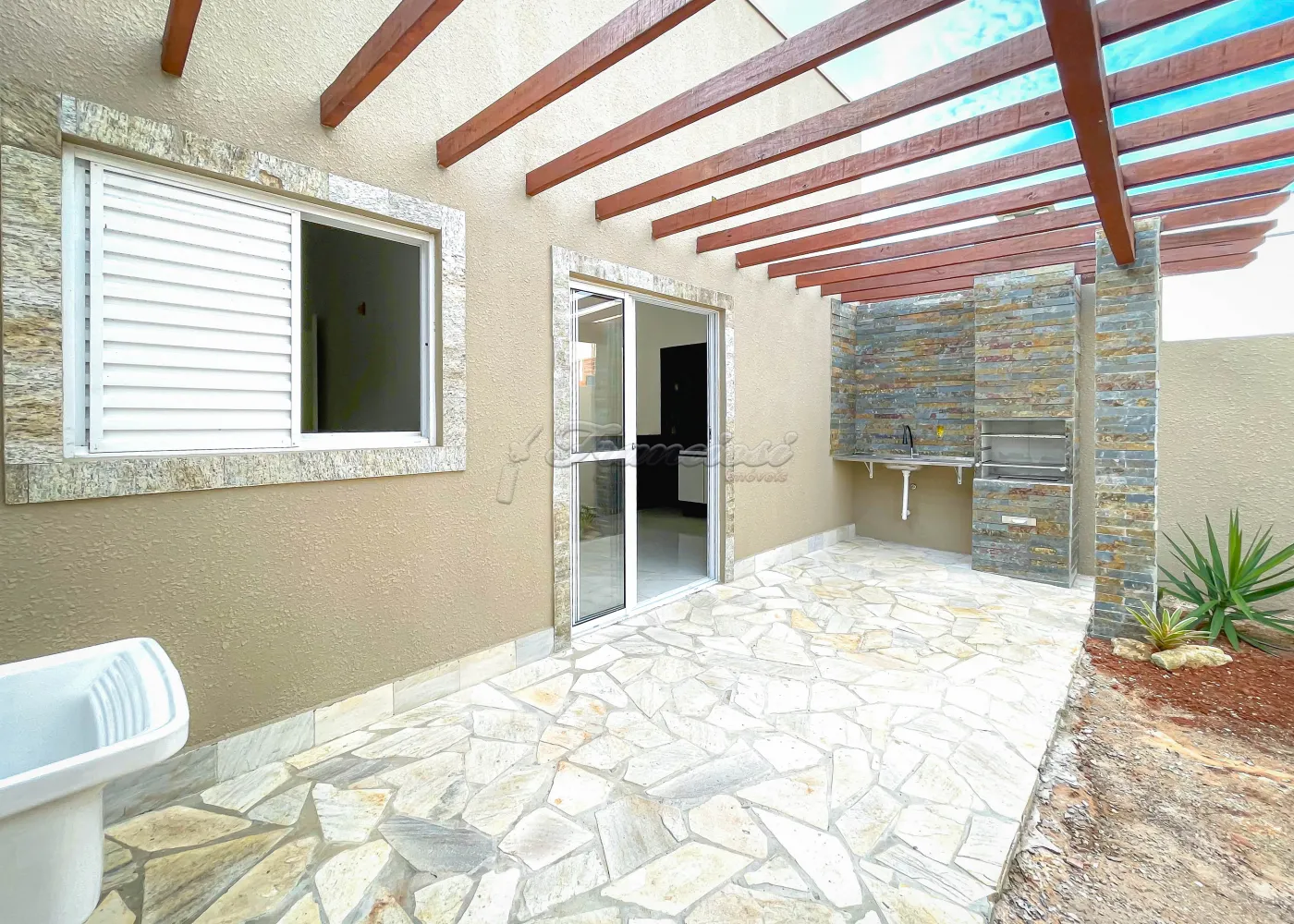 Imóvel localizado no Residencial Villaggio di Capri, com 03 dormitórios, sendo 01 suíte, sala de estar, cozinha, banheiro social, quintal com área gourmet e garagem para 02 veículos. Acabamento em laje e piso frio.