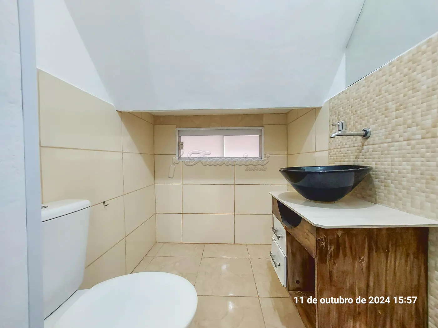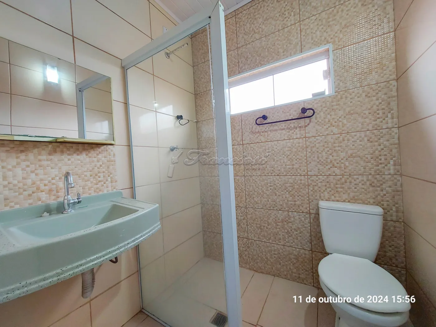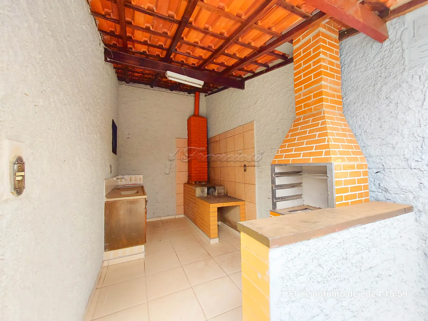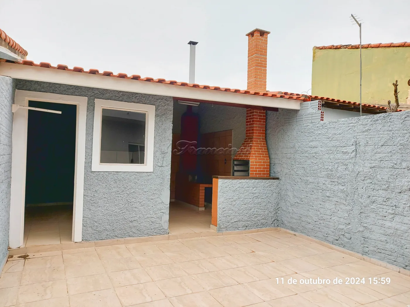 Casa com 3 dormitórios com varanda e 1 banheiro social no piso superior. No piso inferior, sala de estar, sala de jantar, cozinha, lavabo, quintal com lavanderia coberta, banheiro externo, área gourmet com churrasqueira, fogão à lenha e garagem coberta para 2 carros.