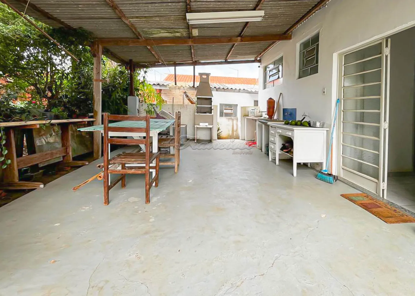 Casa com 3 dormitórios sendo 1 suíte com closet, sala, sala de jantar, cozinha com armário e fogão com coifa, lavabo, quintal grande, jardim, edícula com quarto e banheiro, área gourmet com cozinha, garagem para 2 carros e entrada para 3 carros, com portão eletrônico. Acabamento: laje com gesso, piso frio e blindex.