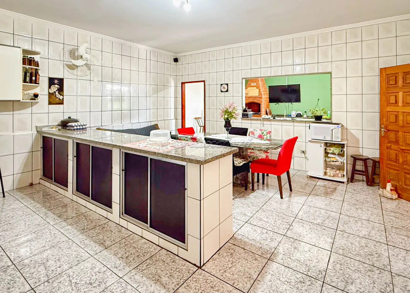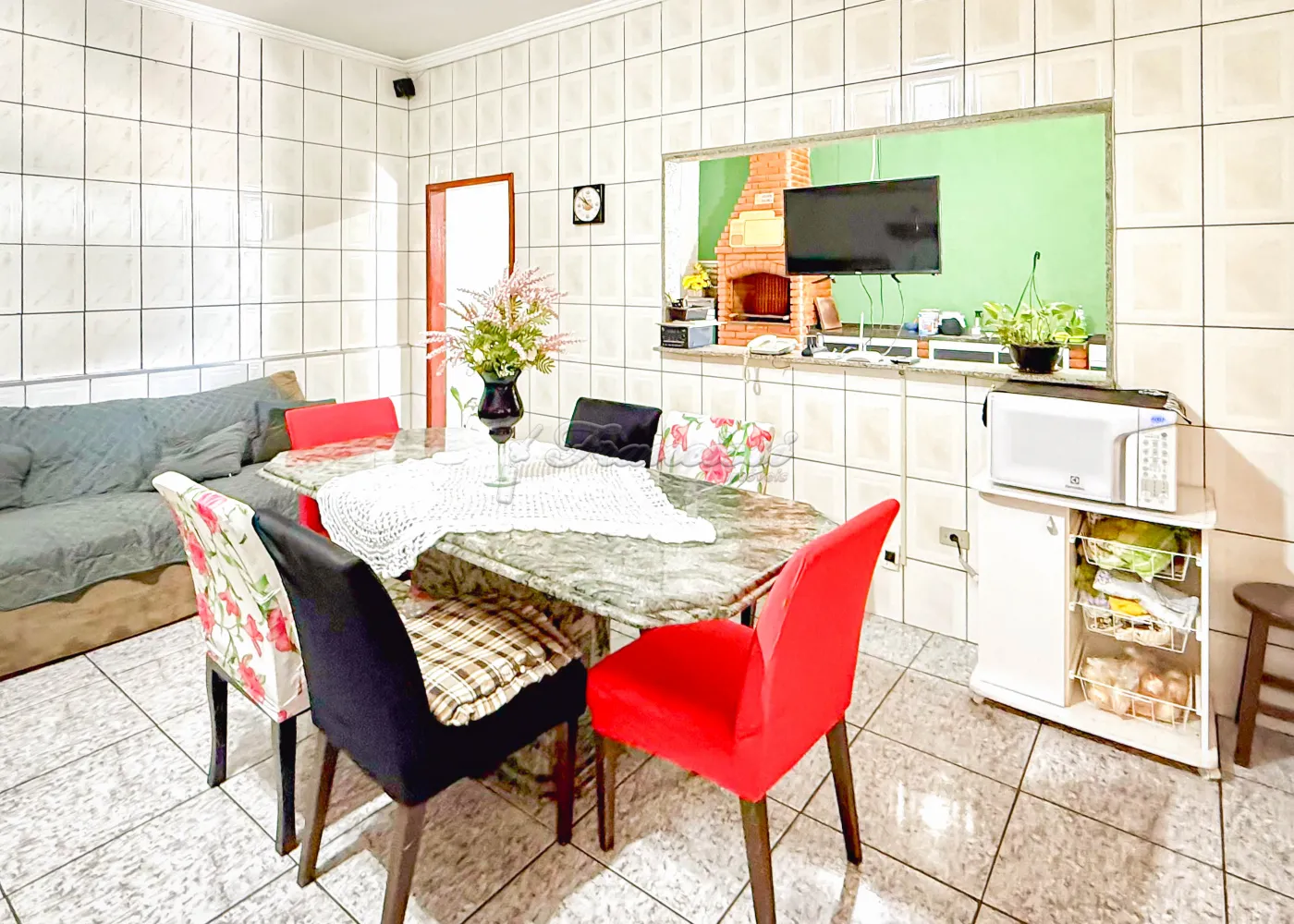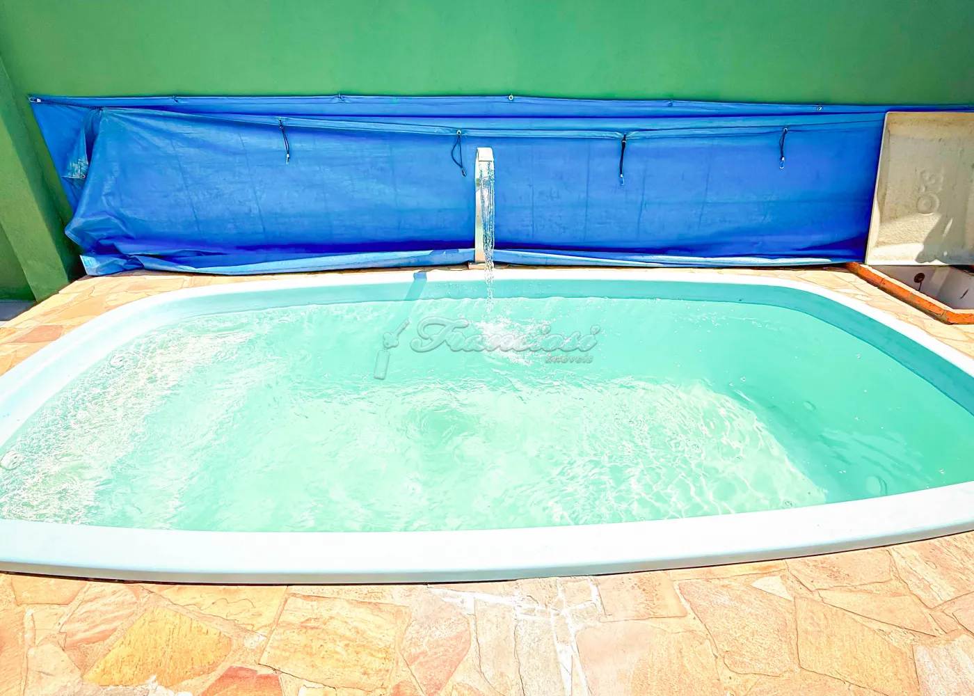 O imóvel conta com 02 dormitórios, sendo 01 deles suíte. Sala de estar, cozinha e banheiro social. Área gourmet com cozinha ampla, quintal com piscina e lavabo. Garagem fechada para 02 carros.