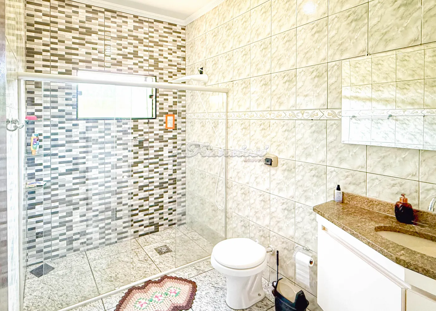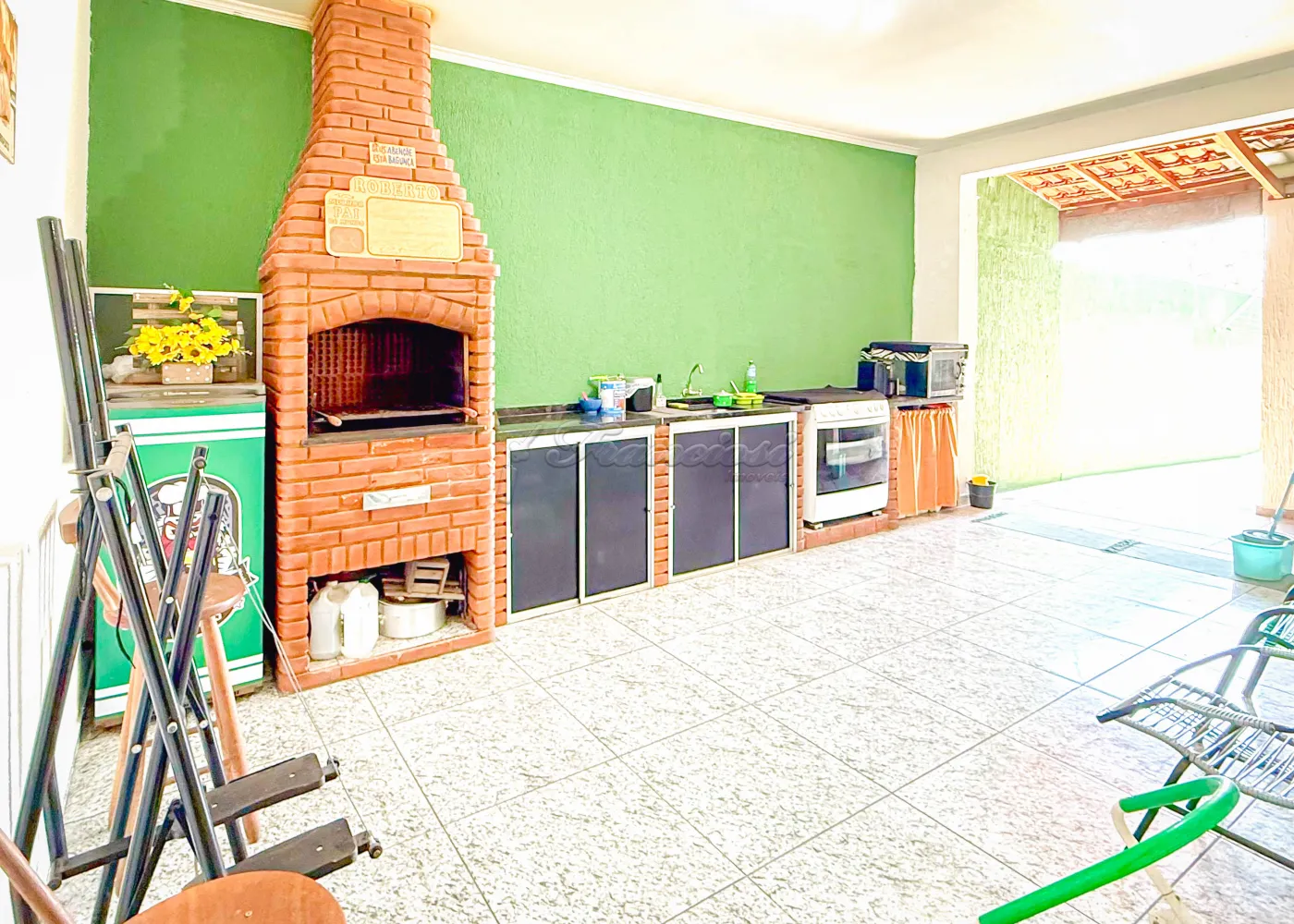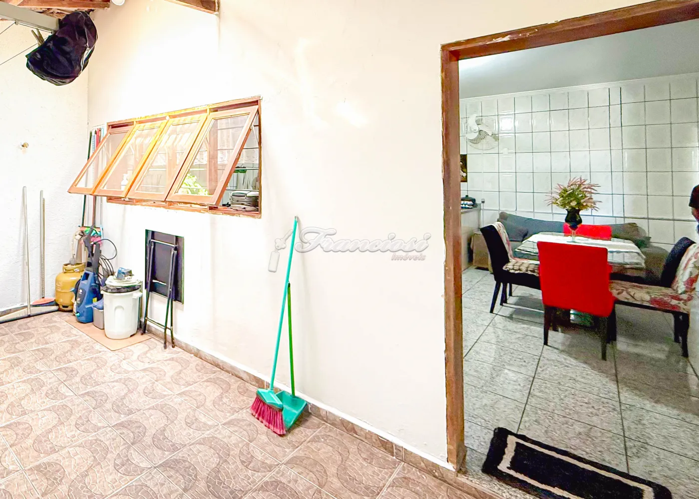 O imóvel conta com 02 dormitórios, sendo 01 deles suíte. Sala de estar, cozinha e banheiro social. Área gourmet com cozinha ampla, quintal com piscina e lavabo. Garagem fechada para 02 carros.