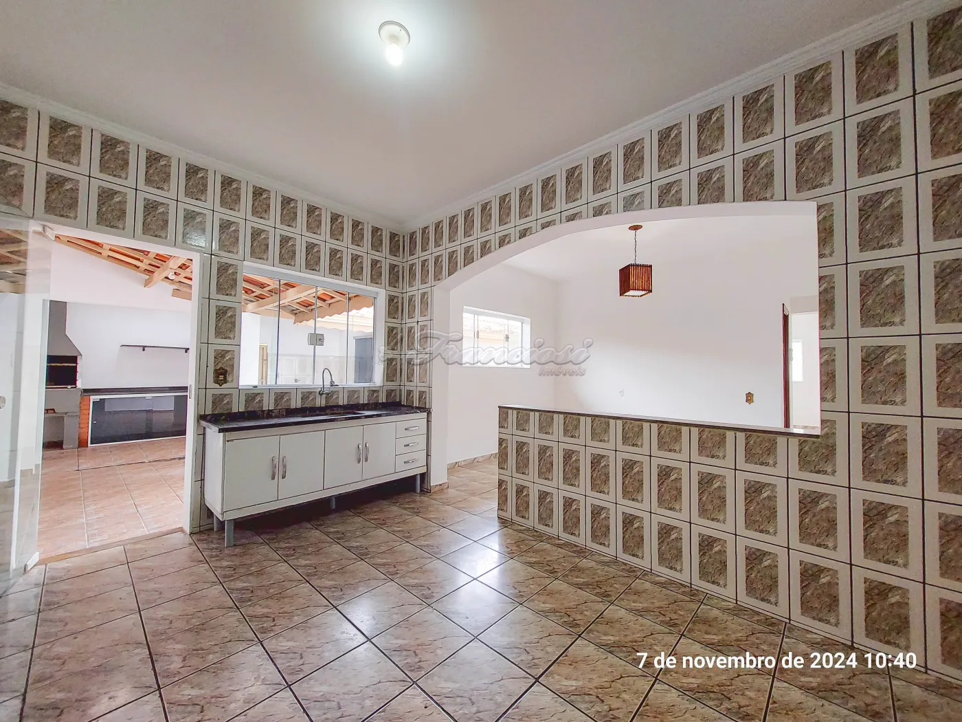 Acabamento: laje, piso frio, cozinha e banheiro azulejados até o teto.
