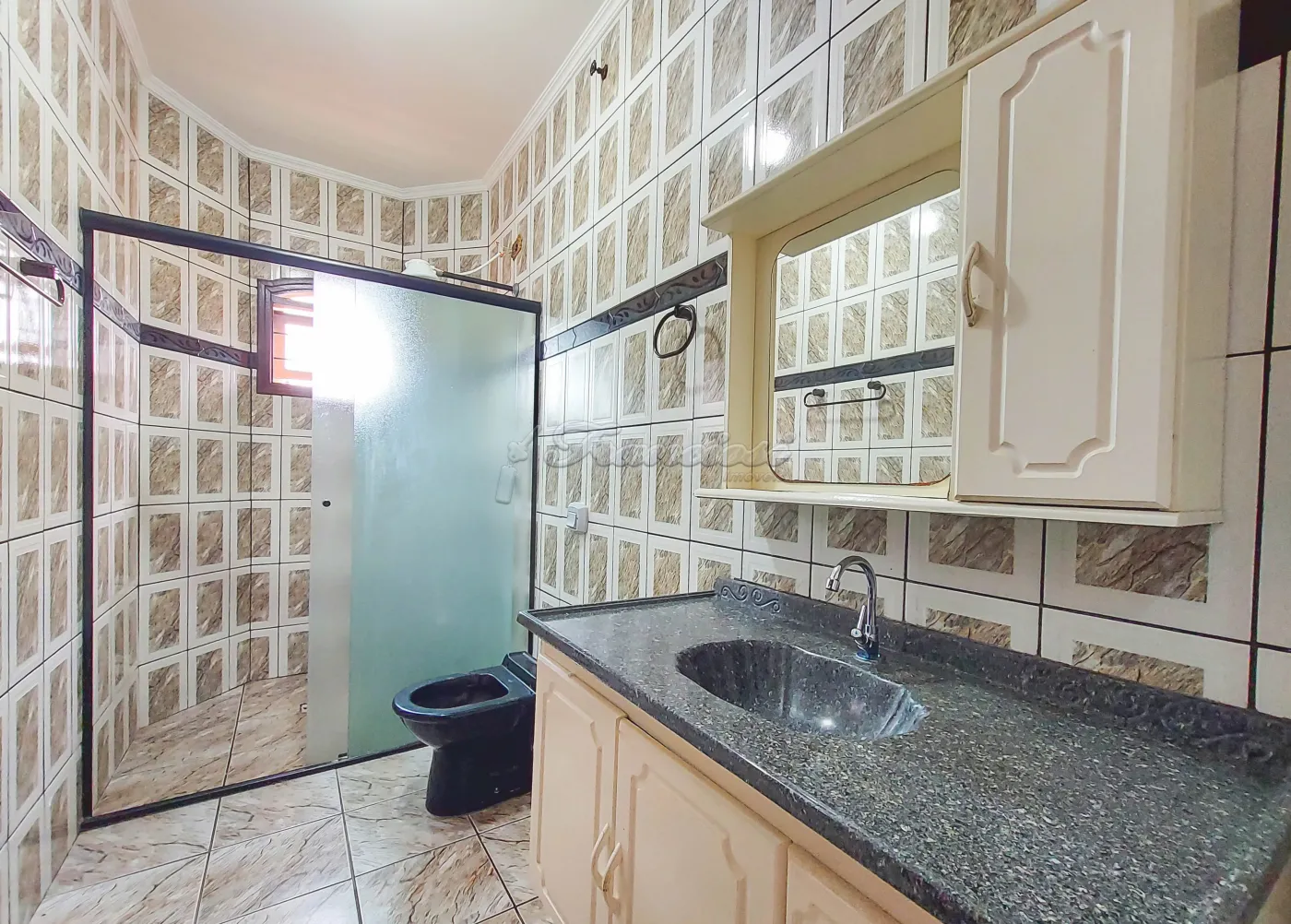 Parte superior: 3 dormitórios, 1 banheiro com box blindex e sacada em blindex.