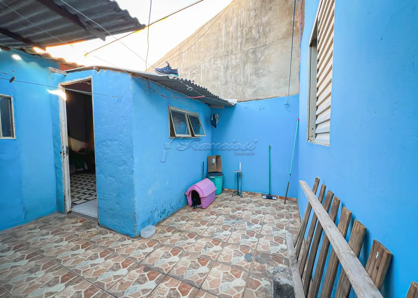 Acabamento em telha Eternit, piso frio e laje.
