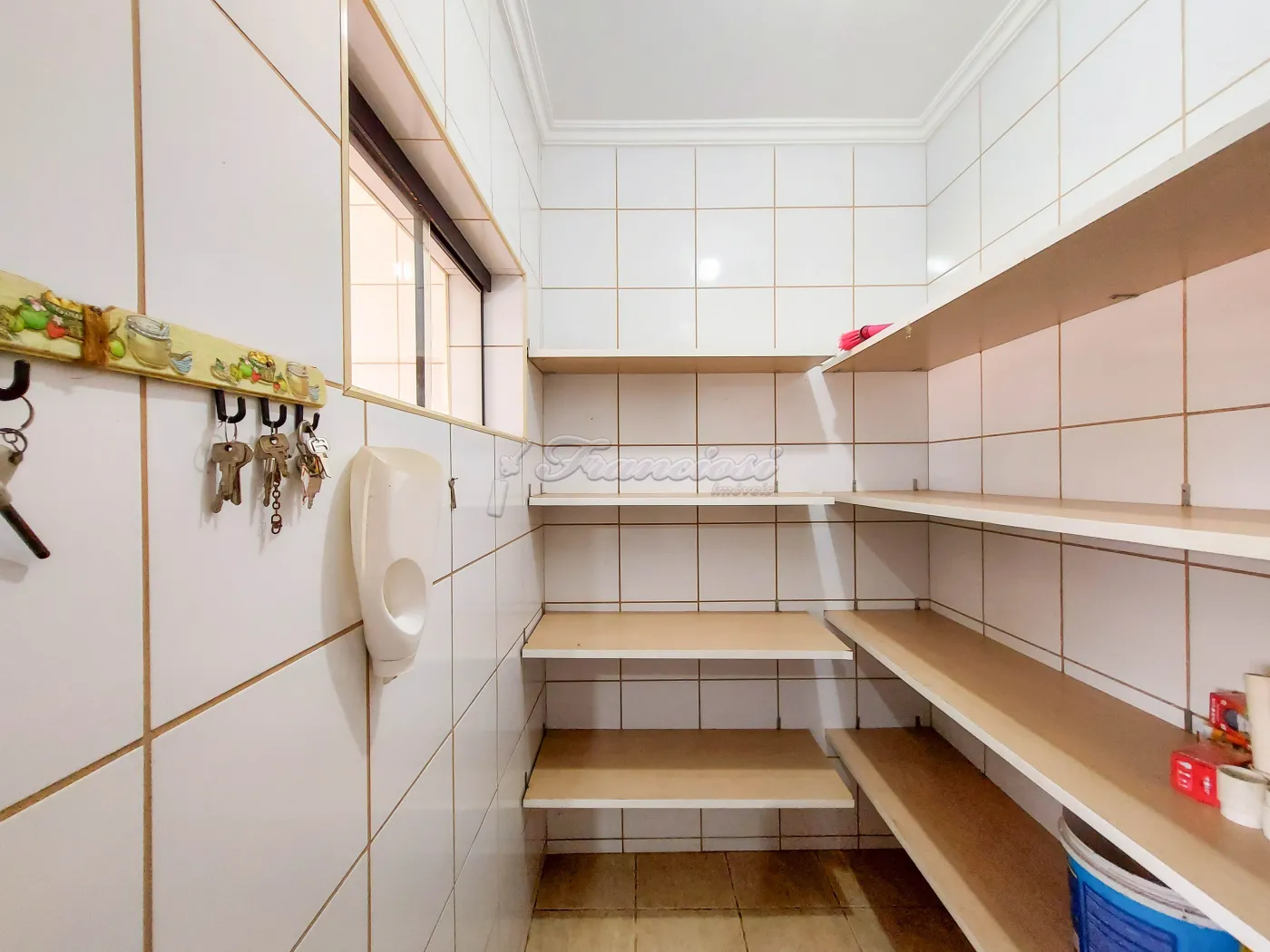 Térreo: 3 dormitórios, Sala 2 ambientes, lavabo, 1 banheiro social com box blindex, cozinha modulada com fogão embutido e depurador, lavanderia, área de lazer com churrasqueira, 1 banheiro externo, piscina, jardim e garagem para 3 carros.