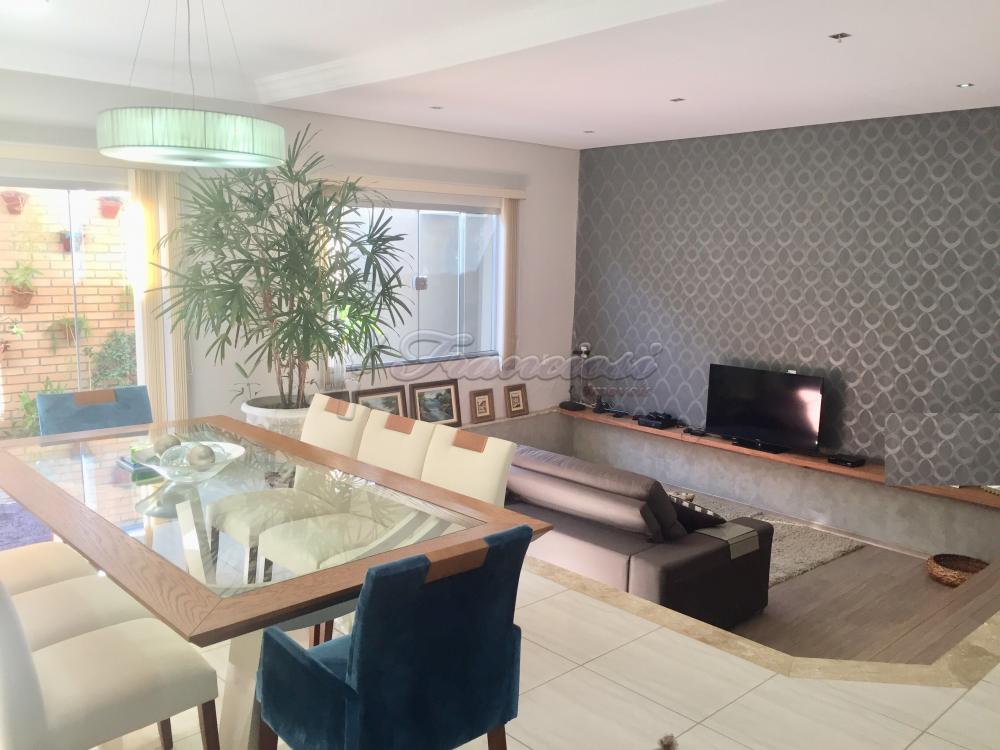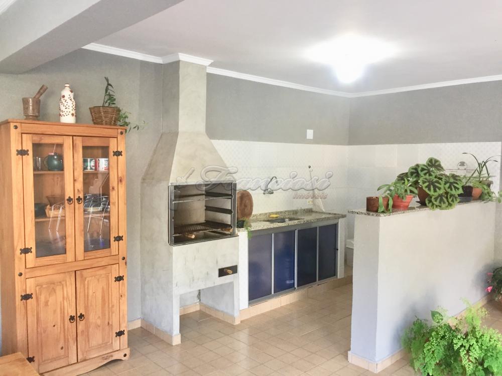 Casa com 4 Dormitórios sendo 3 suítes, sala de tv rebaixada, sala de jantar, sala de estar, lavabo, cozinha, área gourmet, copa integrada, dispensa, 1 banheiro, sala com lareira, área de recreação com piscina, churrasqueira, lavanderia, 1 banheiro, jardim, garagem para 3 carros.