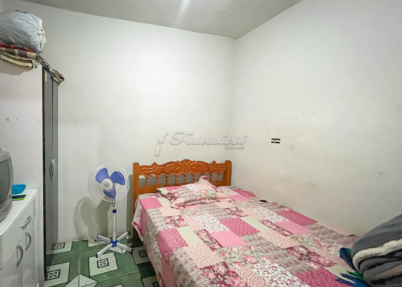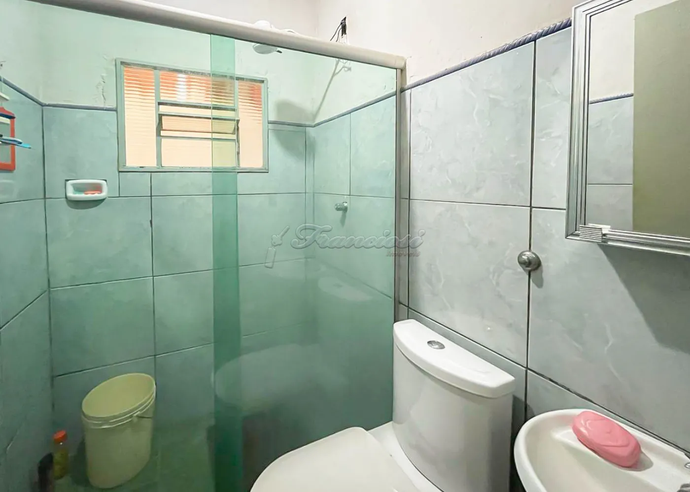 Casa com 2 dormitórios, sala, cozinha, 1 banheiro social com box acrílico, área de serviço, edícula com 1 cômodo e banheiro, quintal com piso, churrasqueira e garagem para 2 carros com portão eletrônico. Acabamento: laje, piso frio e azulejo.