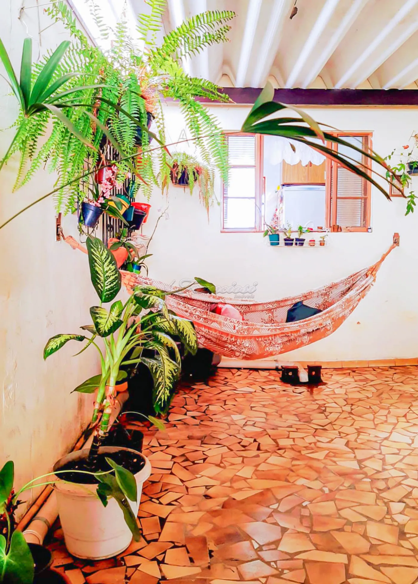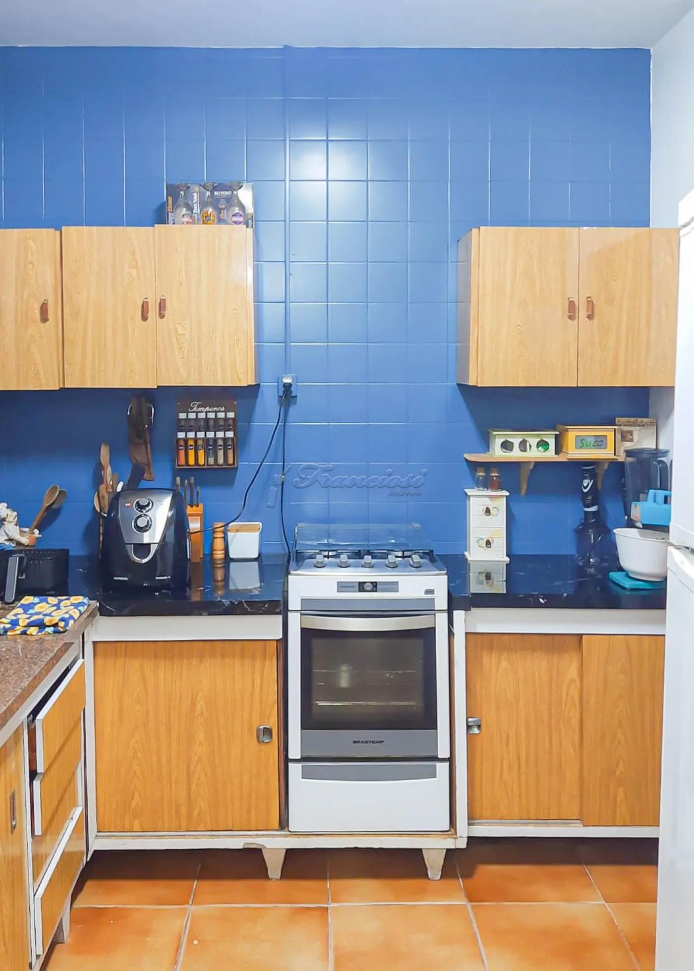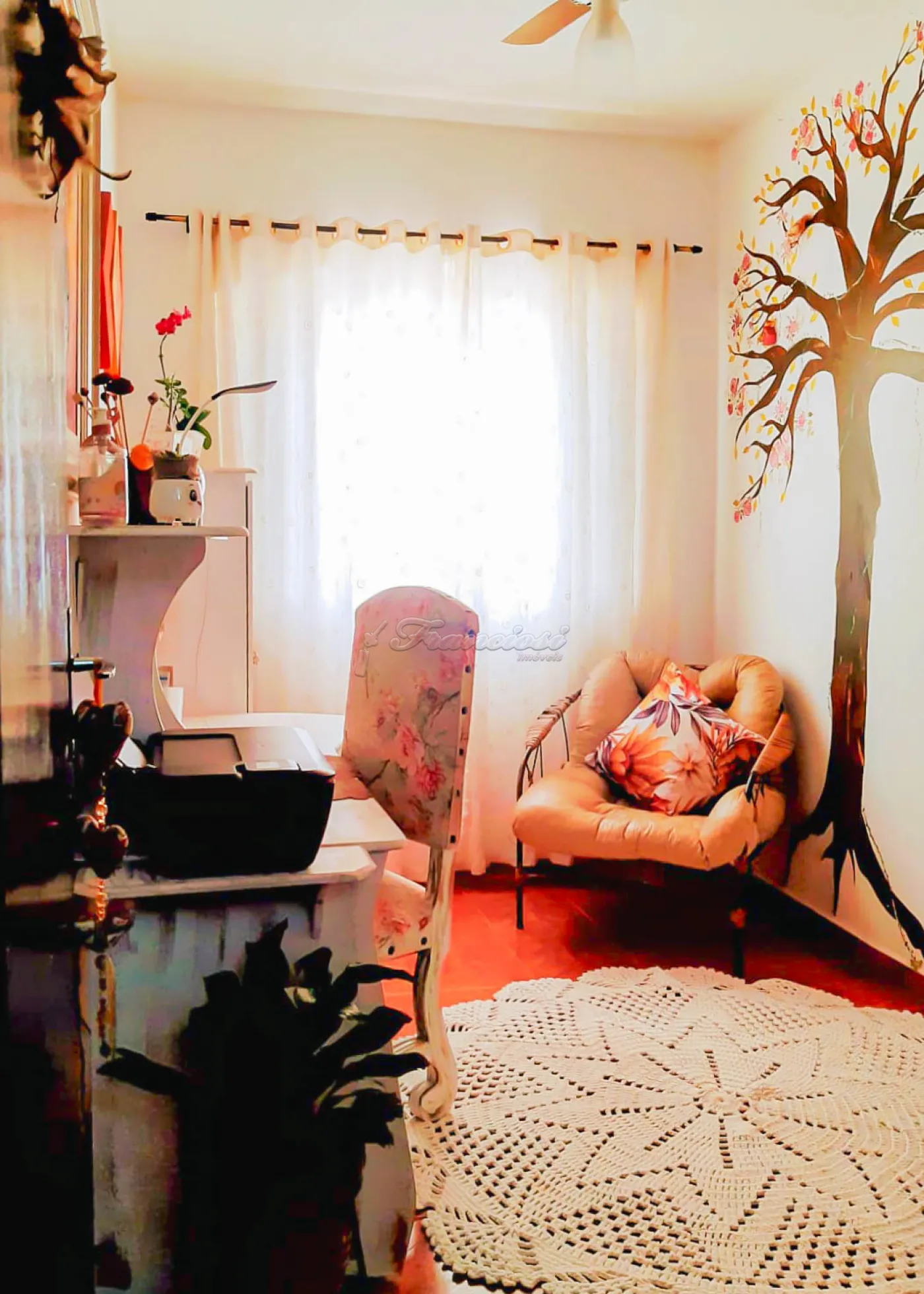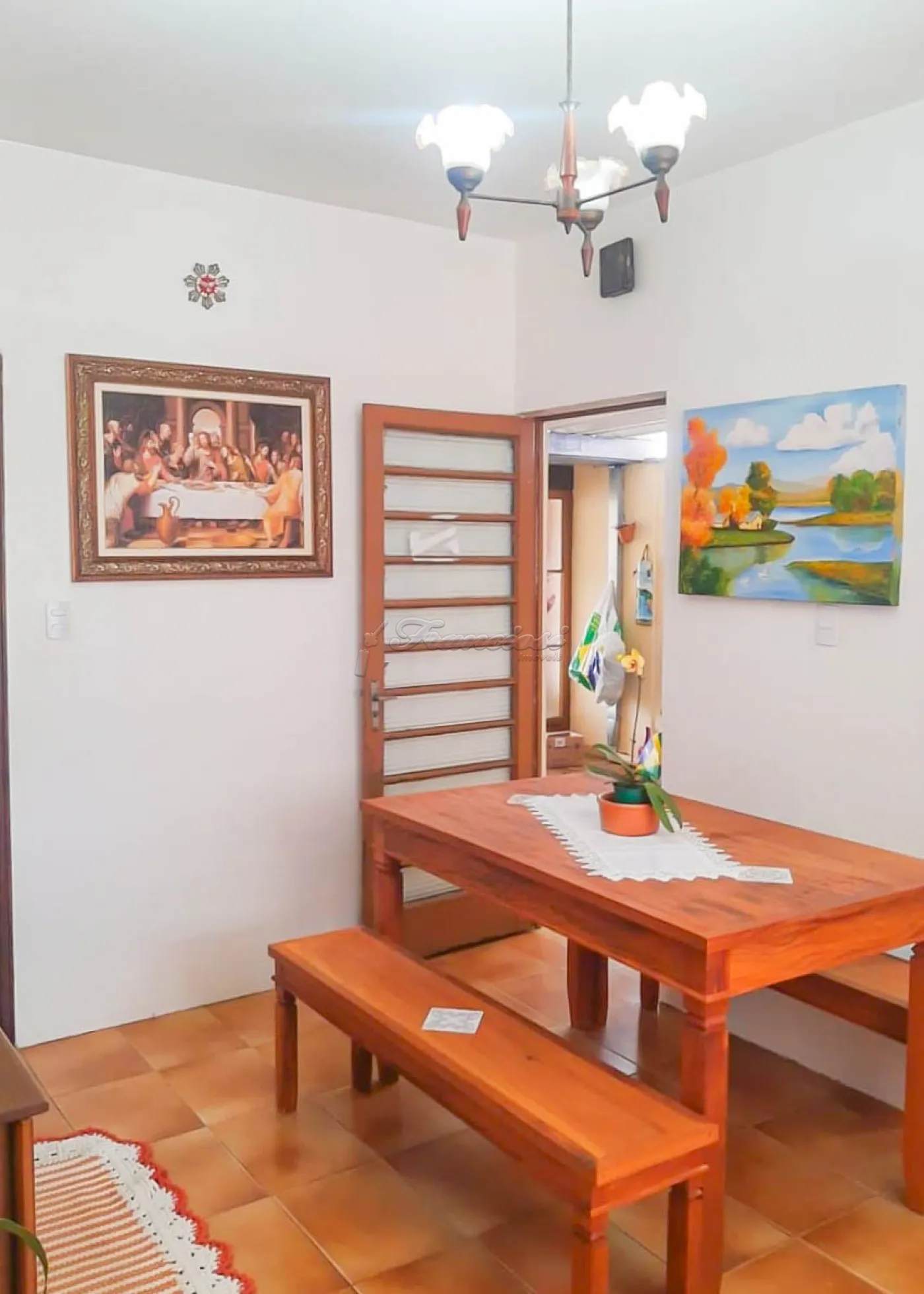 Dispõe de 03 dormitórios, sala de estar, cozinha, banheiro social, lavanderia, quintal e 01 suíte externa. Conta com garagem para 02 veículos. O acabamento inclui laje, piso frio e azulejos.