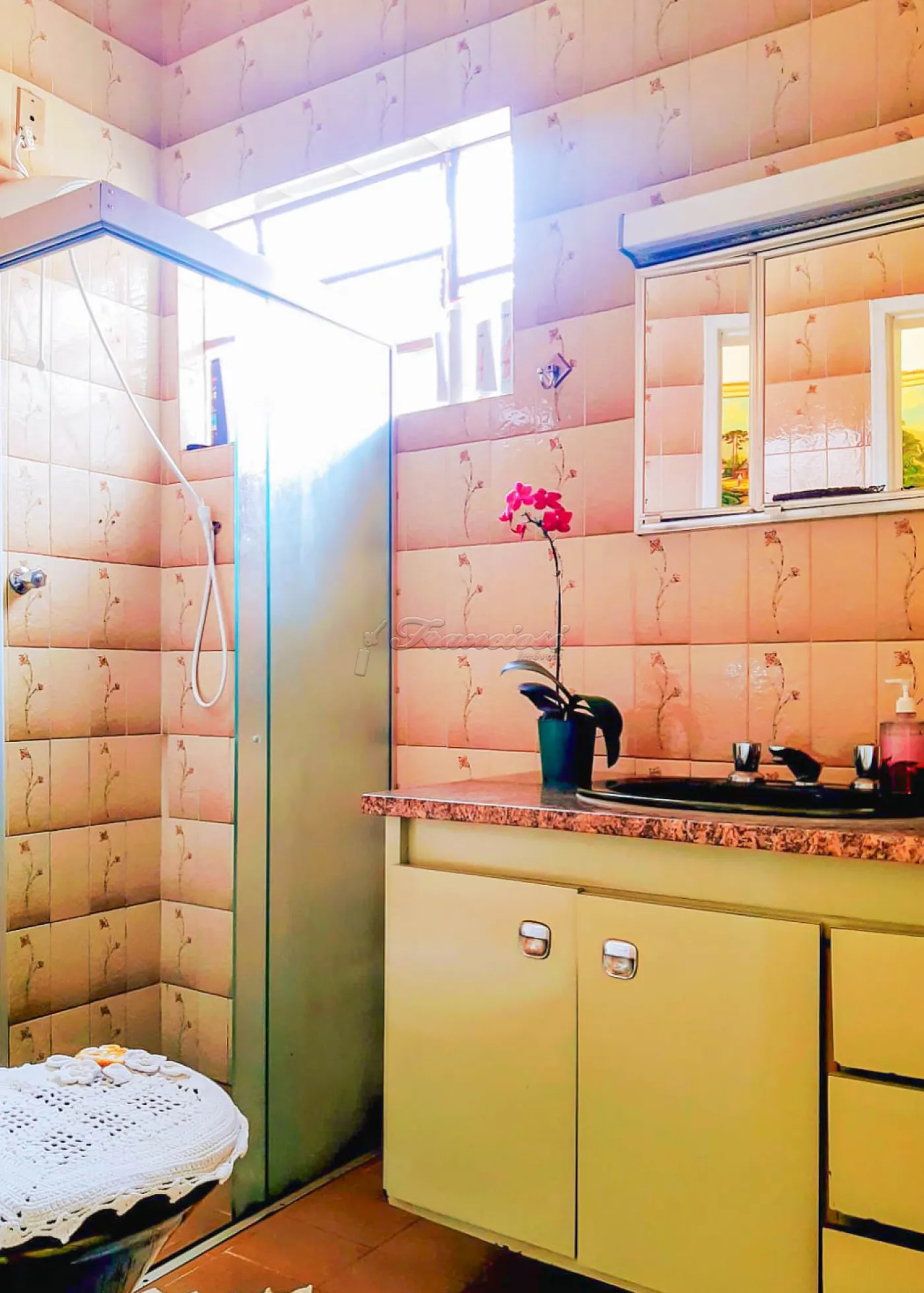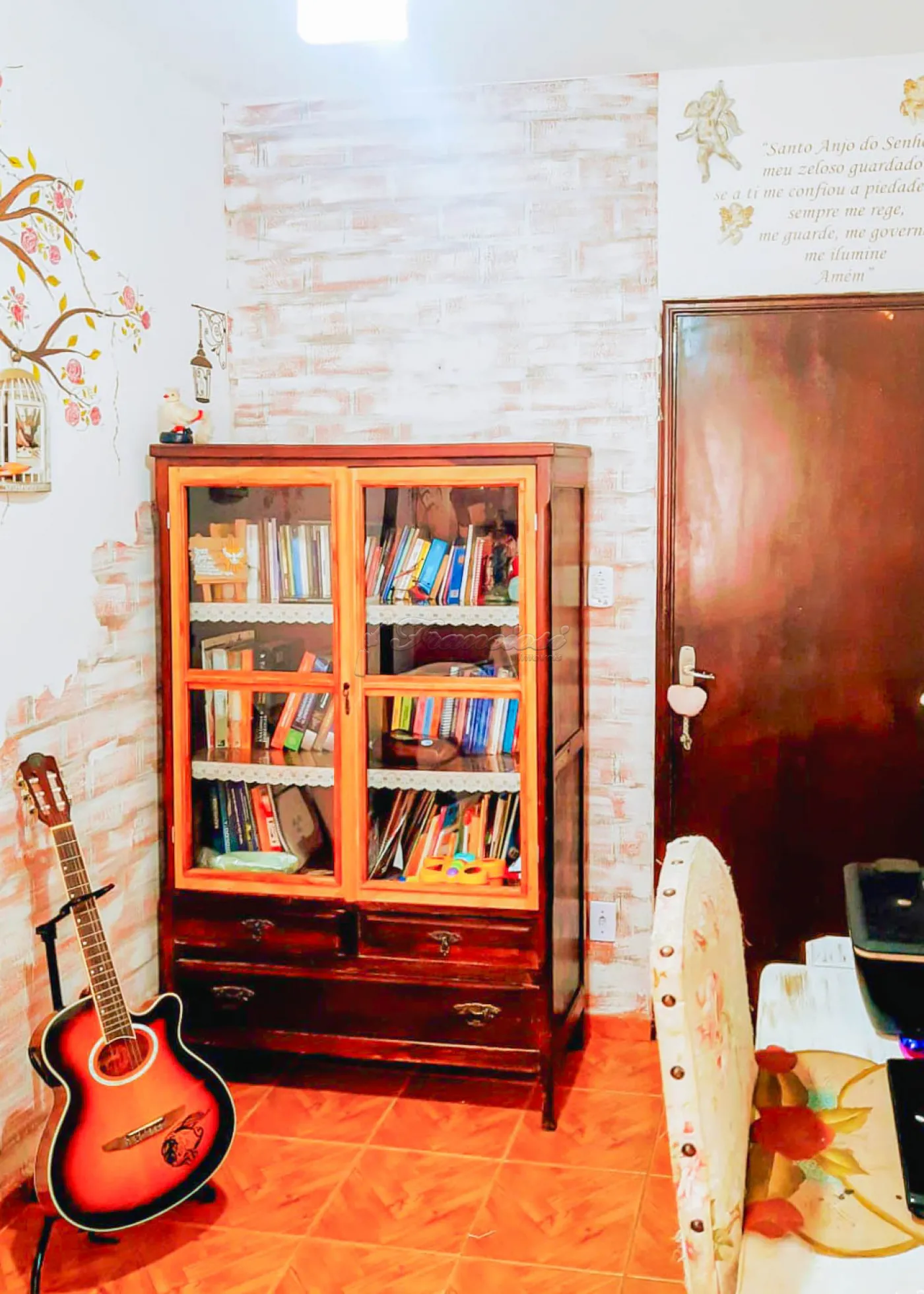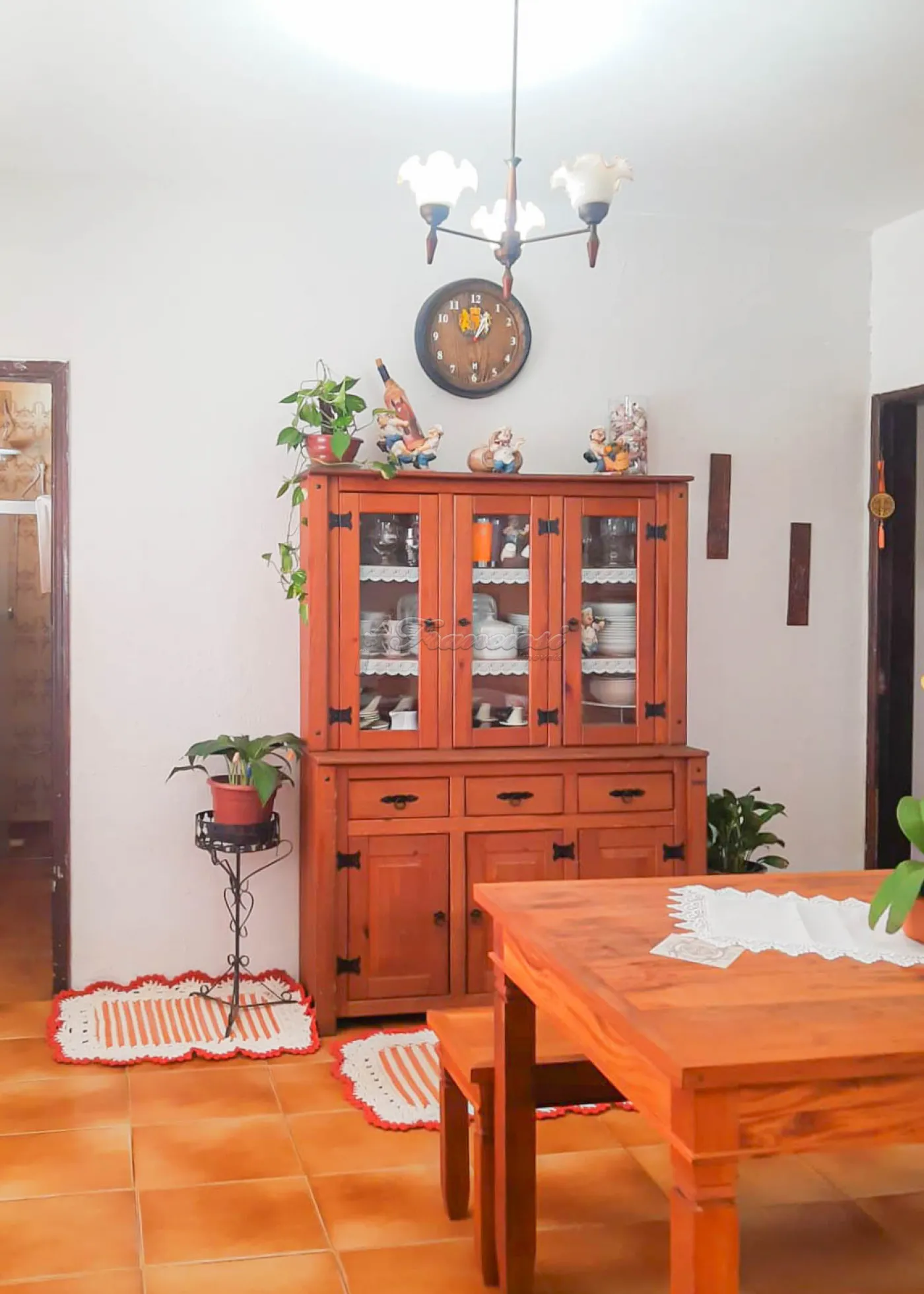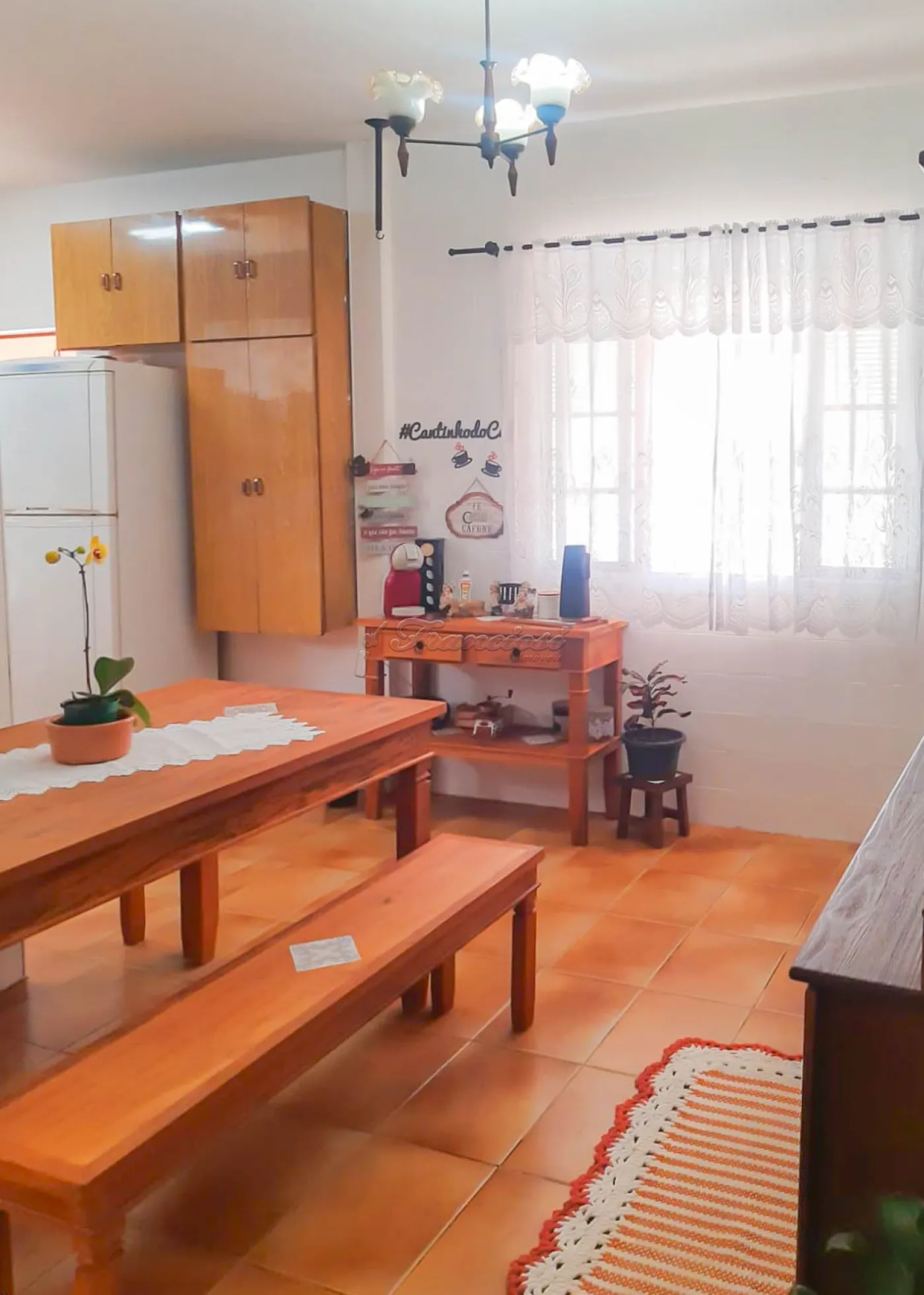 Dispõe de 03 dormitórios, sala de estar, cozinha, banheiro social, lavanderia, quintal e 01 suíte externa. Conta com garagem para 02 veículos. O acabamento inclui laje, piso frio e azulejos.