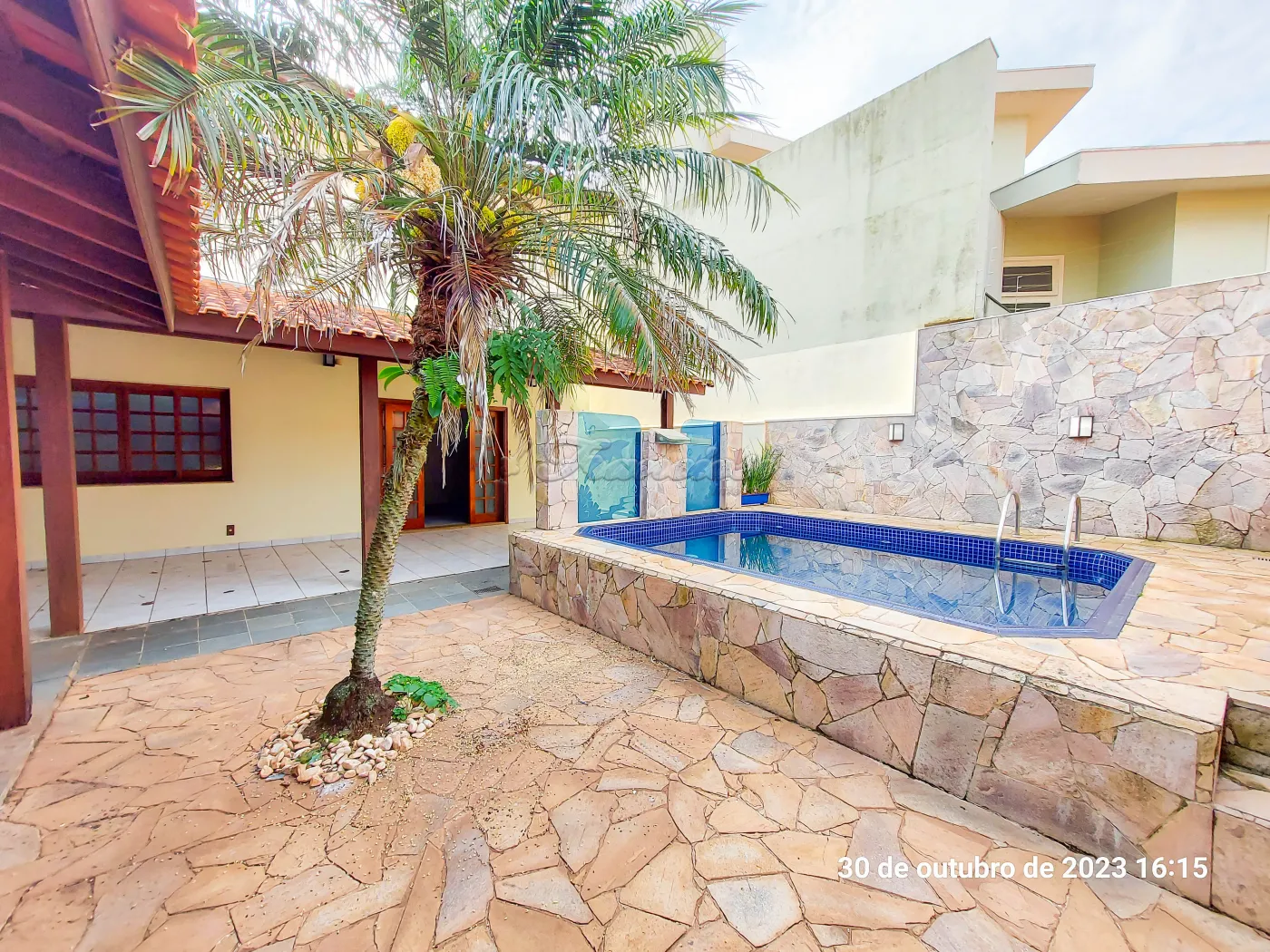 Térreo: sala de estar, sala de jantar, lavabo, cozinha com armários, quintal, edícula com 2 cômodos e 1 banheiro, despensa, lavanderia, área gourmet com churrasqueira, piscina e garagem para 3 carros.