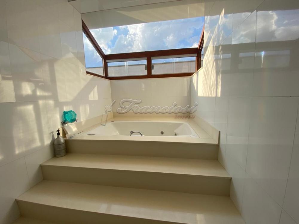Casa com 3 dormitórios, sendo 3 suítes com armários, 1 suíte com hidromassagem, hall, 1 lavabo, sala de estar, sala de jantar, sala de TV, cozinha modulada,despensa, quarto de despejo, lavanderia ampla, espaço gourmet, com churrasqueira e forno a lenha, 1 suíte externa, varanda, piscina ampla, sauna úmida e garagem para 6 carros.