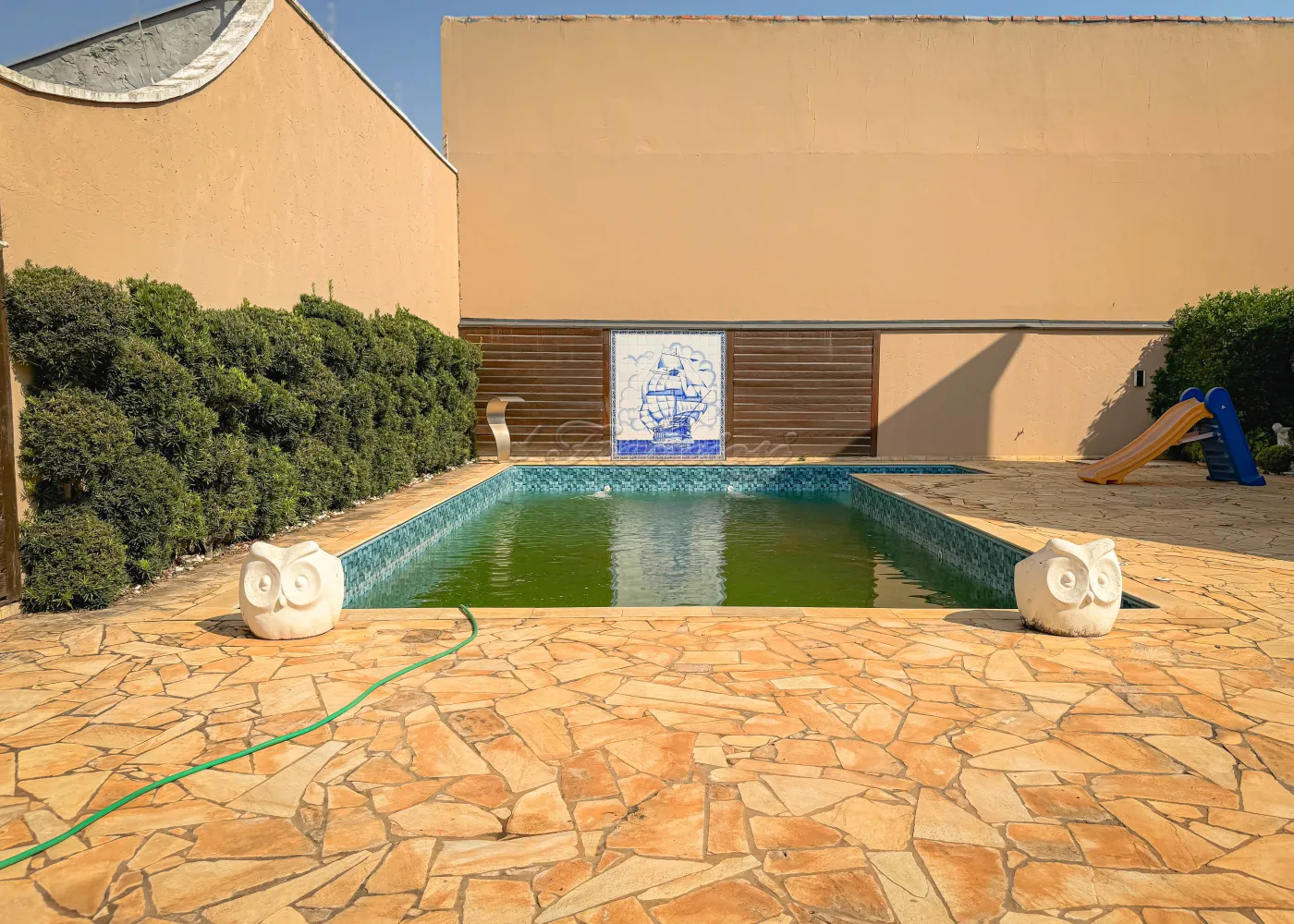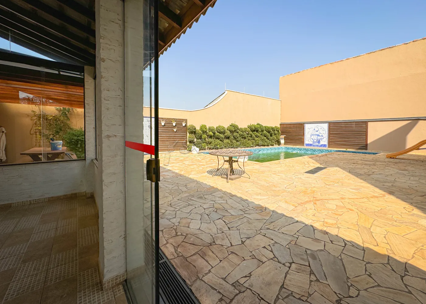 Sobrado localizado na Vila Nastri II, com 04 dormitórios, sendo 01 suíte e banheiro social no piso superior. No térreo, o imóvel conta com copa, cozinha com armários planejados, sala de lareira, sala de estar, área gourmet fechada, piscina, pergolado e garagem para 04 veículos.