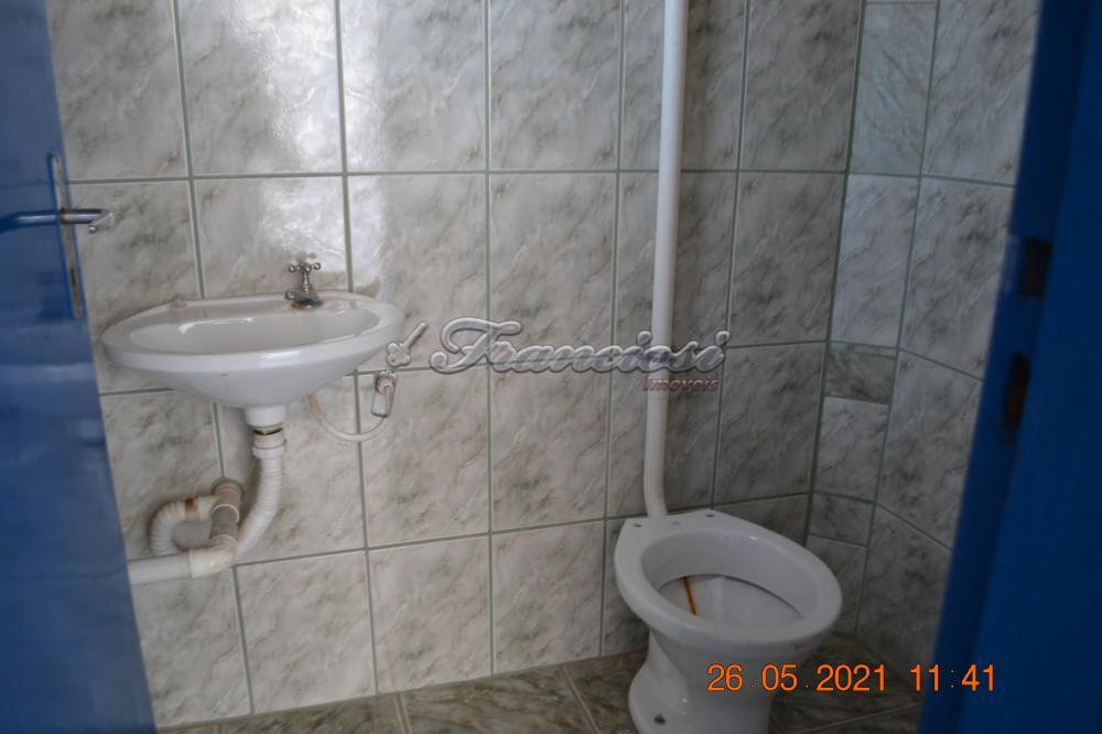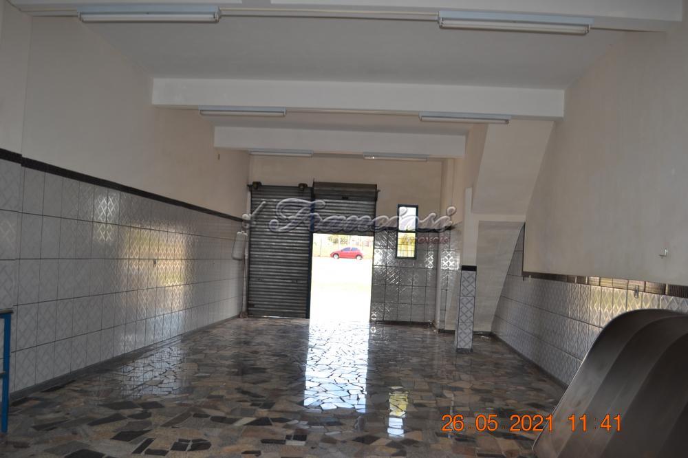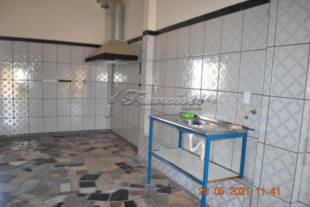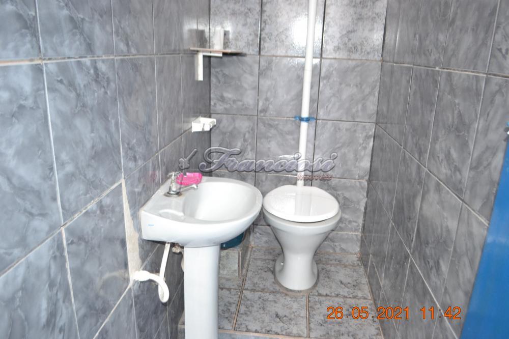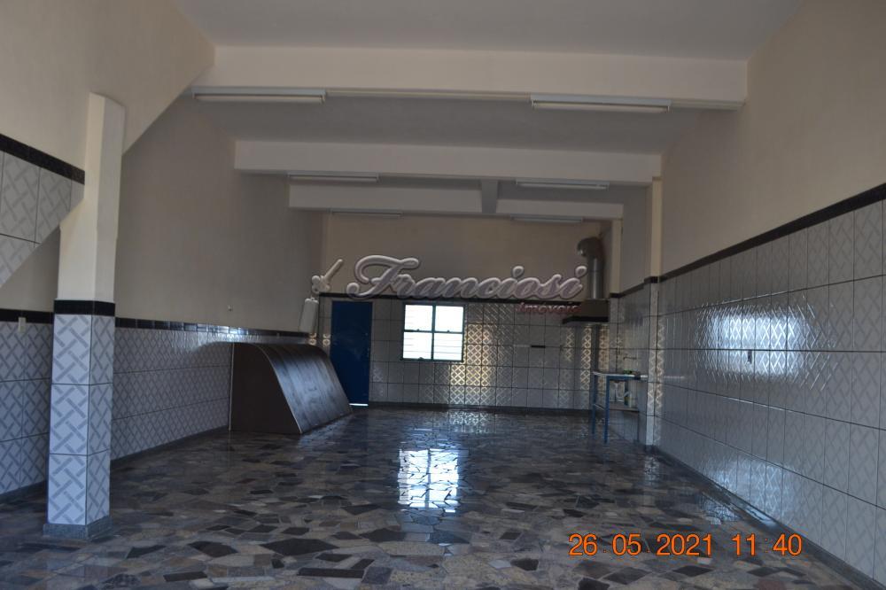 Salão comercial medindo 80 m² com coifa, 2 banheiros e área de serviço.