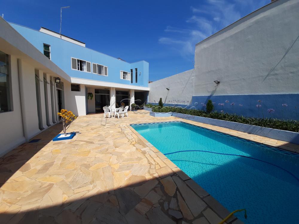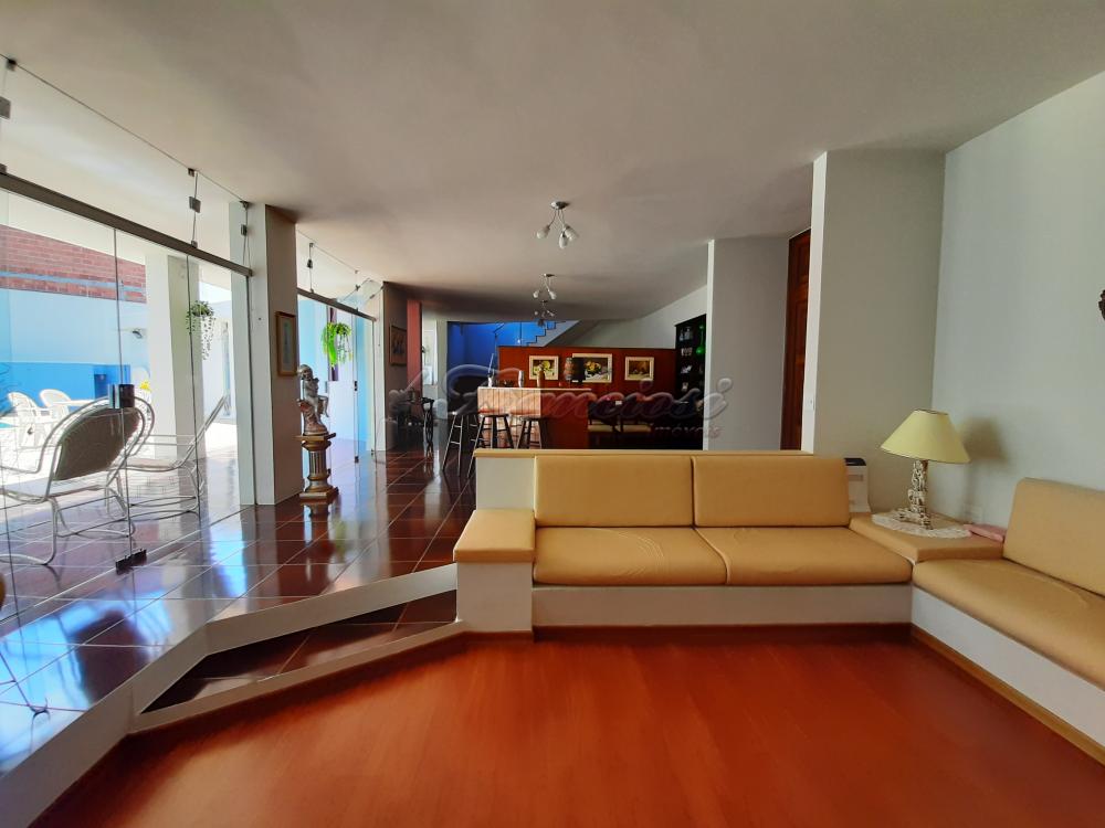 Parte inferior: sala 3 ambientes com lareira, lavabo, copa, cozinha, banheiro, dependência para empregada, piscina, quintal, lavanderia e garagem.