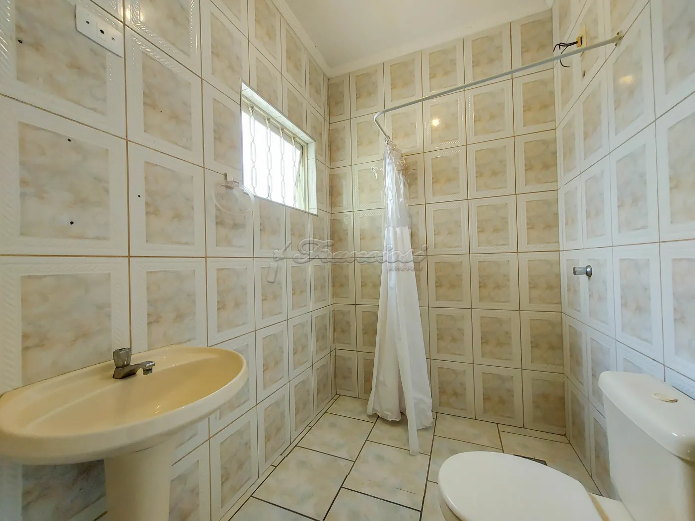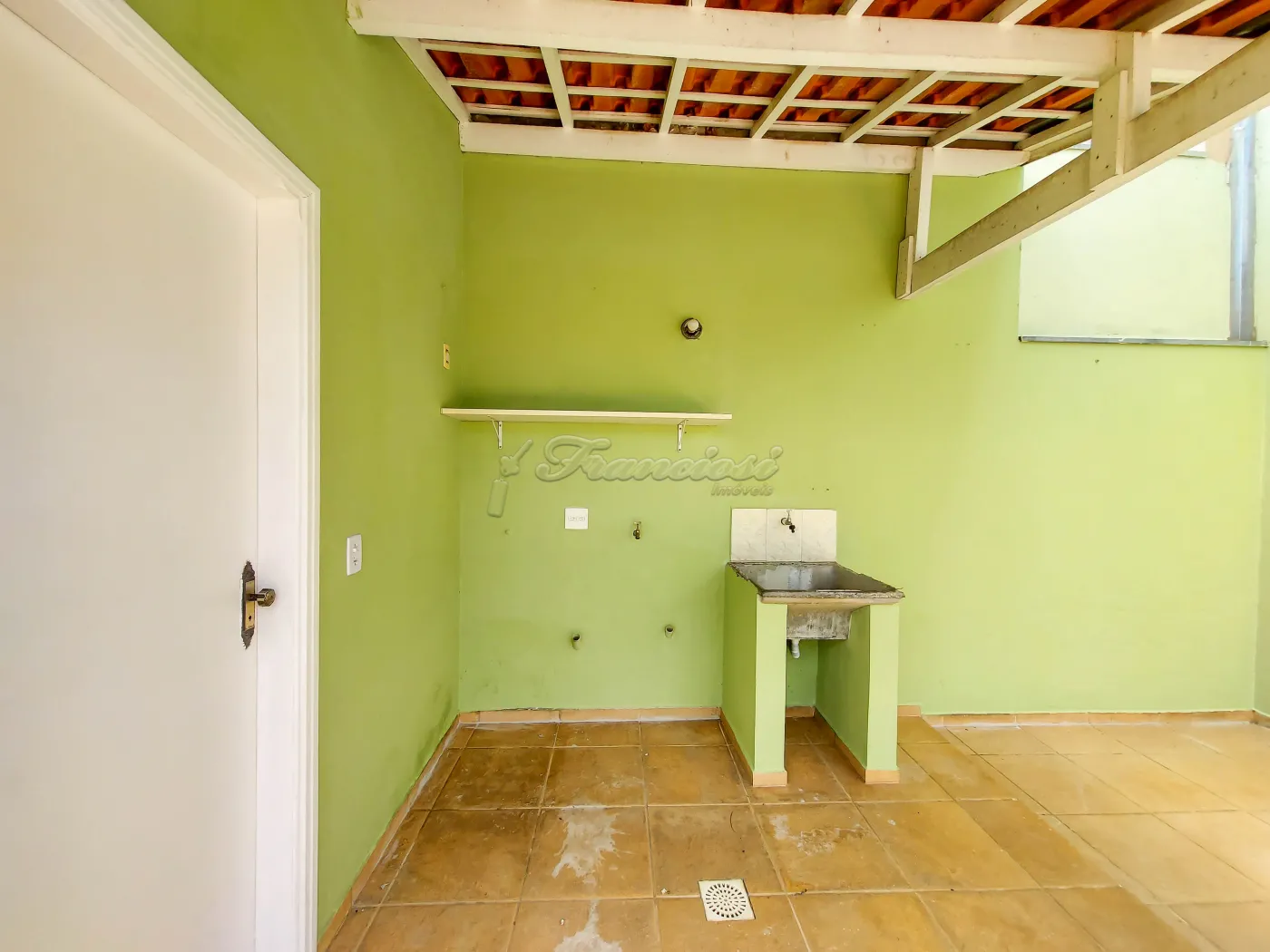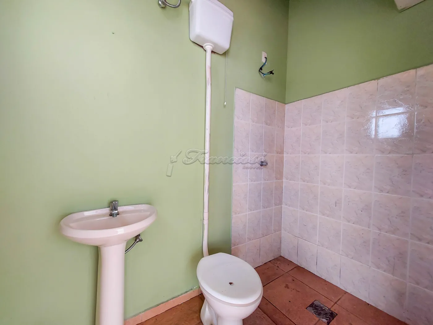 Acabamento: laje, piso frio e azulejo até o teto.