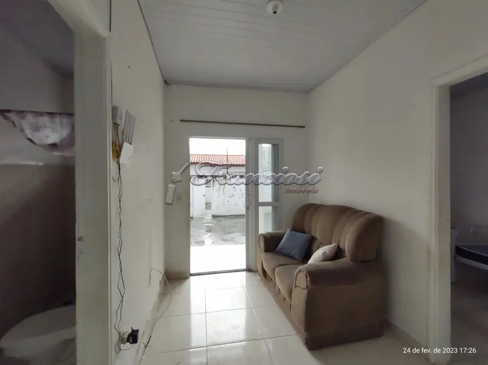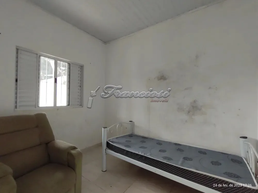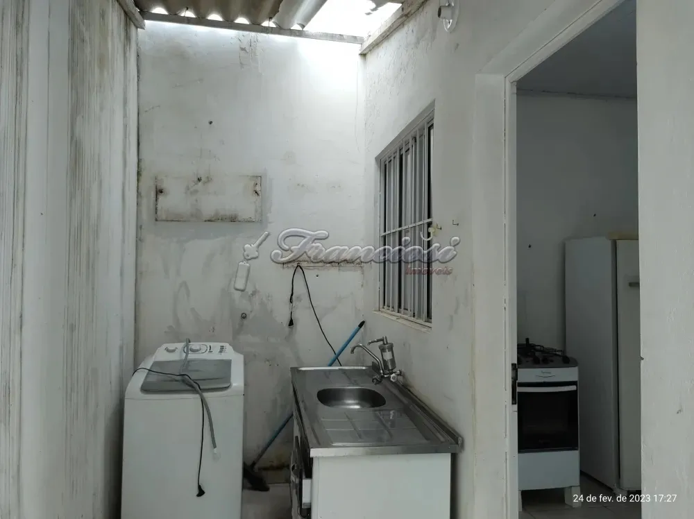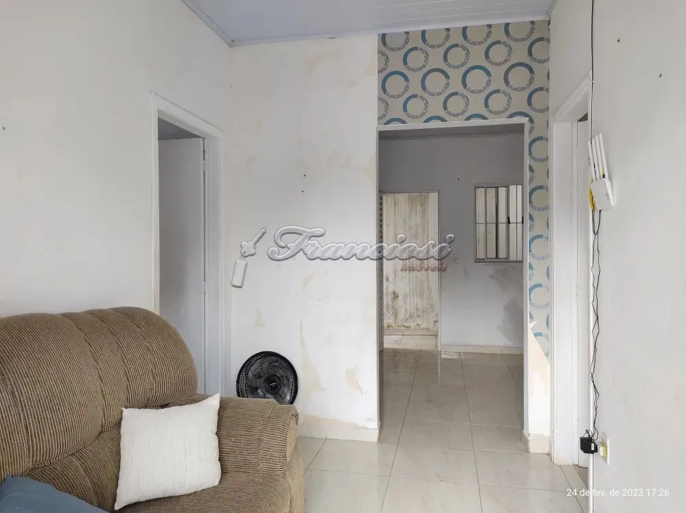 Casa de fundos: 2 dormitórios, sala, cozinha, 1 banheiro social, área de serviço coberta. Sem garagem.