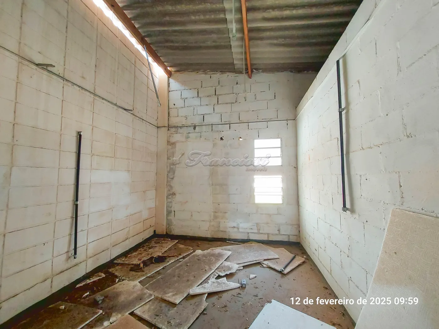 - Galpão com 6 Salas, hidrante, 3 banheiros com chuveiro, medindo em torno de 90m².