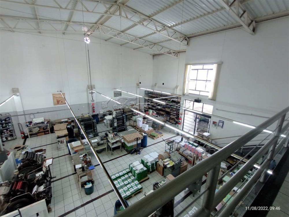 Galpão medindo aproximadamente 412,00 m² com sala, recepção, 2 salas, copa, banheiro, mezanino com escritório e área de luz.