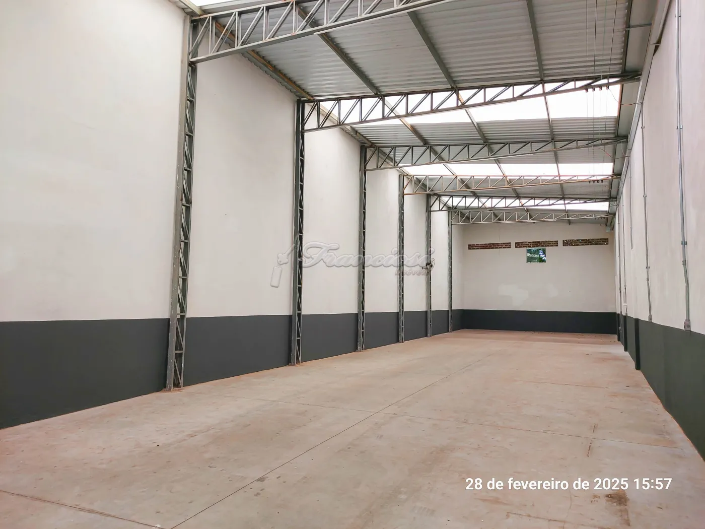 Acabamento: estrutura metálica e piso cimentado.