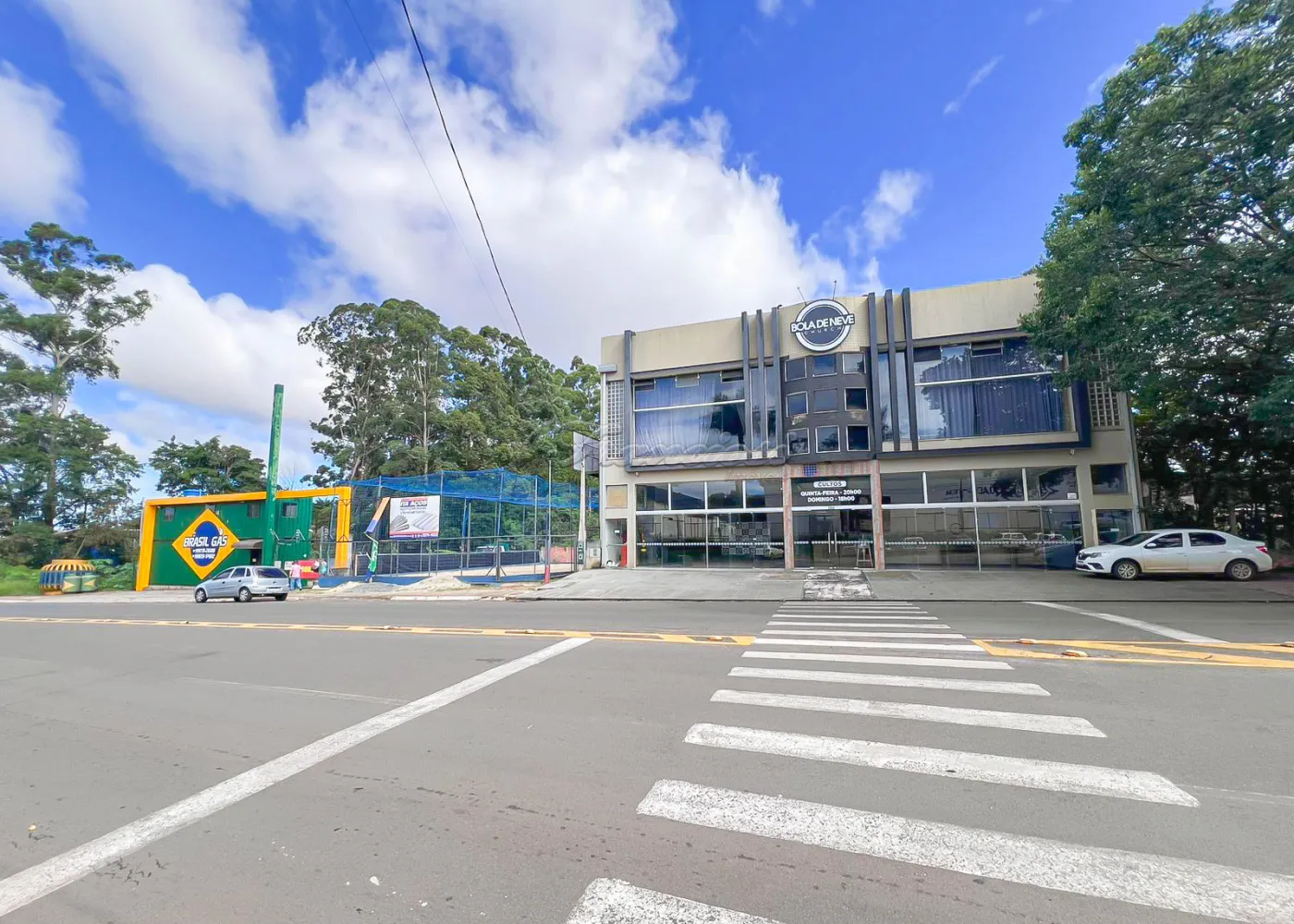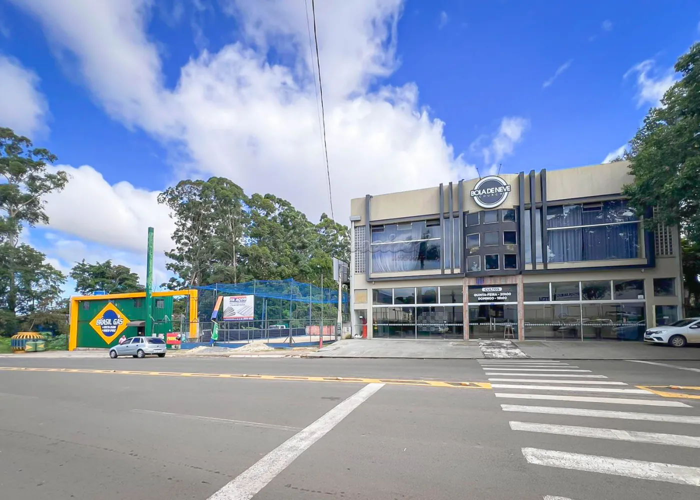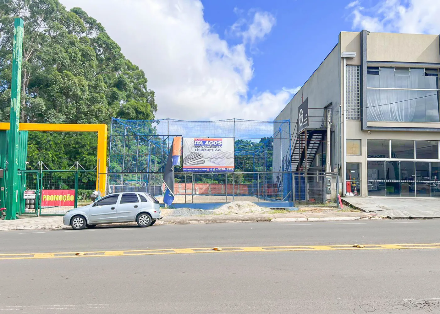 Barracão e mezaninos amplos e extensos, espaço aberto e banheiros. Localizado em avenida comercial e uma das principais vias de acesso ao centro da cidade. Dispõe de bela e imponente fechada, além de espaço com campo de areia/terra nua; recuo para estacionamento e salas de apoio.