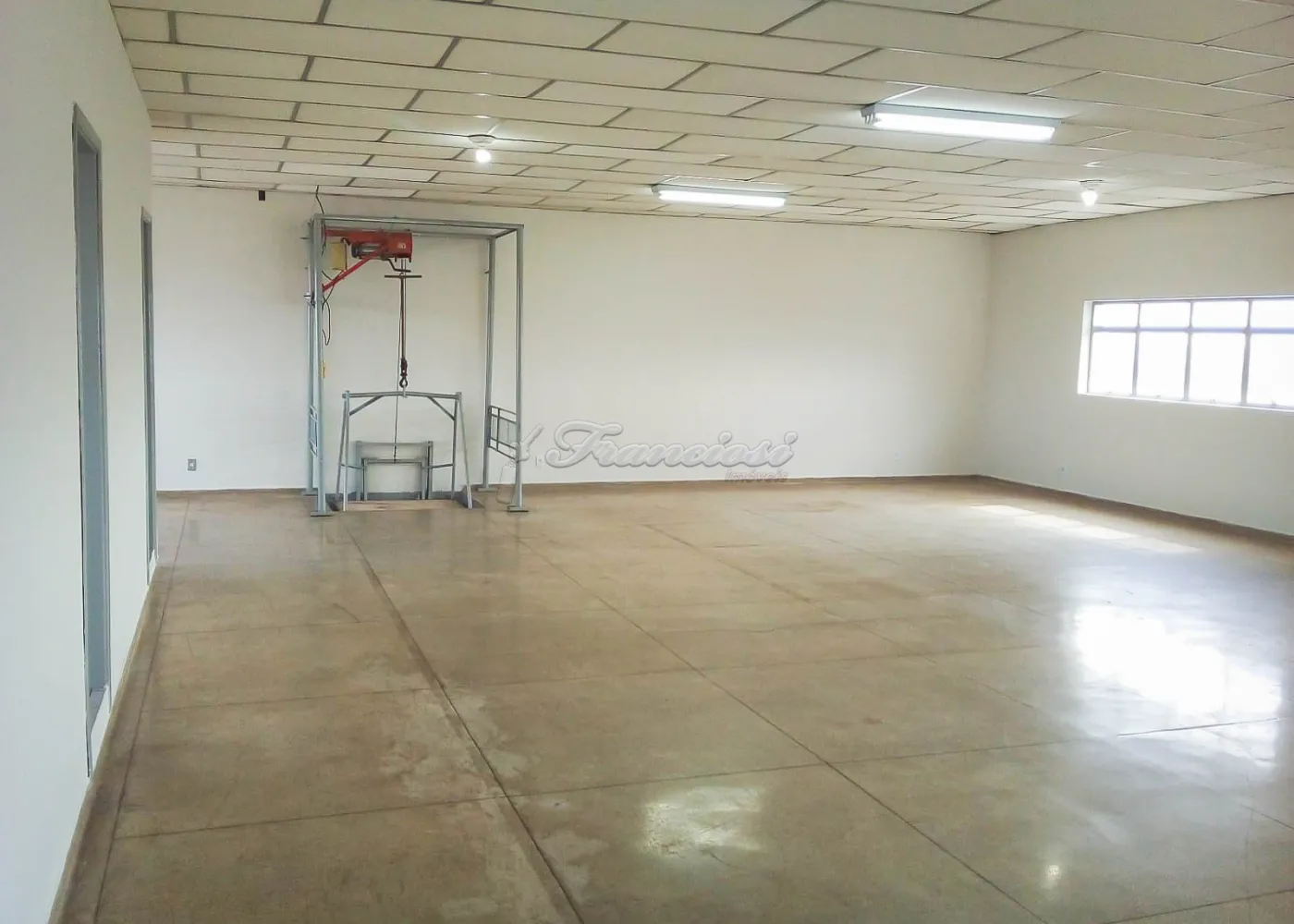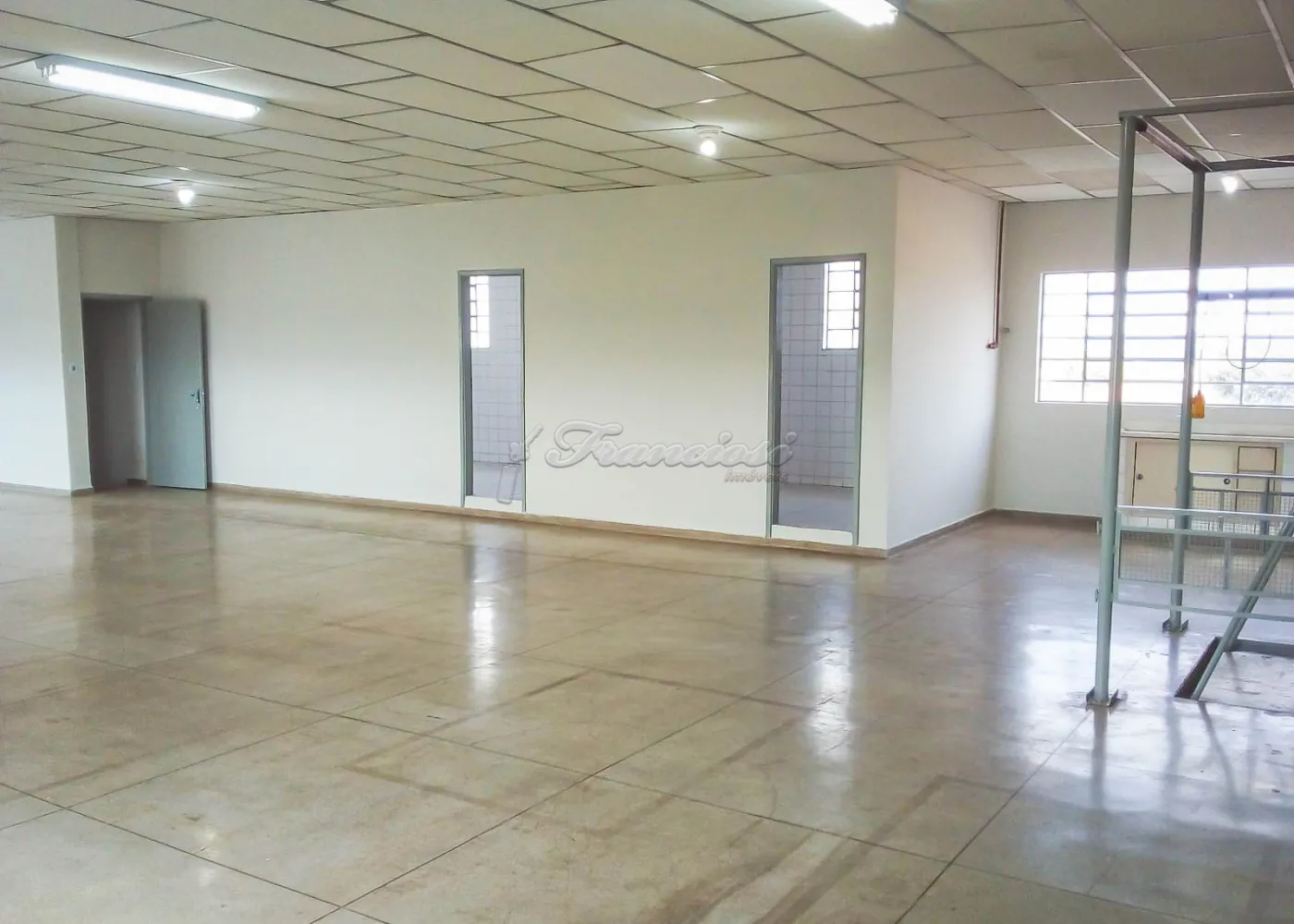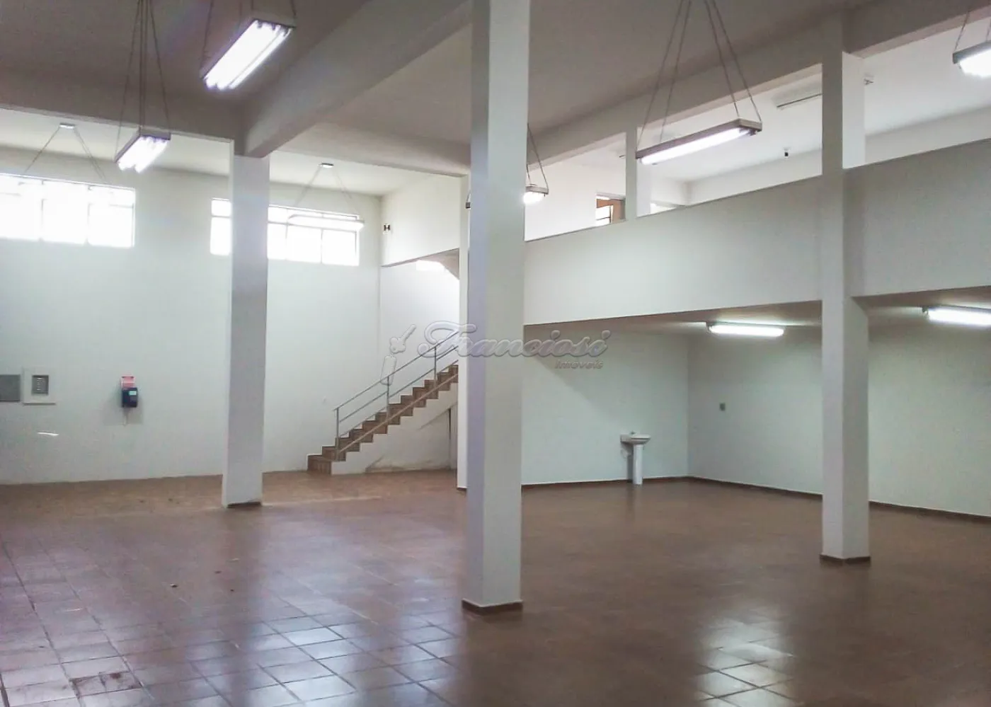 Barracão com 3 pavimentos (térreo, mezanino e 2º andar).