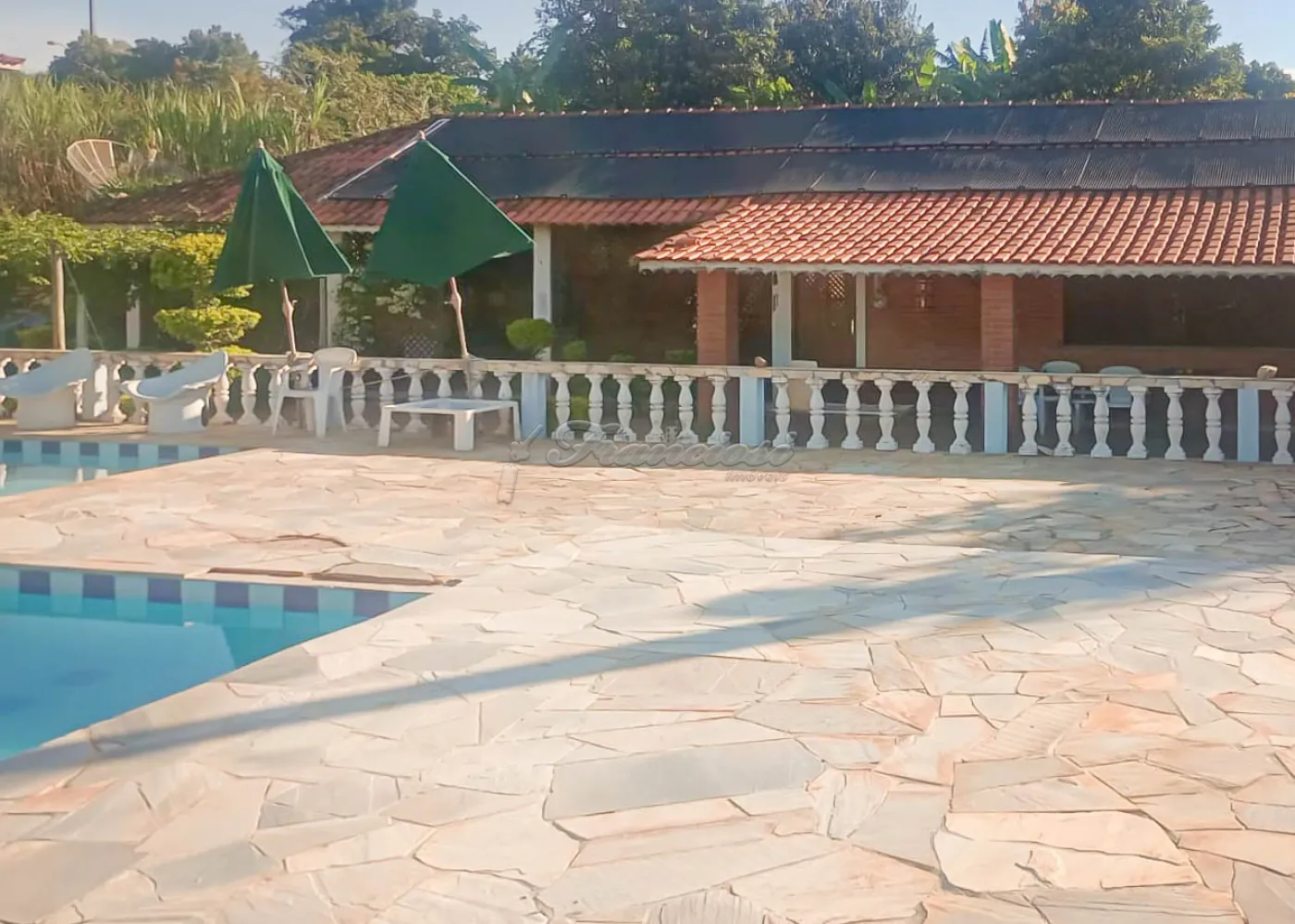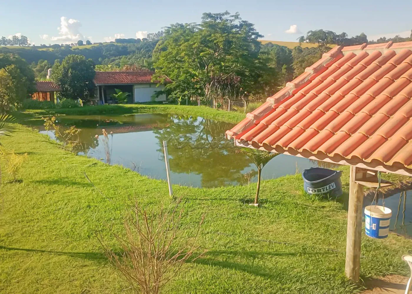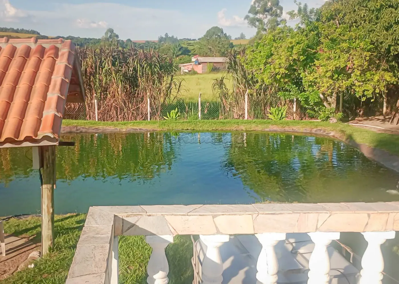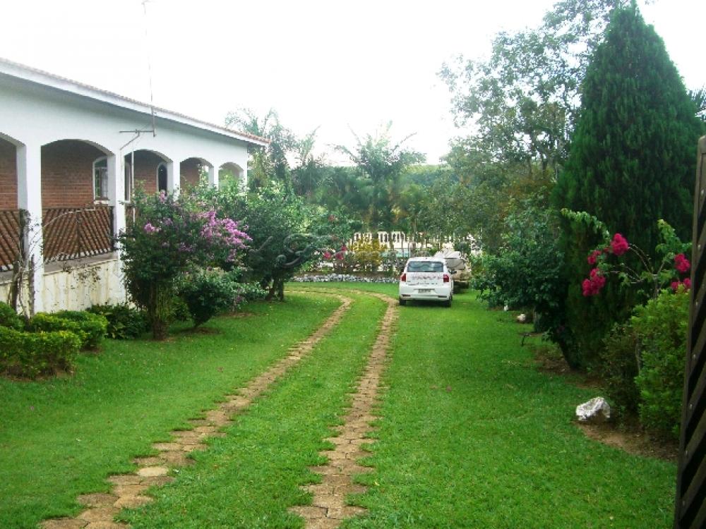 Área total de 5.000 m² e área construída de 800 m². Casa sede com 4 Dormitórios sendo 2 suítes, sala de estar, sala de tv, copa, cozinha, escritório, varanda, piscina, cozinha mineira, 4 banheiros e garagem para 4 carros. Acabamento: teto laje e piso frio. Pomar e água da sabesp.