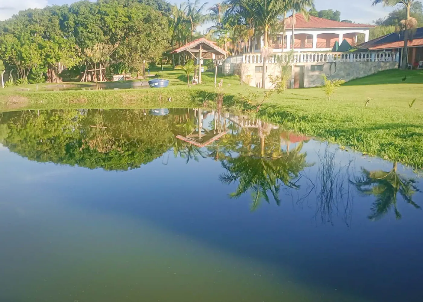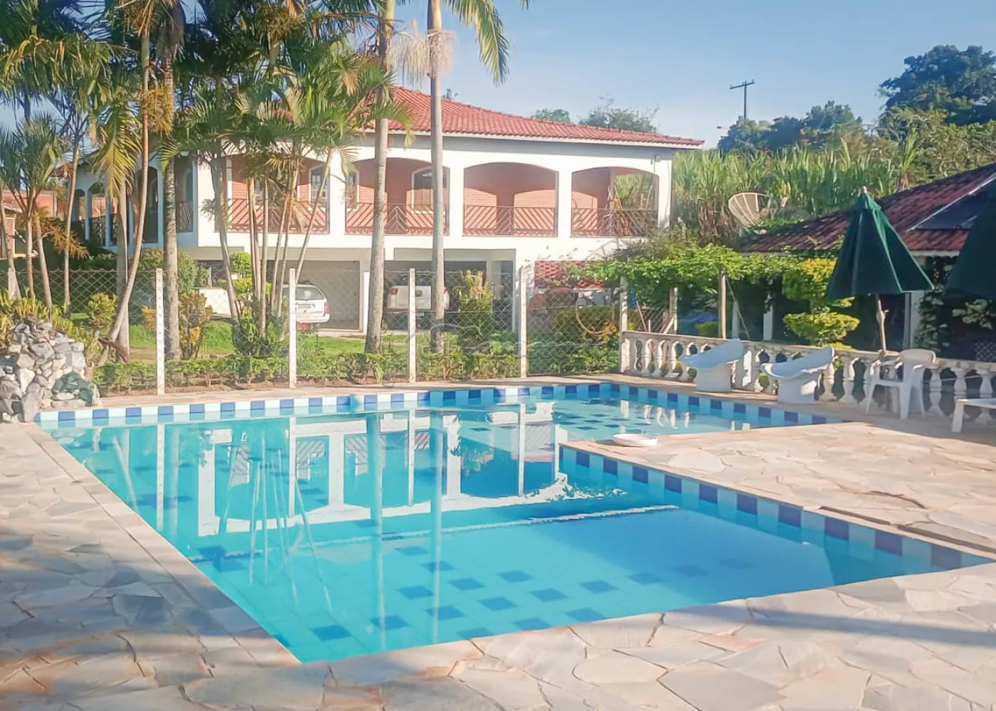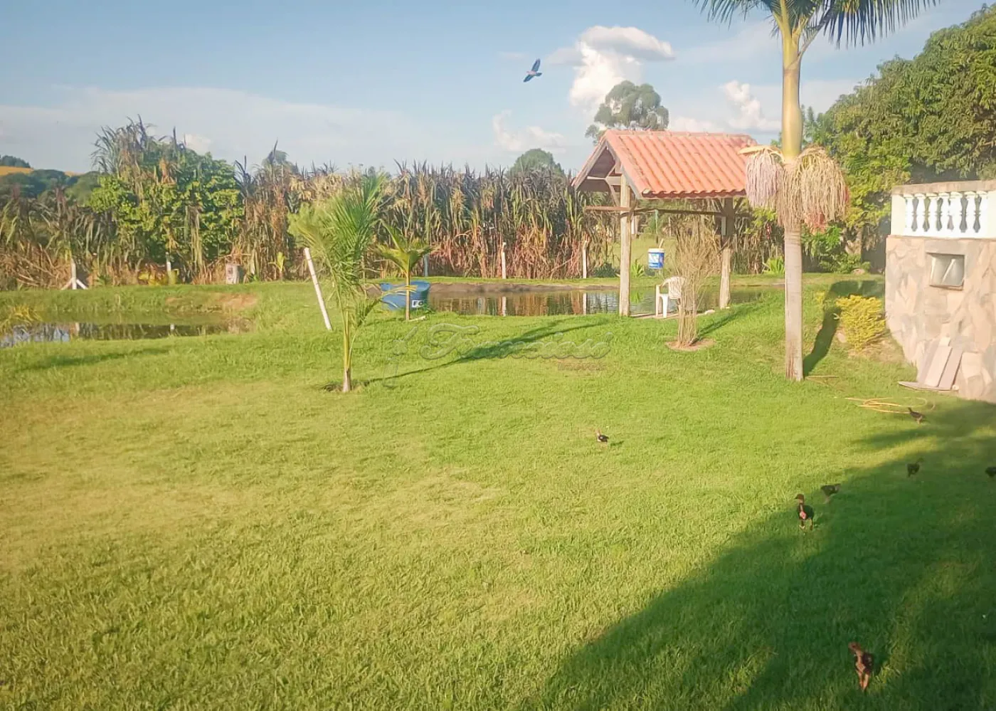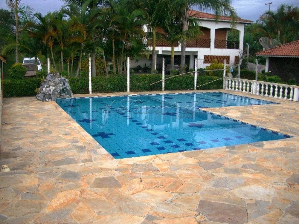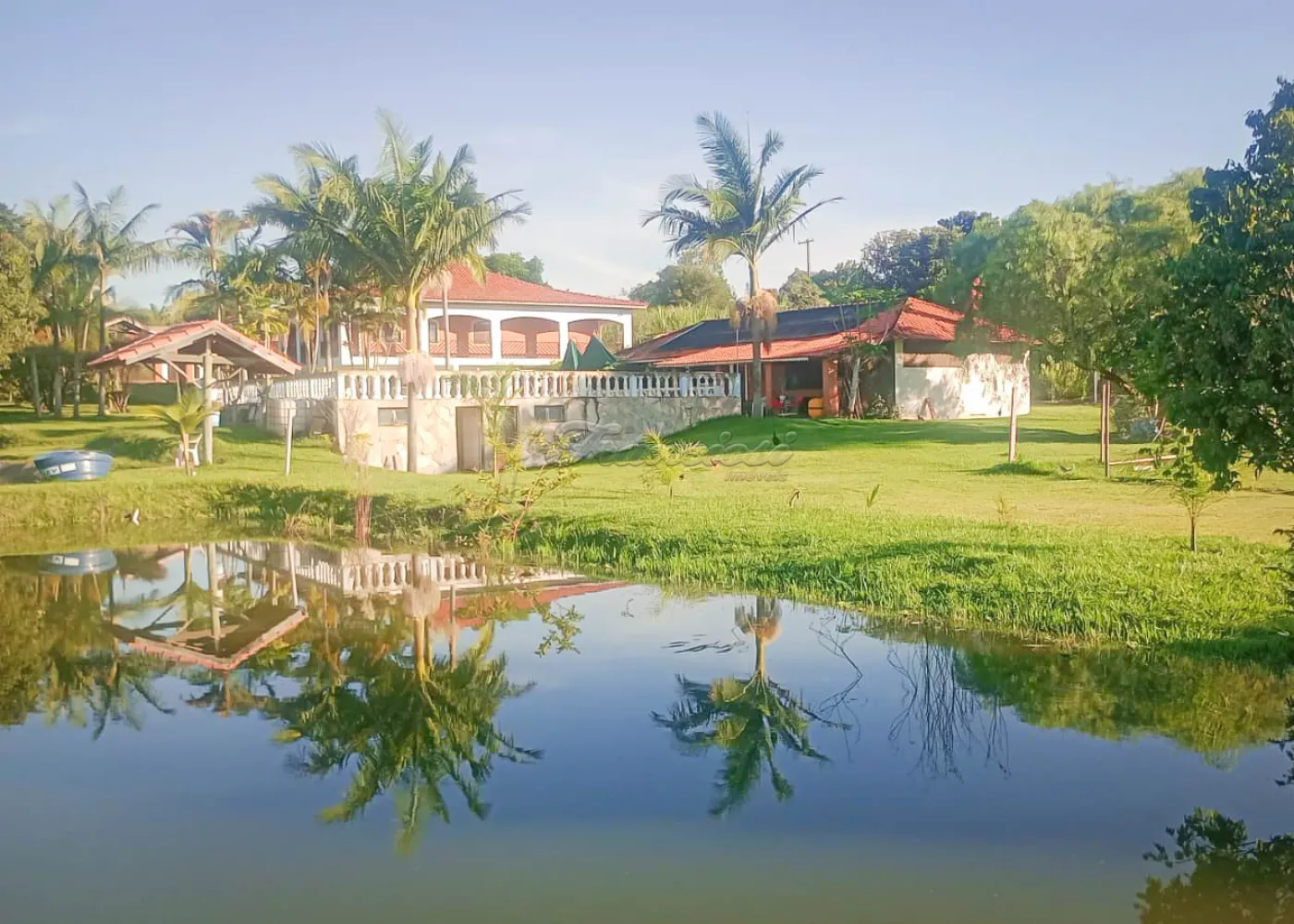 Área total de 5.000 m² e área construída de 800 m². Casa sede com 4 Dormitórios sendo 2 suítes, sala de estar, sala de tv, copa, cozinha, escritório, varanda, piscina, cozinha mineira, 4 banheiros e garagem para 4 carros. Acabamento: teto laje e piso frio. Pomar e água da sabesp.