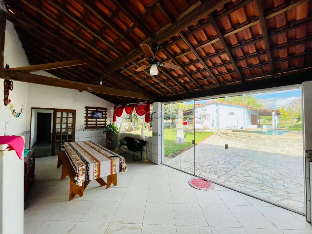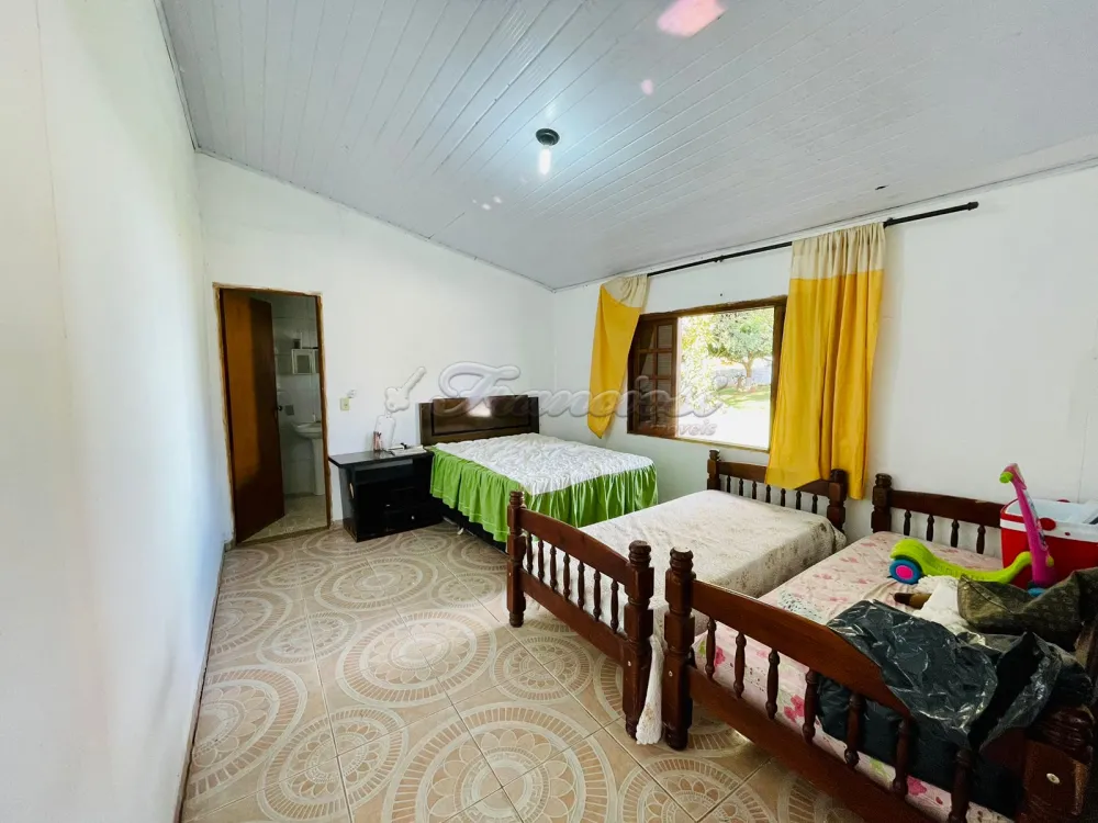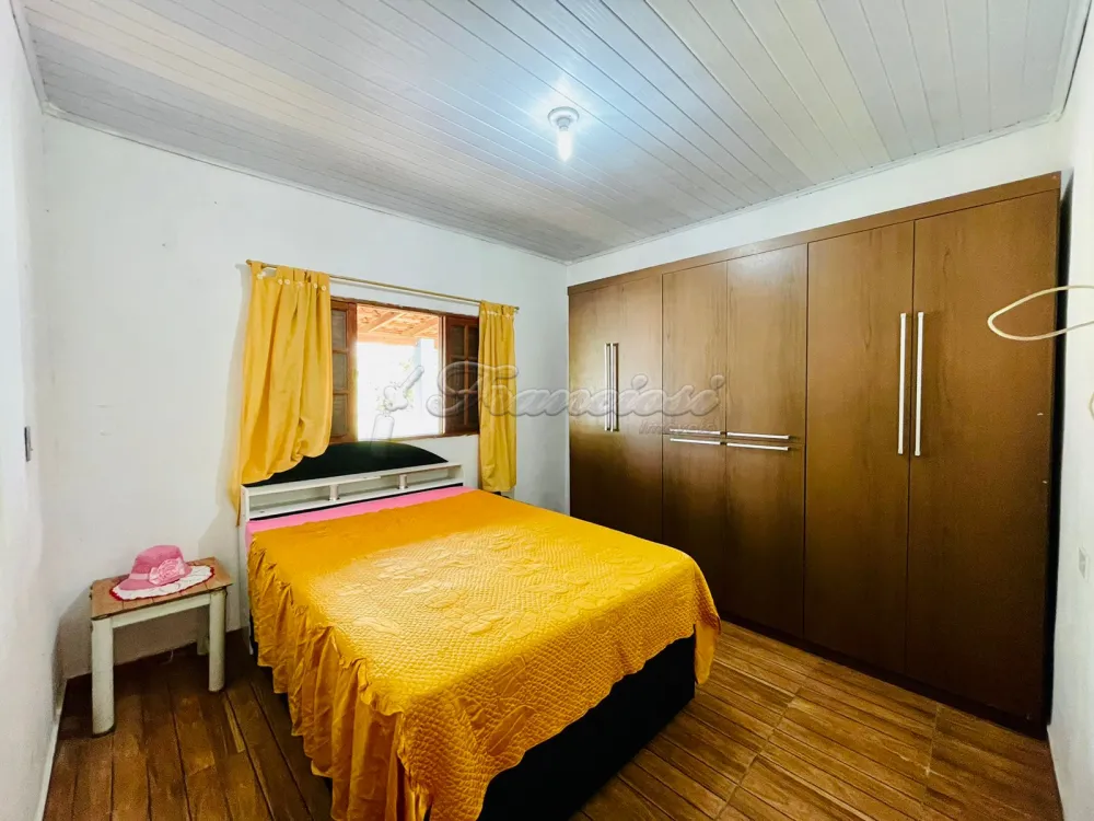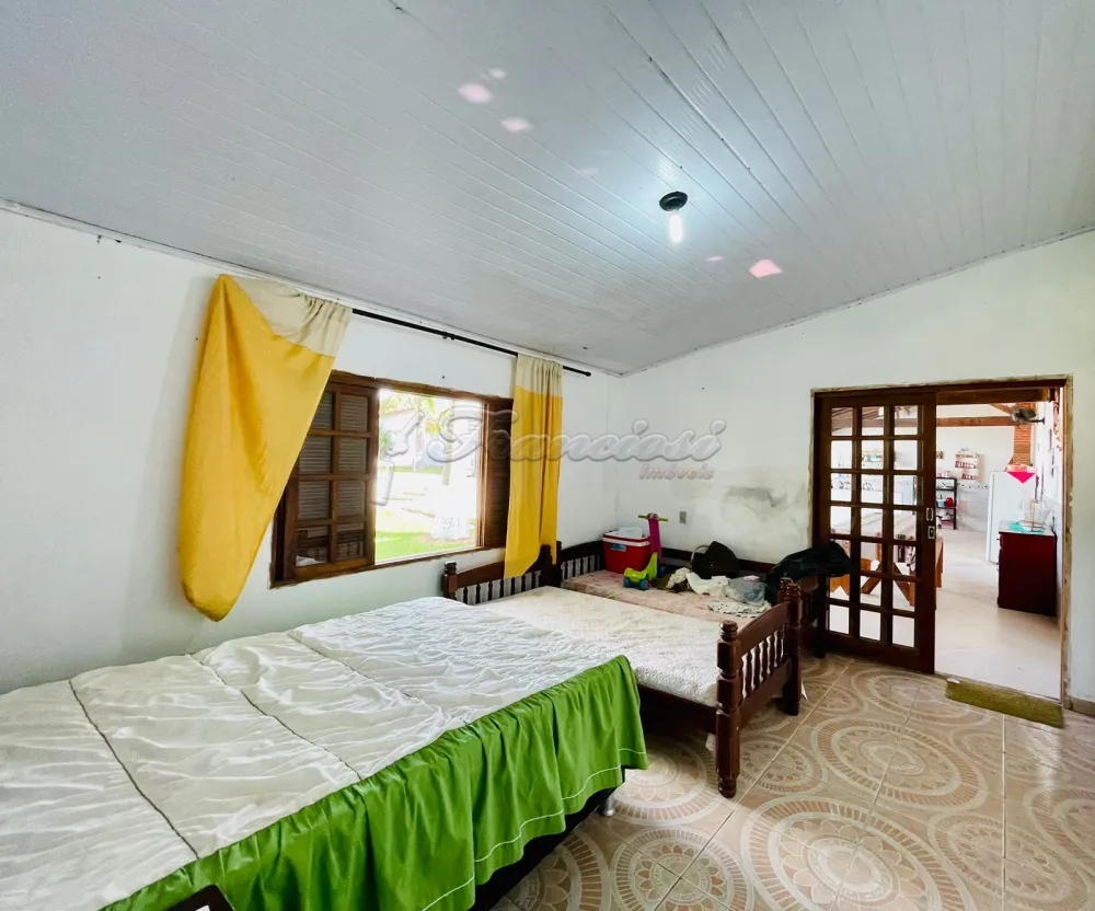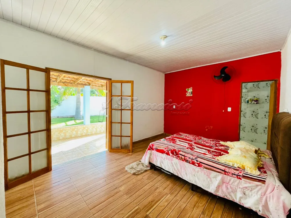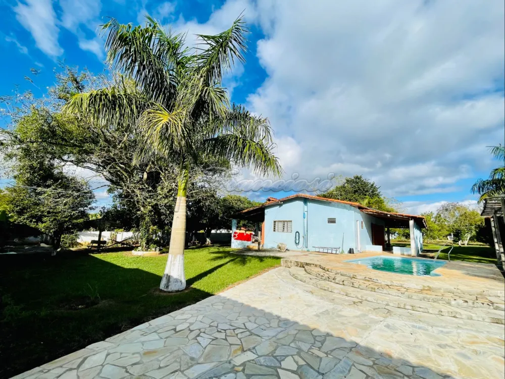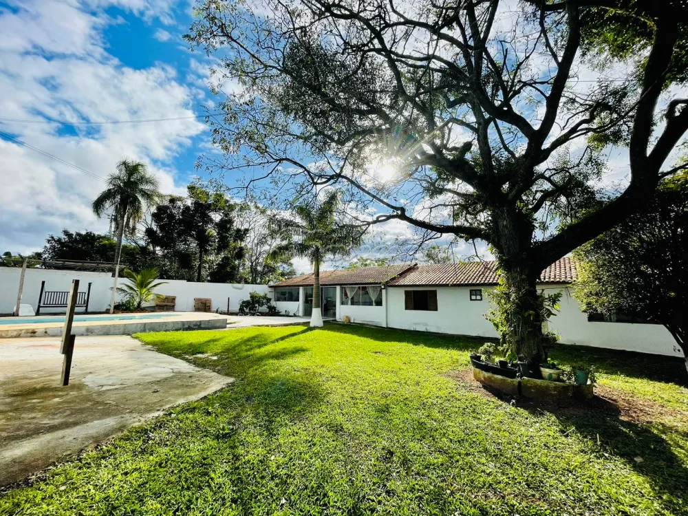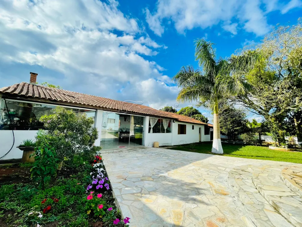 Casa com 3 dormitórios sendo 1 suíte, sala, cozinha, 1 banheiro social, área de serviço, varanda com churrasqueira, piscina, 1 banheiro externo. Nos fundos: 1 dormitório, 1 banheiro e despensa. Entrada para vários carros.
