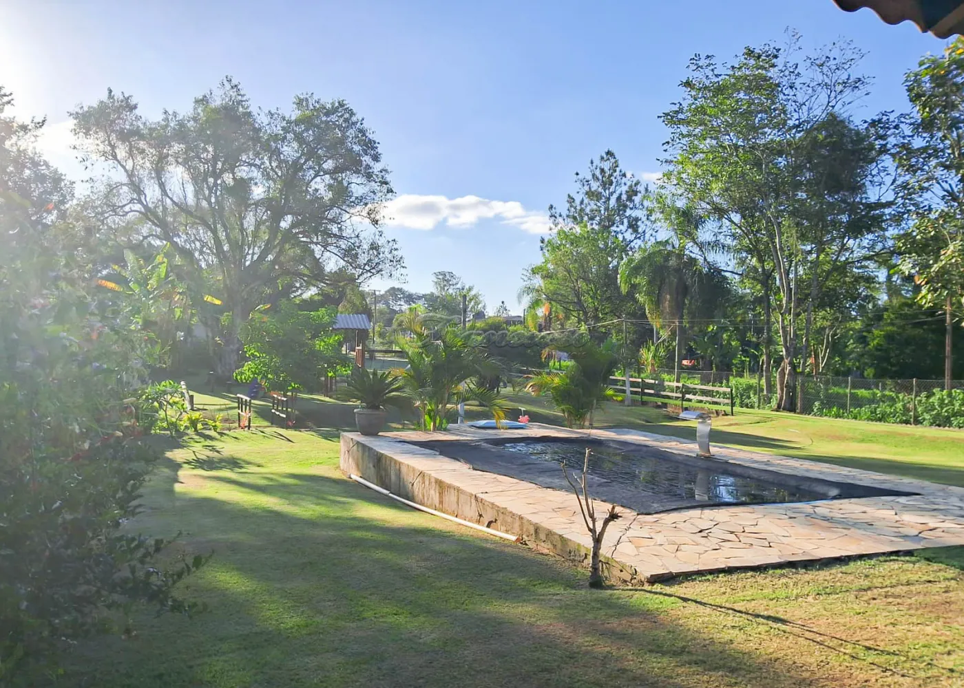 Rancho localizado no bairro Curuçá. Propriedade composta por dois imóveis. A casa principal dispõe de 02 dormitórios, sala de estar, cozinha e banheiro social. Área externa toda avarandada, com churrasqueira, piscina, banheiro externo e despensa.